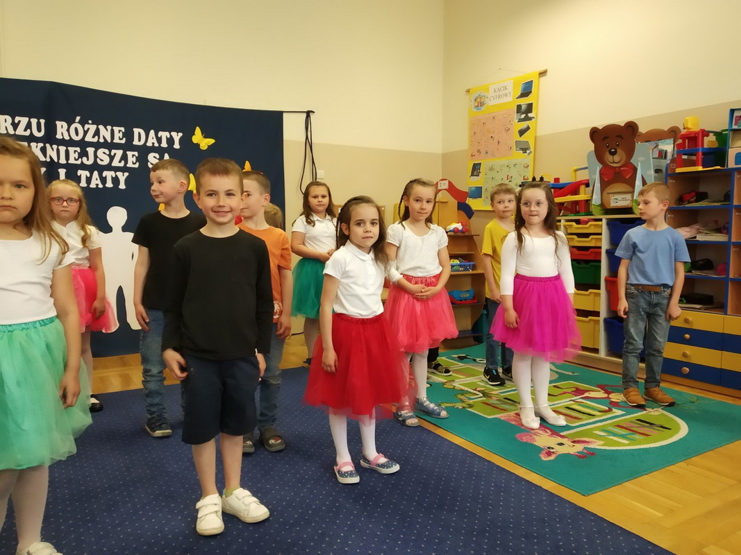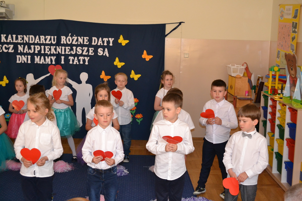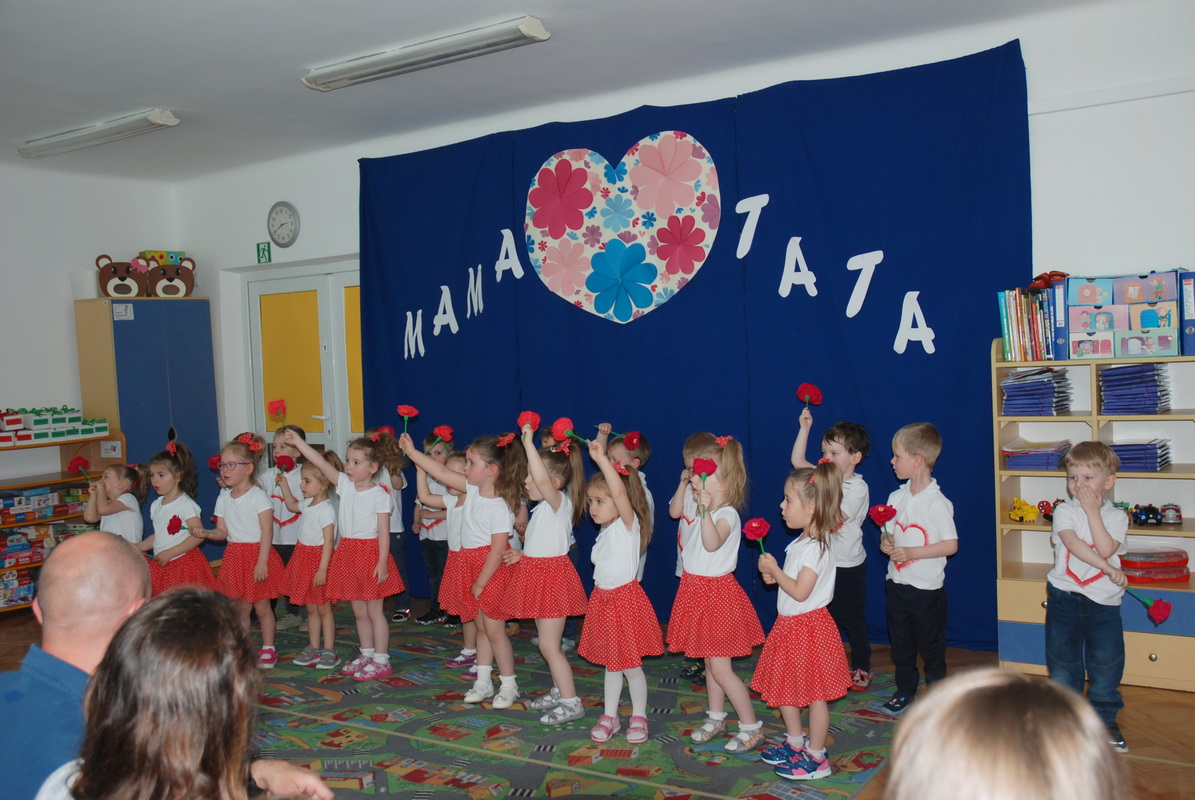 Z tej okazji, na koniec maja, przedszkolaki z naszego przedszkola wystąpiły dla swoich najbliższych. Podczas uroczystych przedstawień dzieci zaprezentowały wspaniałe, wypełnione okolicznościowymi wierszami, piosenkami i tańcami programy artystyczne. Wręczyły najbliższym własnoręcznie wykonane laurki i upominki.