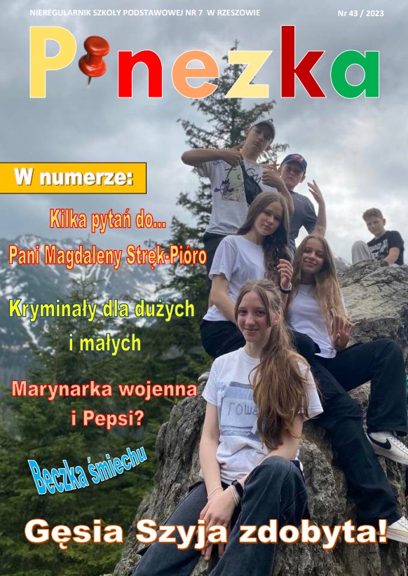 6 czerwca ukazał się kolejny numer gazetki szkolnej “Pinezka”, tworzony przez uczniów klas 6-8 szkoły podstawowej. Znaleźć w nim można m.in.: obszerny wywiad z pedagogiem, p. Magdaleną Stręk-Pióro, relacje z wycieczek i innych wydarzeń szkolnych, recenzje książek i filmów, artykuły poświęcone literaturze detektywistycznej, Eurowizji oraz historii, a także sporą dawkę humoru.
