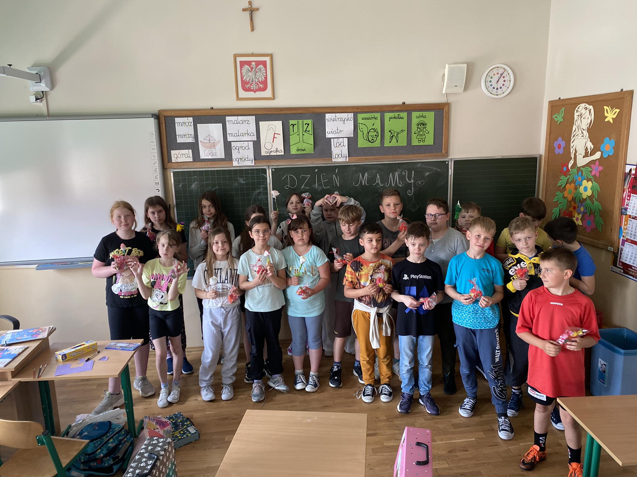 Dzień Matki, obchodzony 26 maja, to szczególny dzień dla wszystkich Mam. To święto przypomina, że każdej Mamie należy się wdzięczność i szacunek za jej poświęcenie i bezwarunkową miłość. Tego dnia w naszej szkole także obchodzono Dzień Matki. Uczniowie klas 1-3 przygotowali dla swoich kochanych Mam własnoręcznie wykonane prezenty wraz z życzeniami, oraz poprzez wiersz, piosenkę wyraziły swoją wdzięczność, szacunek i podziękowania za trud włożony w ich wychowanie.