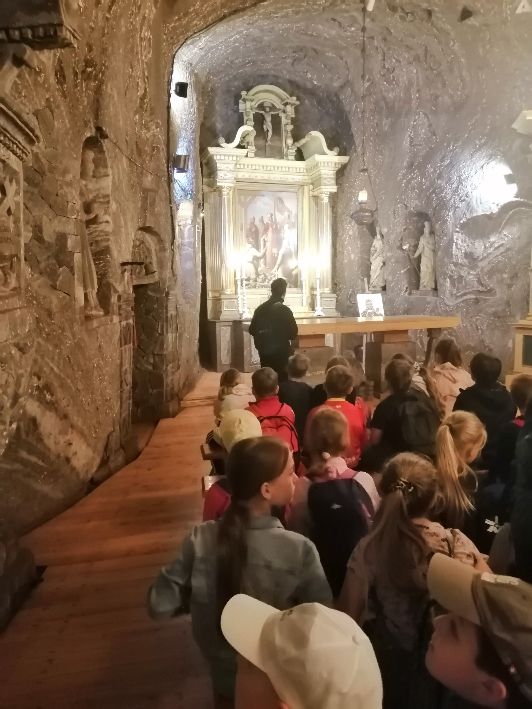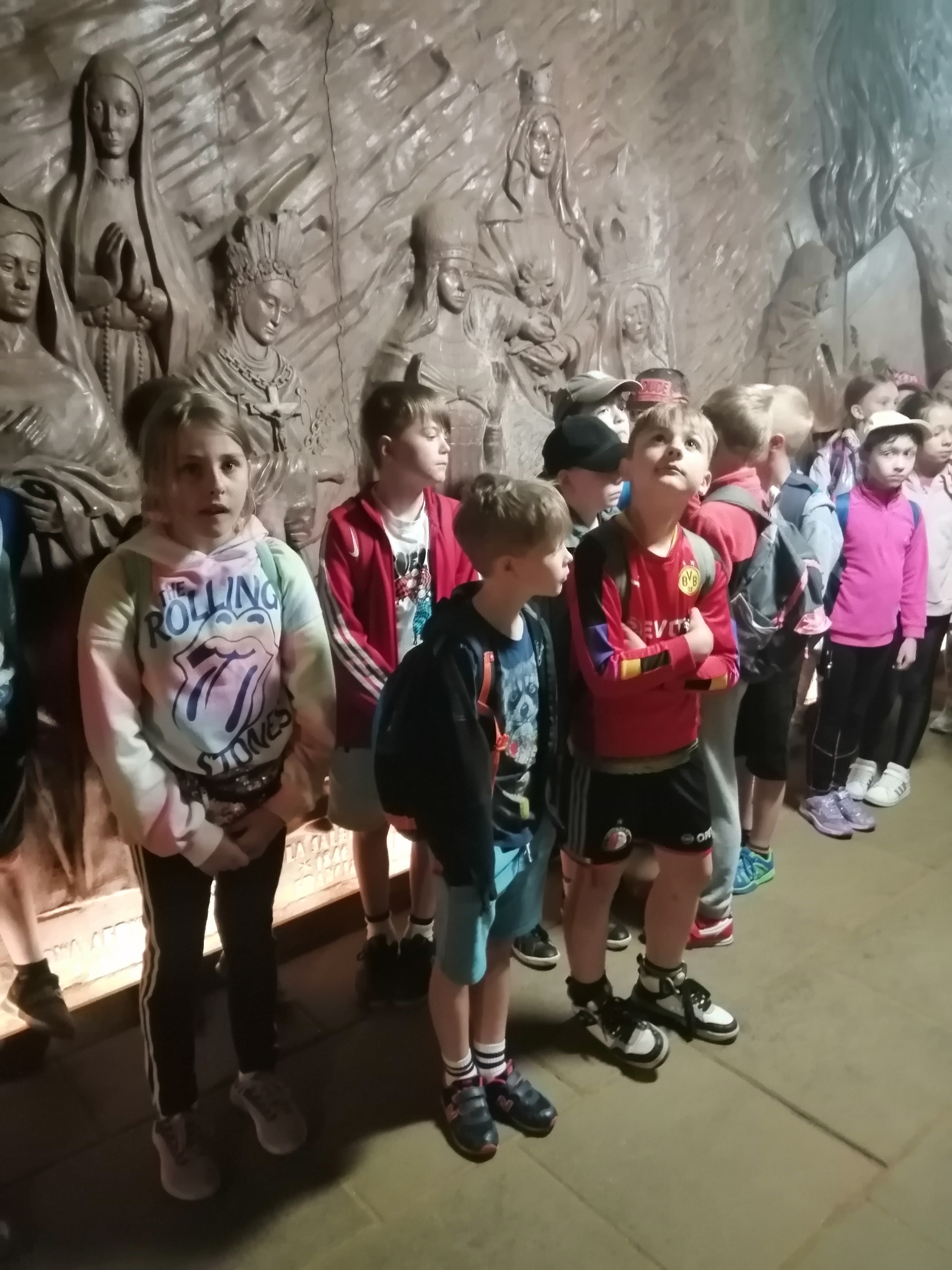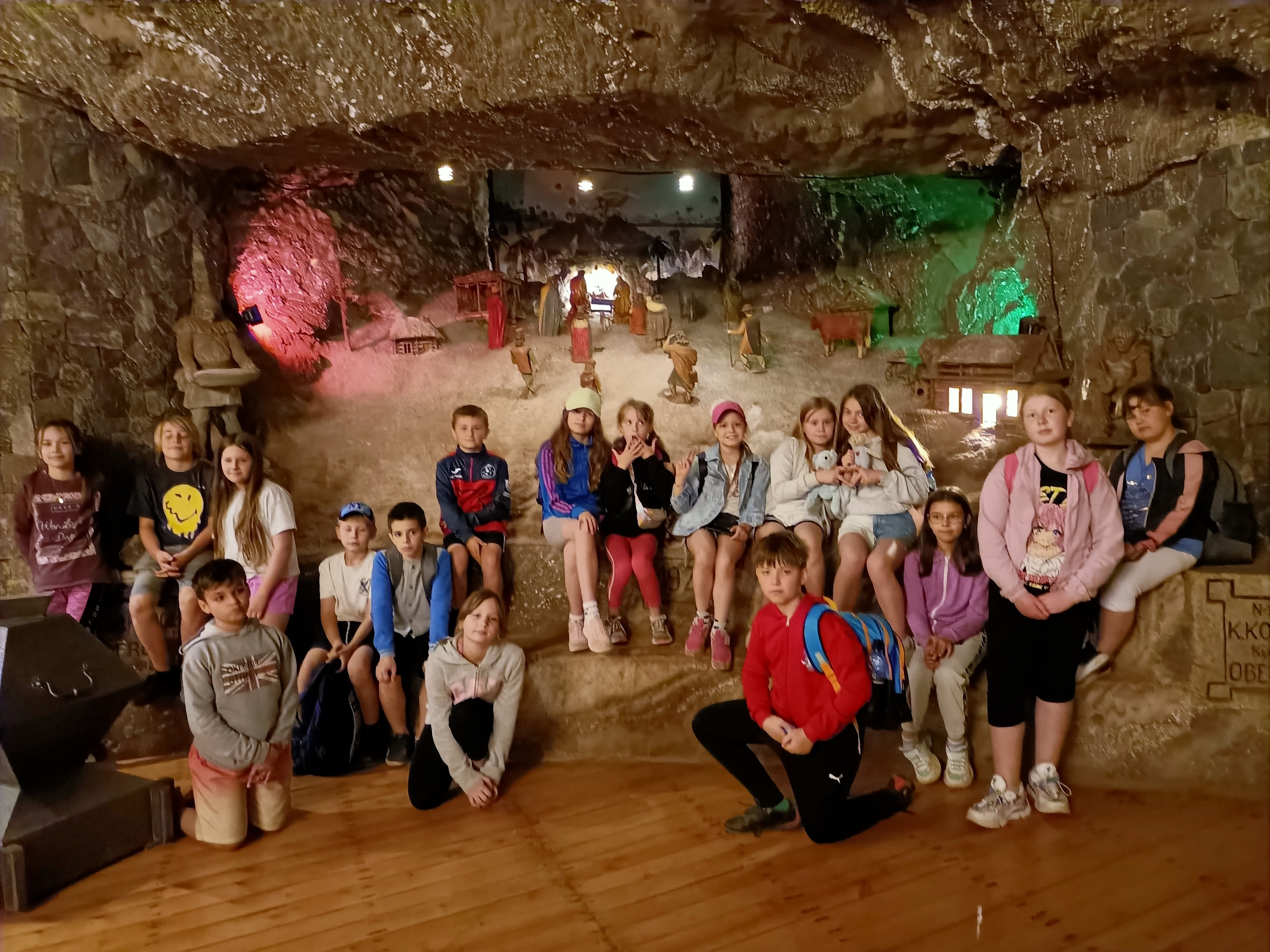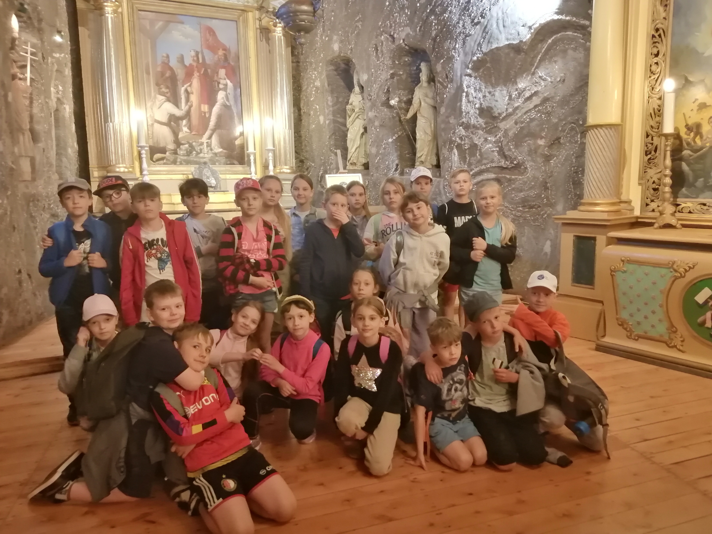 2 czerwca uczniowie klas trzecich, wraz z opiekunami, udali się na wyczekiwaną wycieczkę do Kopalni Soli w Bochni oraz do zamku w Nowym Wiśniczu. Zwiedzanie rozpoczęliśmy od kopalni soli. W unikatowym labiryncie solnych korytarzy czekało na nas wiele niespodzianek. Już sam zjazd do kopalni szybem Campi był wielkim przeżyciem. Pod okiem naszych przewodników zwiedzaliśmy kopalnię oraz odbyliśmy przejazd podziemną kolejką wzdłuż podłużni August. Za pomocą holograficznych i interaktywnych inscenizacji oraz słuchowisk przekazana została nam wiedza o historii kopalni, średniowiecznych technikach wydobywczych, pracy górnika, zwyczajach górniczych oraz codziennym życiu kopalni. W pamięci pozostały prezentacje pokazujące dawny system wentylacji, pracę wypalaczy metanu, pożary oraz zalanie wodą podziemnych chodników. Zobaczyliśmy także Stajnię Mysiur, w której do lat 60 XX w. przebywały wykorzystane do pracy w kopalni konie. Zwiedziliśmy kaplicę św. Kingi z umieszczoną tam piękną szopką bożonarodzeniową. Poznawanie „podziemnego solnego miasta” było niezwykłą przygodą i interesującą lekcją historii.