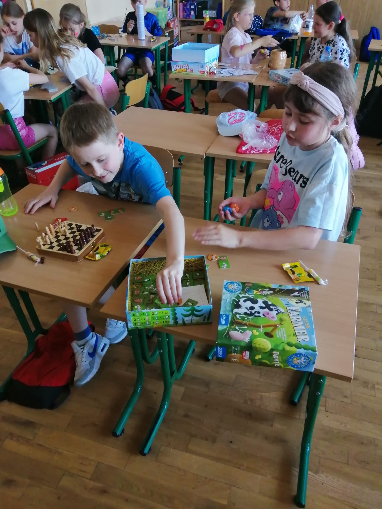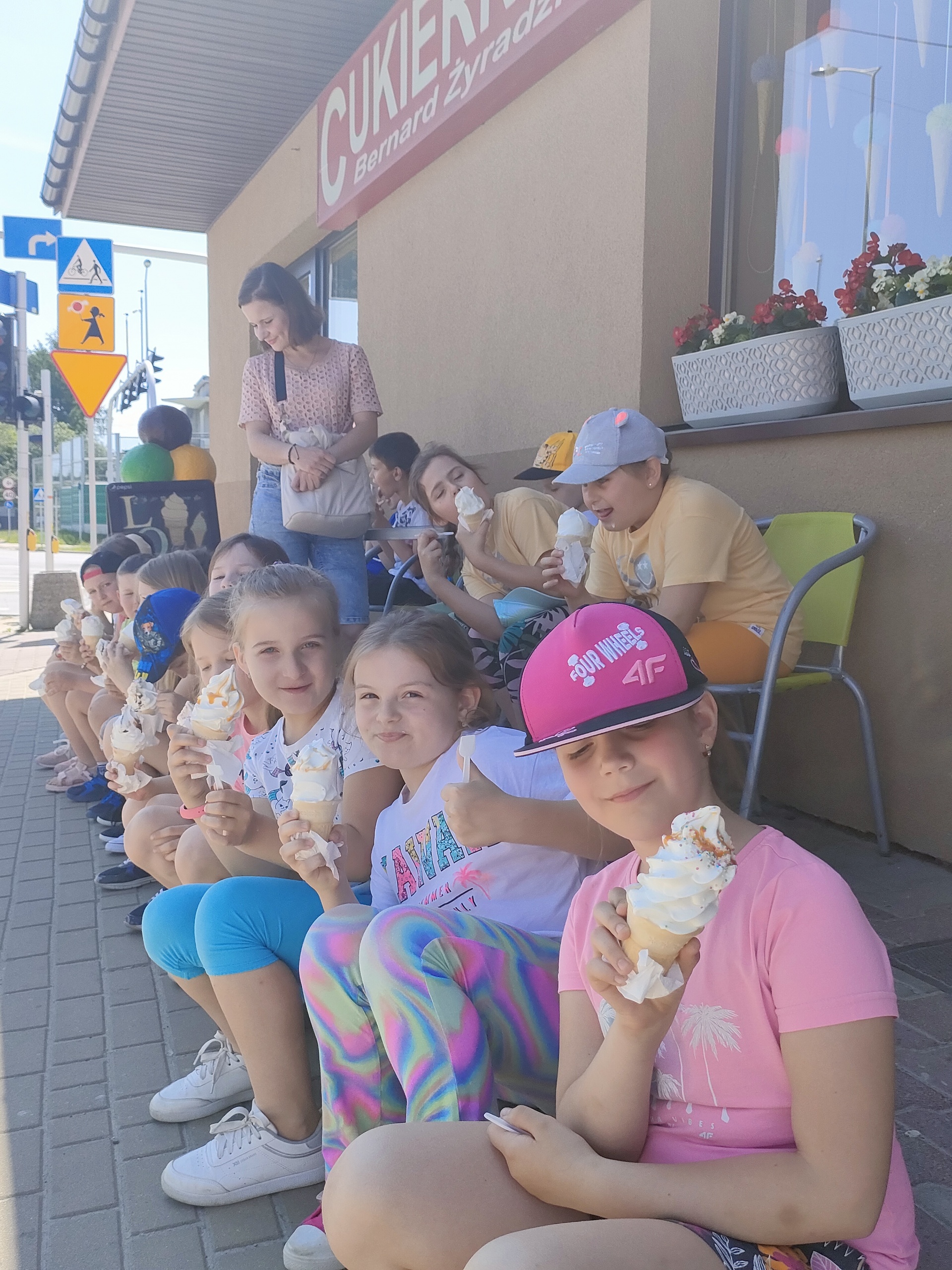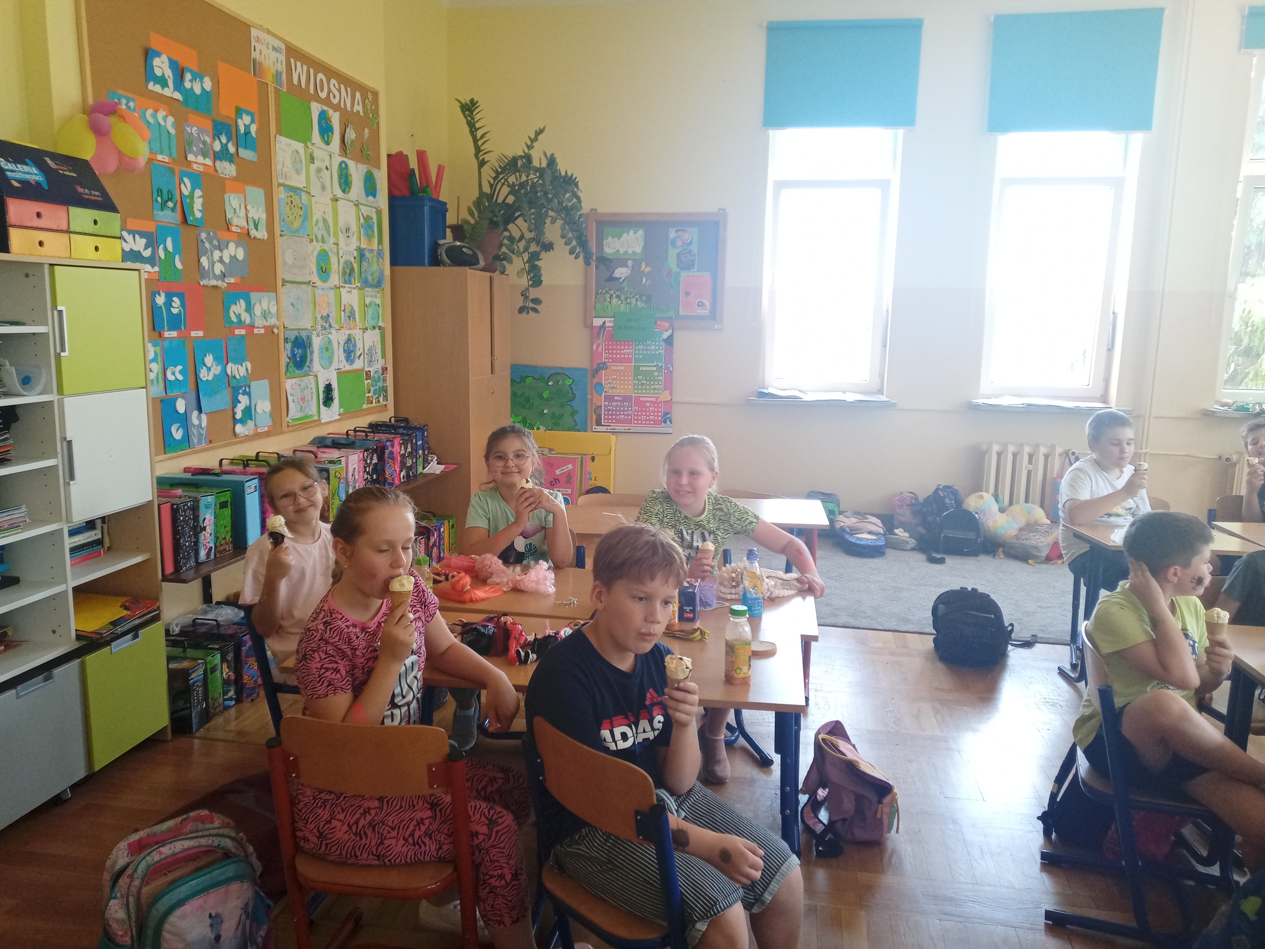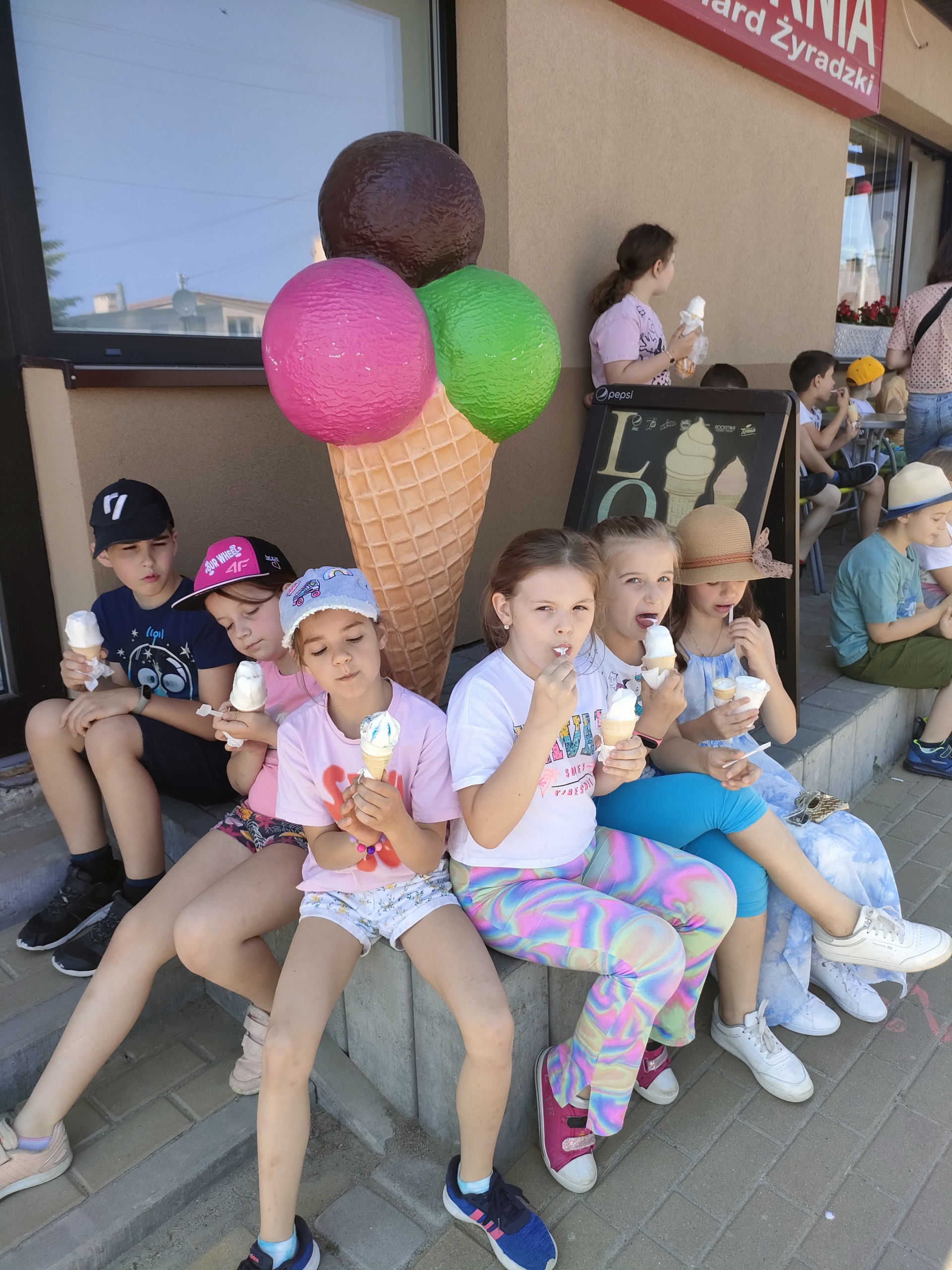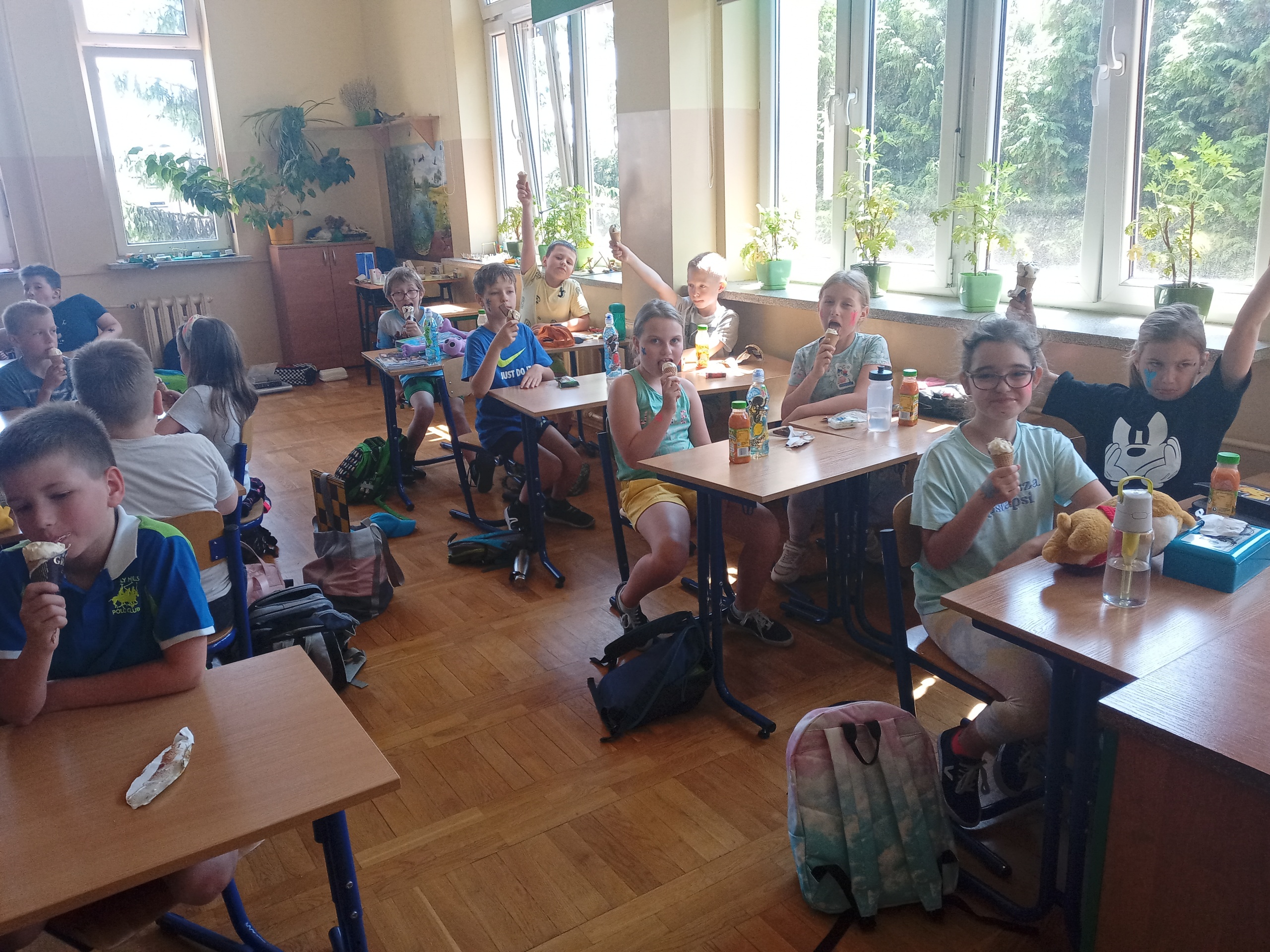 Przede wszystkim dopisała pogoda, dzięki której mogły odbyć się zaplanowane atrakcje, a było ich wiele. Na boisku szkolnym czekały na najmłodszych dmuchane zjeżdżalnie i trampoliny, które uwielbiają wszystkie dzieci. Można było również pobawić się przy muzyce oraz wziąć udział w konkursach sportowych i plastycznych. Wielką atrakcją było stoisko, przy którym malowano twarze… i nie tylko. Dzieci przyniosły swoje ulubione zabawki i gry planszowe, aby wspólnie spędzić czas. Miłym przerywnikiem było wyjście do pobliskiej cukierni na pyszne zimne lody. To był naprawdę udany, radosny Dzień Dziecka!