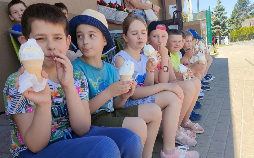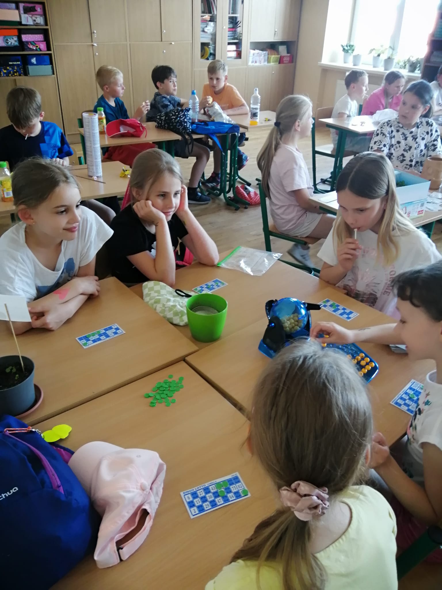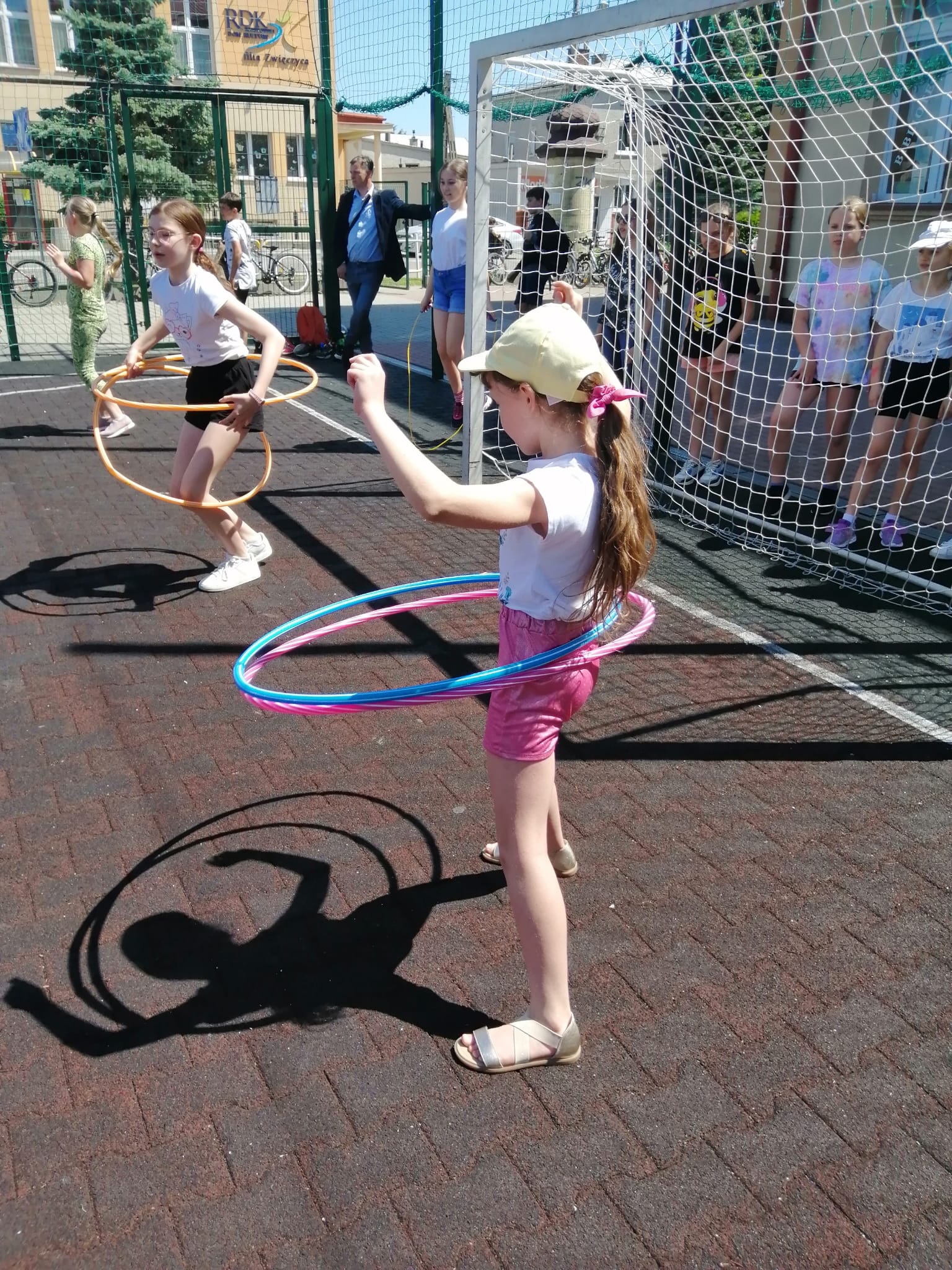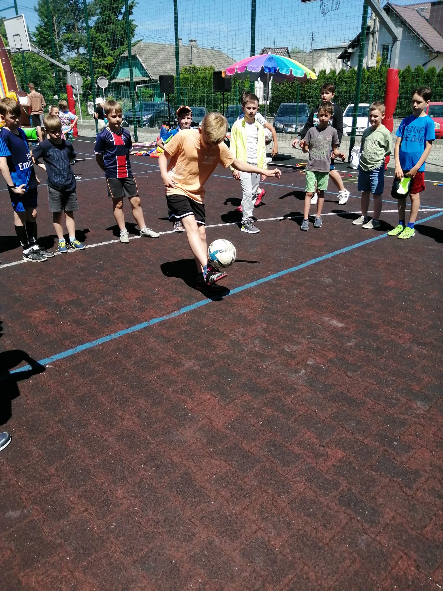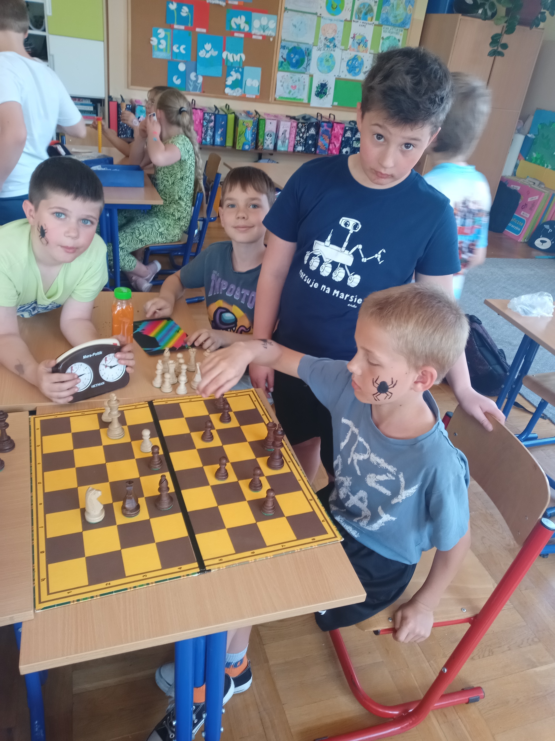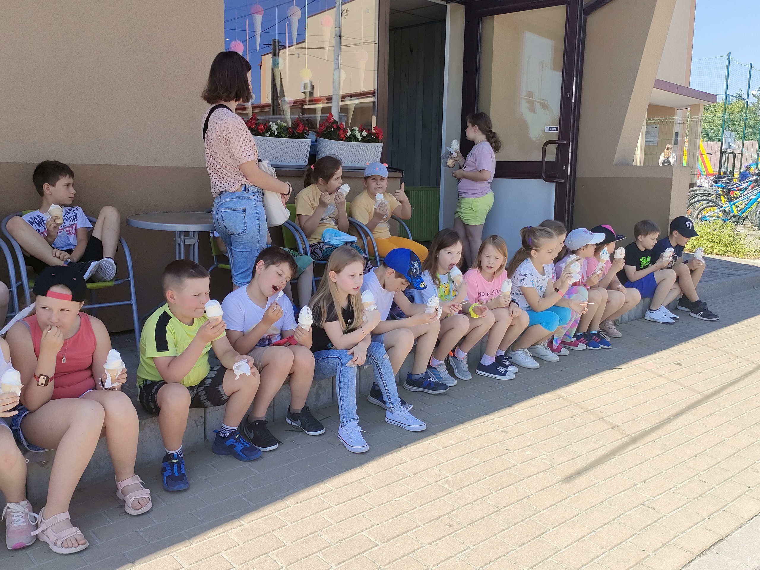 Przede wszystkim dopisała pogoda, dzięki której mogły odbyć się zaplanowane atrakcje, a było ich wiele. Na boisku szkolnym czekały na najmłodszych dmuchane zjeżdżalnie i trampoliny, które uwielbiają wszystkie dzieci. Można było również pobawić się przy muzyce oraz wziąć udział w konkursach sportowych i plastycznych. Wielką atrakcją było stoisko, przy którym malowano twarze… i nie tylko. Dzieci przyniosły swoje ulubione zabawki i gry planszowe, aby wspólnie spędzić czas. Miłym przerywnikiem było wyjście do pobliskiej cukierni na pyszne zimne lody. To był naprawdę udany, radosny Dzień Dziecka!