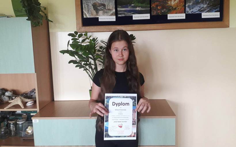 Laureatką konkursu w kategorii Prezentacja multimedialna została Wiktoria Kalandyk (klasa 7a), która zajęła miejsce II. Wiktoria przygotowała prezentację na temat krajobrazów Polski. W atrakcyjnej formie graficznej przedstawiła wybrane przez siebie (niekoniecznie te najbardziej popularne) zakątki naszego kraju. Opiekę nad uczennicą sprawował p. Radosław Sztaba. Serdecznie gratulujemy!