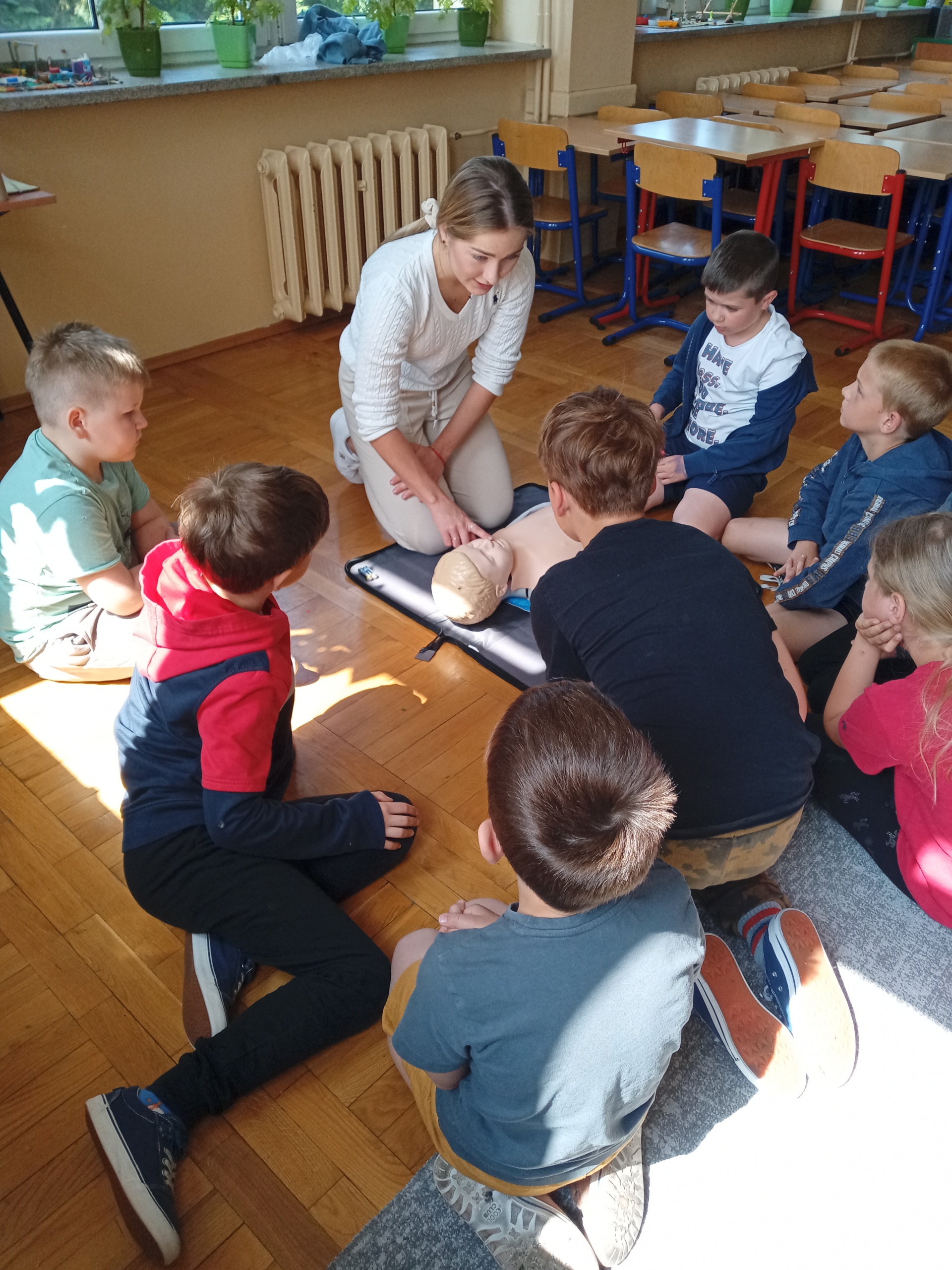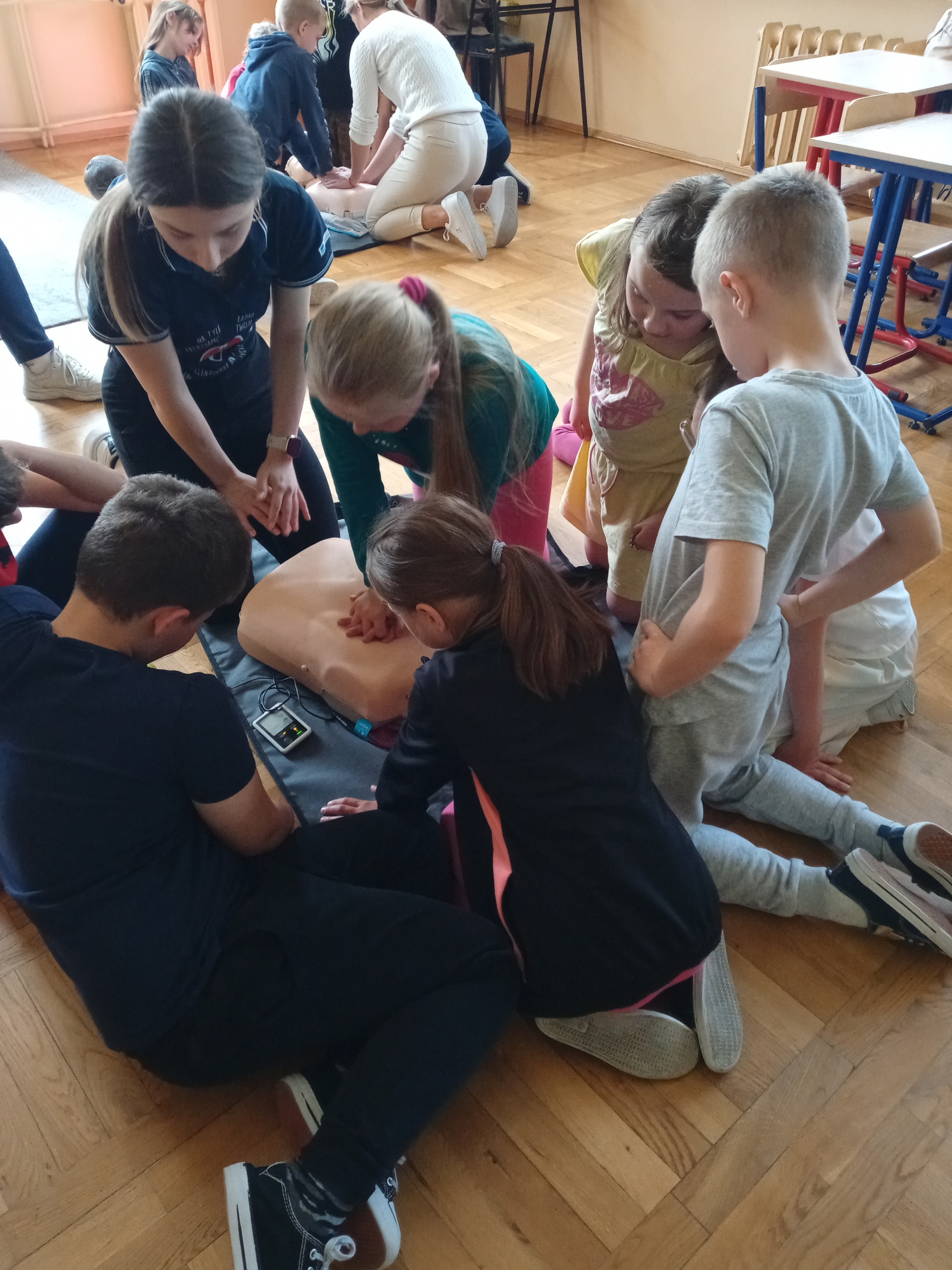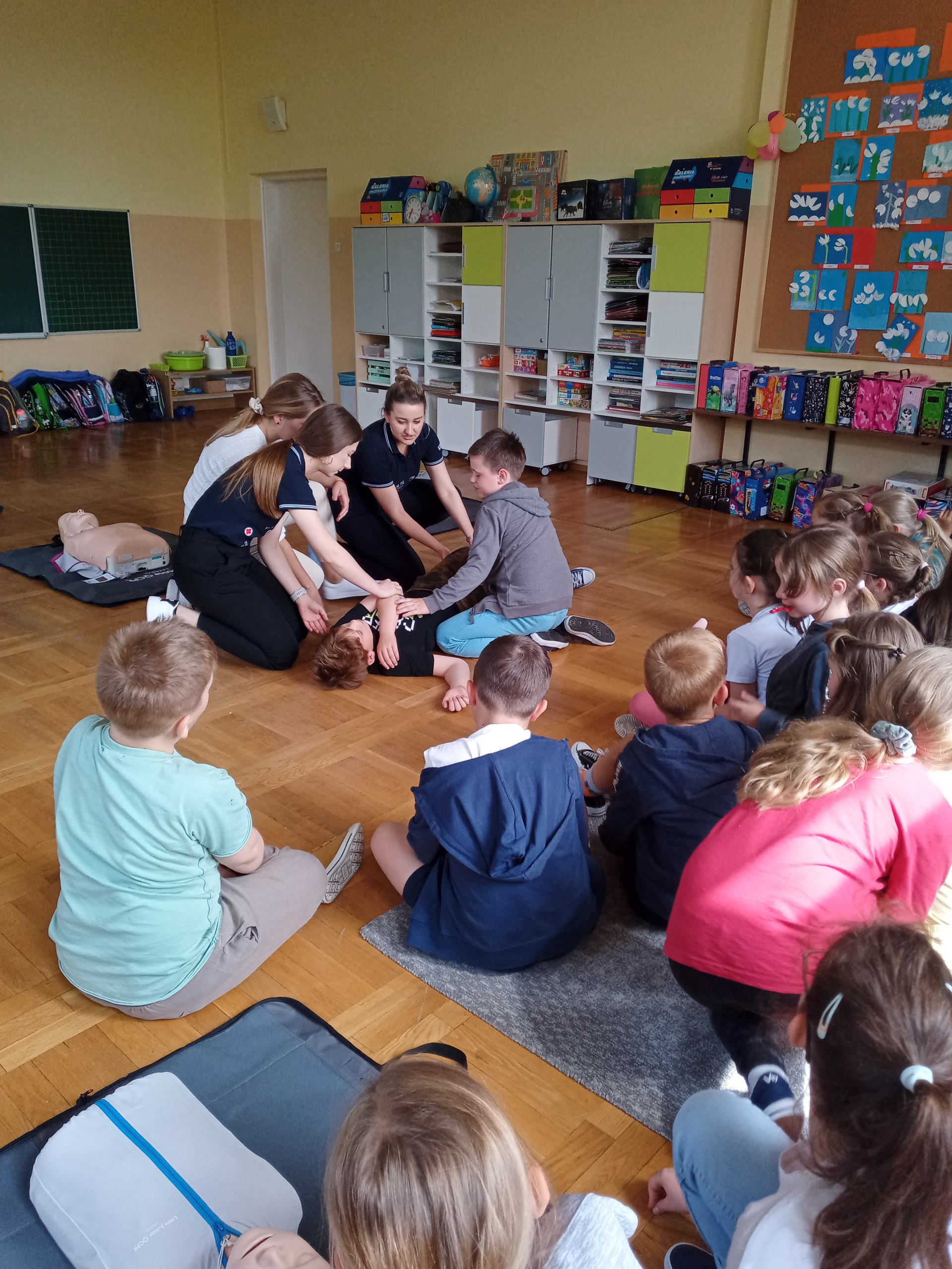 W ramach realizacji projektu “Ratujemy i uczymy ratować”, końcem roku szkolnego odbyły się warsztaty udzielania pierwszej pomocy dla uczniów klas 2a i 2b, przygotowane przez studentki kierunku lekarskiego z Uniwersytetu Rzeszowskiego. Podczas spotkania dzieci utrwaliły sobie numery alarmowe służb ratowniczych oraz zasady postępowania w sytuacji zagrożenia życia i zdrowia. Po wstępie teoretycznym uczniowie mieli możliwość ćwiczenia nabytych umiejętności ratowniczych.