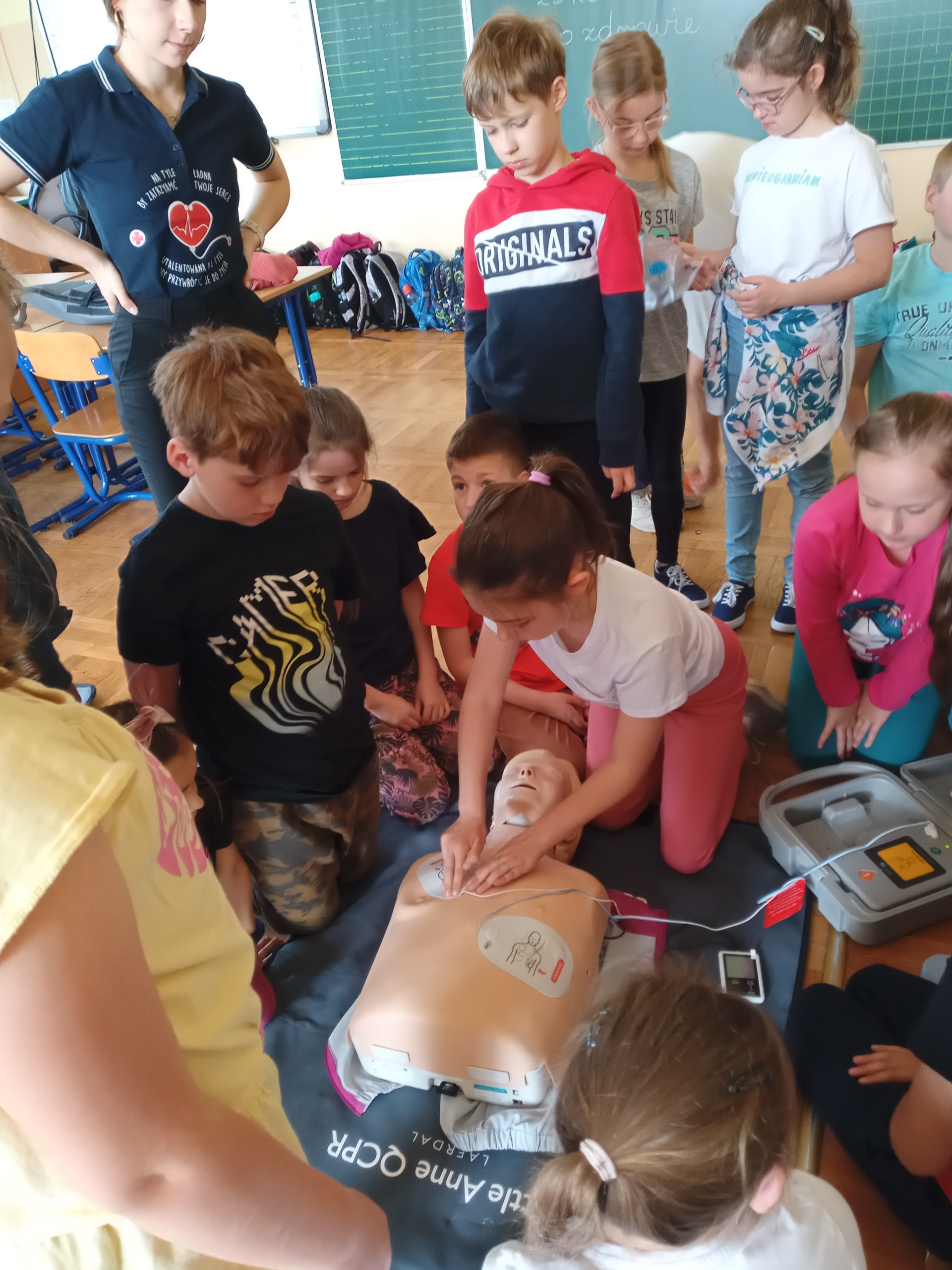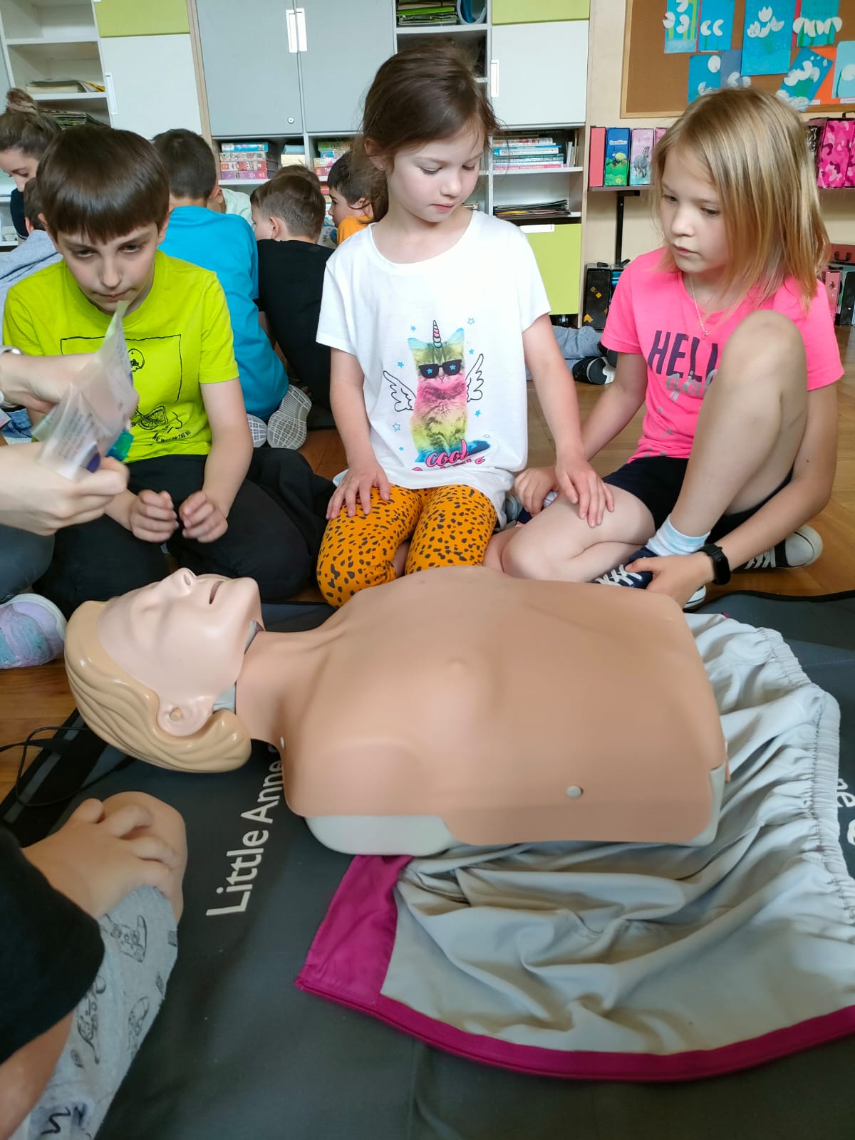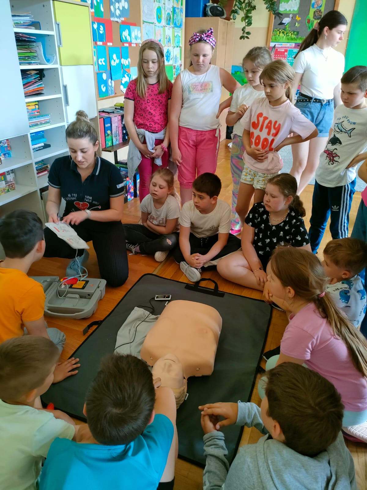 W ramach realizacji projektu “Ratujemy i uczymy ratować”, końcem roku szkolnego odbyły się warsztaty udzielania pierwszej pomocy dla uczniów klas 2a i 2b, przygotowane przez studentki kierunku lekarskiego z Uniwersytetu Rzeszowskiego. Podczas spotkania dzieci utrwaliły sobie numery alarmowe służb ratowniczych oraz zasady postępowania w sytuacji zagrożenia życia i zdrowia. Po wstępie teoretycznym uczniowie mieli możliwość ćwiczenia nabytych umiejętności ratowniczych.