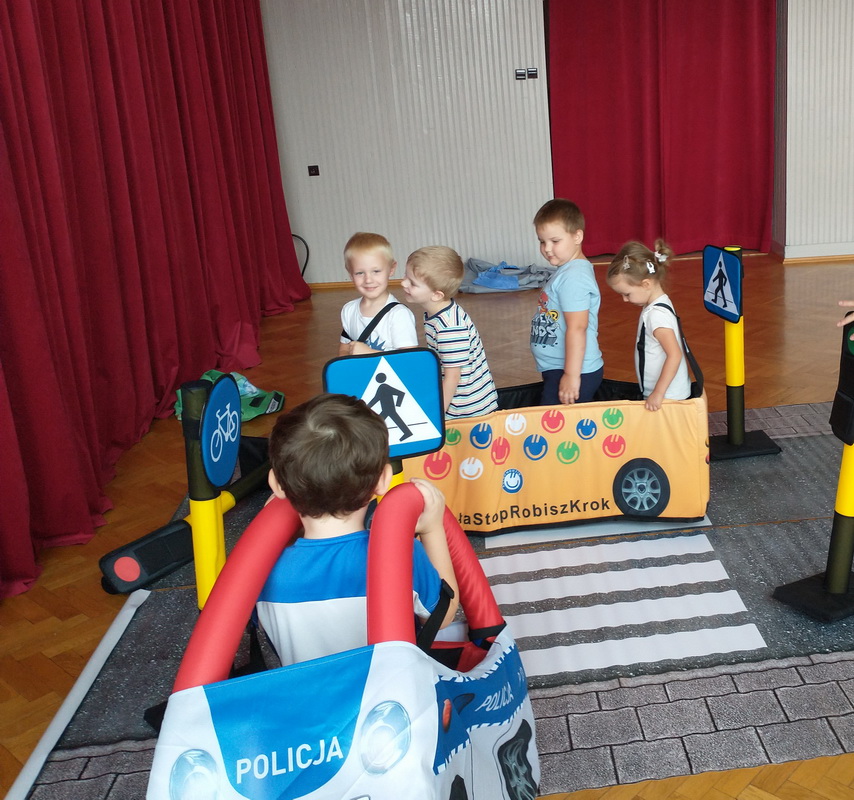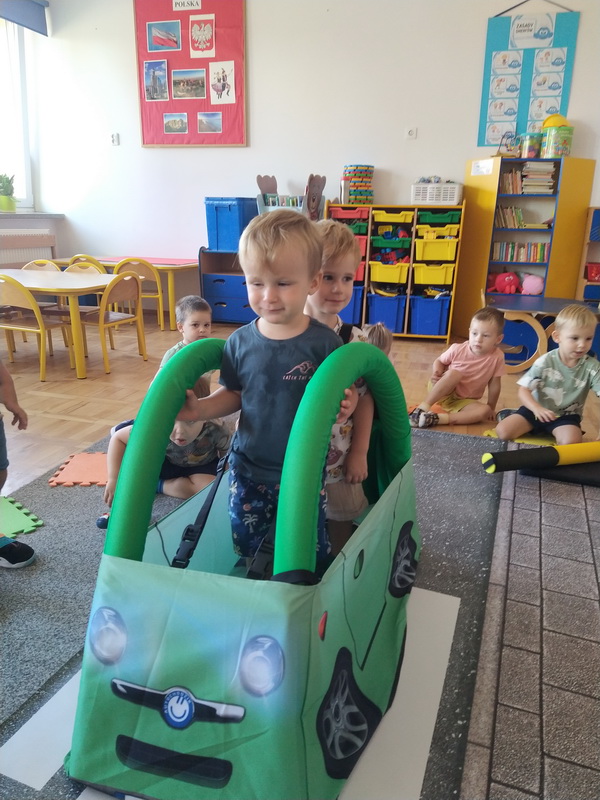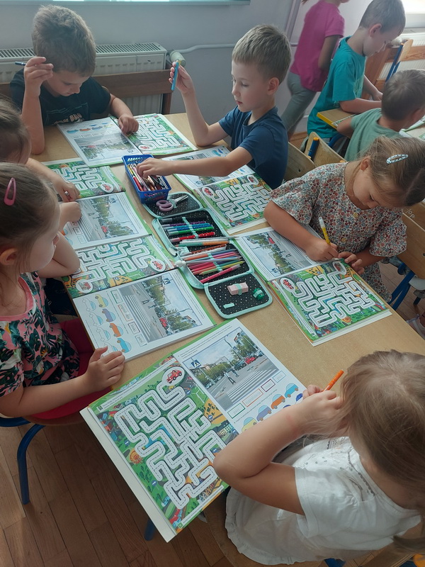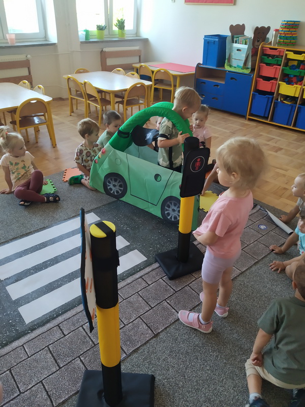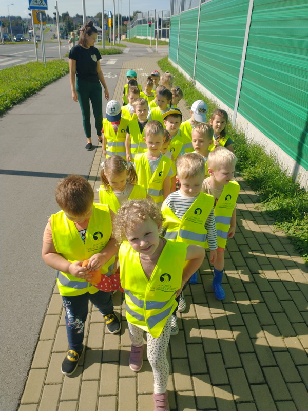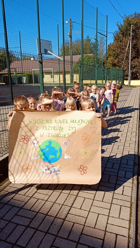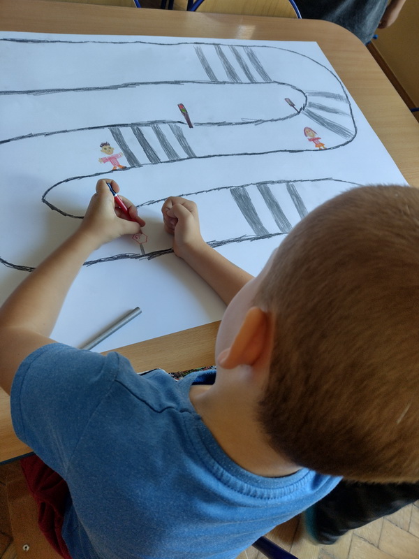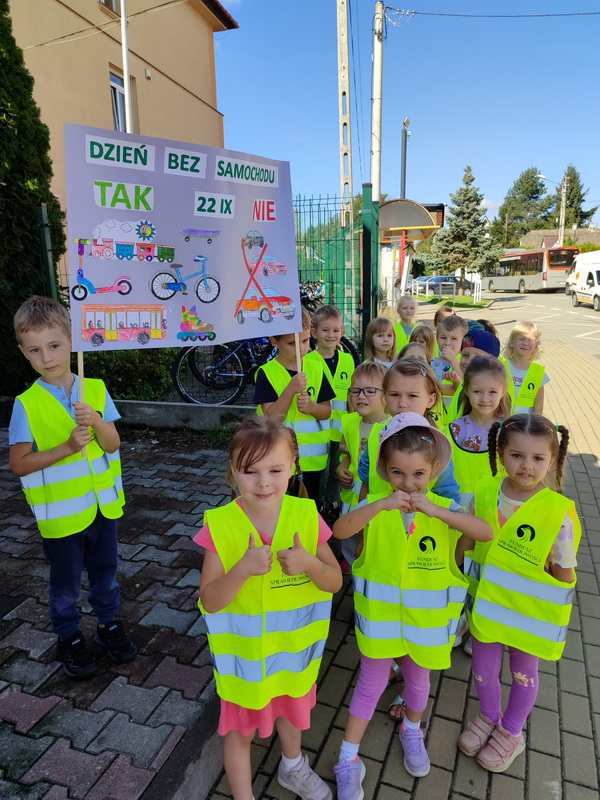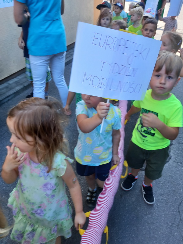 Przedszkolaki, wspólnie z nauczycielami, poszukiwały rozwiązań dotyczących bezpiecznego i ekologicznego przemieszczania się. Nauczyciele przeprowadzili z dziećmi pogadankę na temat problemu, jakim jest ogromna liczba pojazdów spalinowych na świecie oraz ich negatywnego wpływu na zdrowie człowieka i całe środowisko. Dzieci poznały też zasady bezpiecznych zachowań w trakcie spacerów oraz poruszania się wokół jezdni i utrwalały je podczas zabaw ruchowych w Mini Miasteczku Ruchu Drogowego oraz wyjść na skrzyżowanie. Przedszkolaki codziennie na spacerach liczyły kroki, uczestnicząc w konkursie międzygrupowym „Idziemy po rekord”. Ponadto, pod okiem swoich wychowawców, wykonały prace plastyczne pt. „Sygnalizator” oraz przygotowały plakaty i transparenty zachęcające mieszkańców naszego osiedla do wybierania ekologicznych środków transportu.
