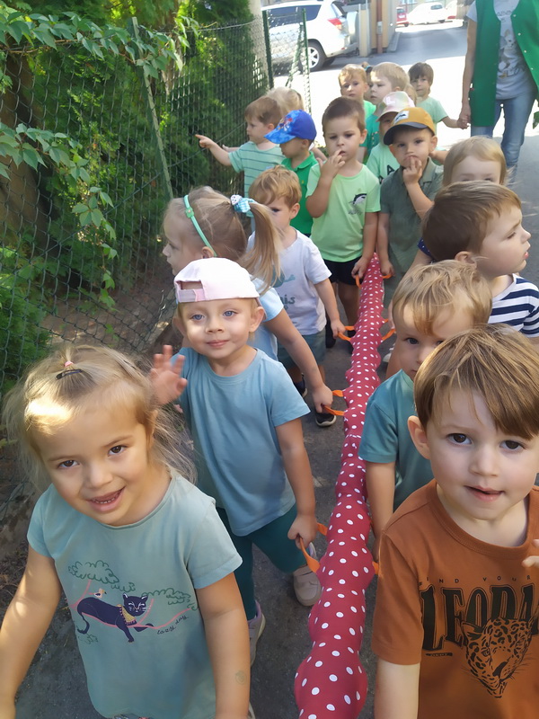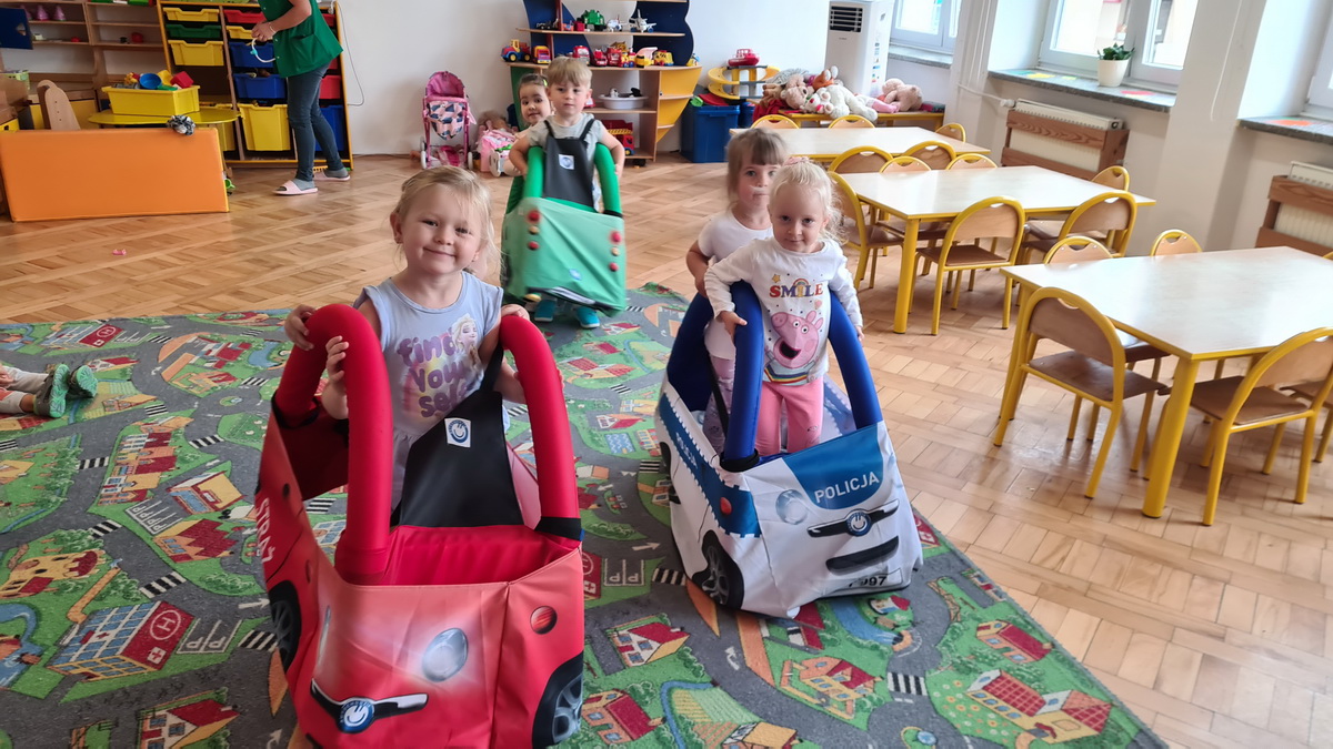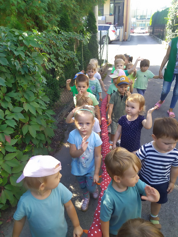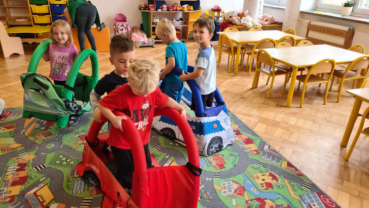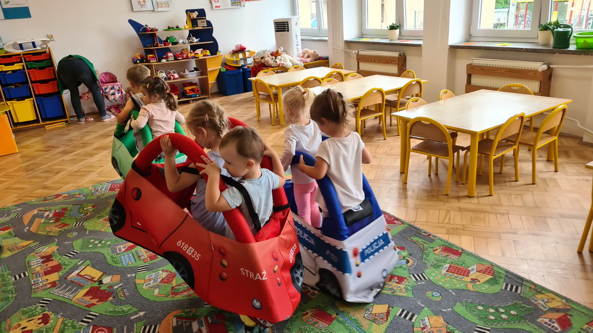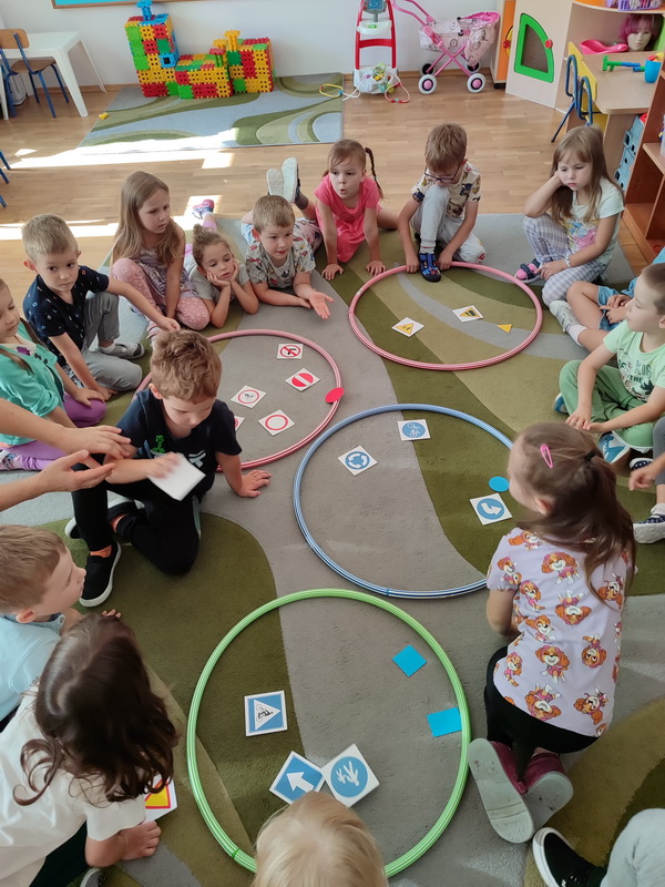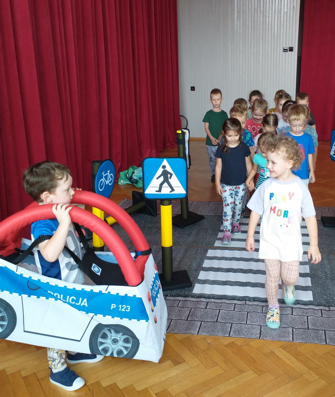 Przedszkolaki, wspólnie z nauczycielami, poszukiwały rozwiązań dotyczących bezpiecznego i ekologicznego przemieszczania się. Nauczyciele przeprowadzili z dziećmi pogadankę na temat problemu, jakim jest ogromna liczba pojazdów spalinowych na świecie oraz ich negatywnego wpływu na zdrowie człowieka i całe środowisko. Dzieci poznały też zasady bezpiecznych zachowań w trakcie spacerów oraz poruszania się wokół jezdni i utrwalały je podczas zabaw ruchowych w Mini Miasteczku Ruchu Drogowego oraz wyjść na skrzyżowanie. Przedszkolaki codziennie na spacerach liczyły kroki, uczestnicząc w konkursie międzygrupowym „Idziemy po rekord”. Ponadto, pod okiem swoich wychowawców, wykonały prace plastyczne pt. „Sygnalizator” oraz przygotowały plakaty i transparenty zachęcające mieszkańców naszego osiedla do wybierania ekologicznych środków transportu.
