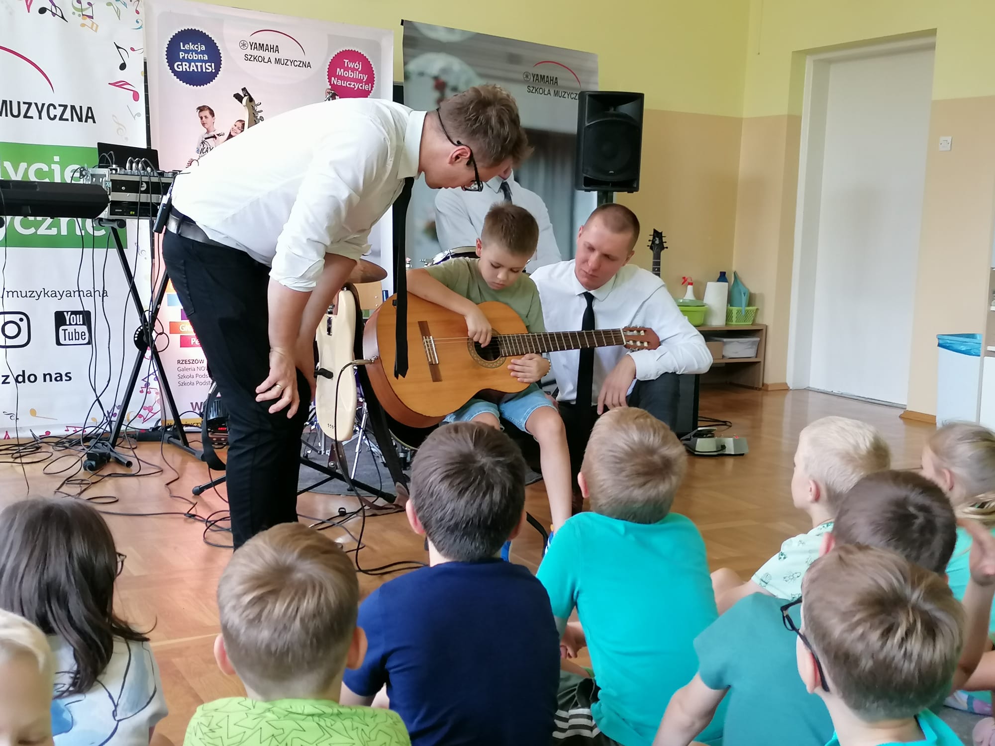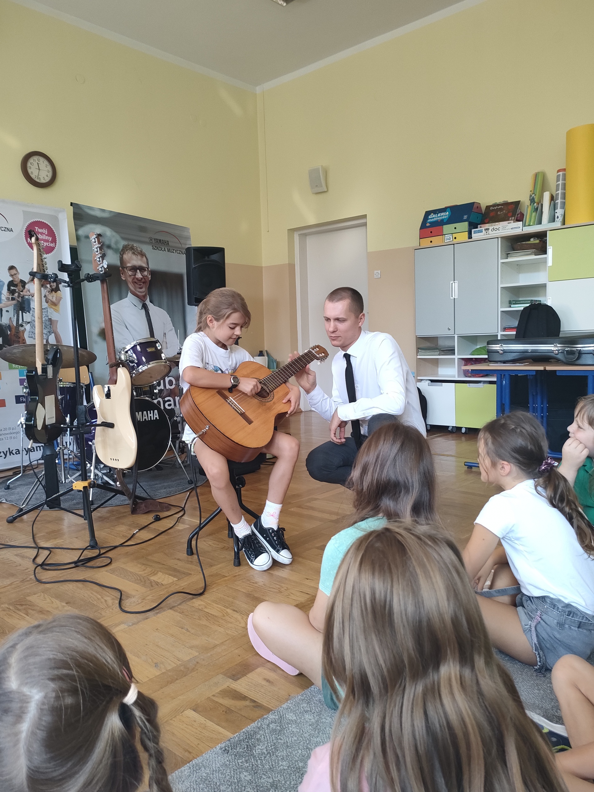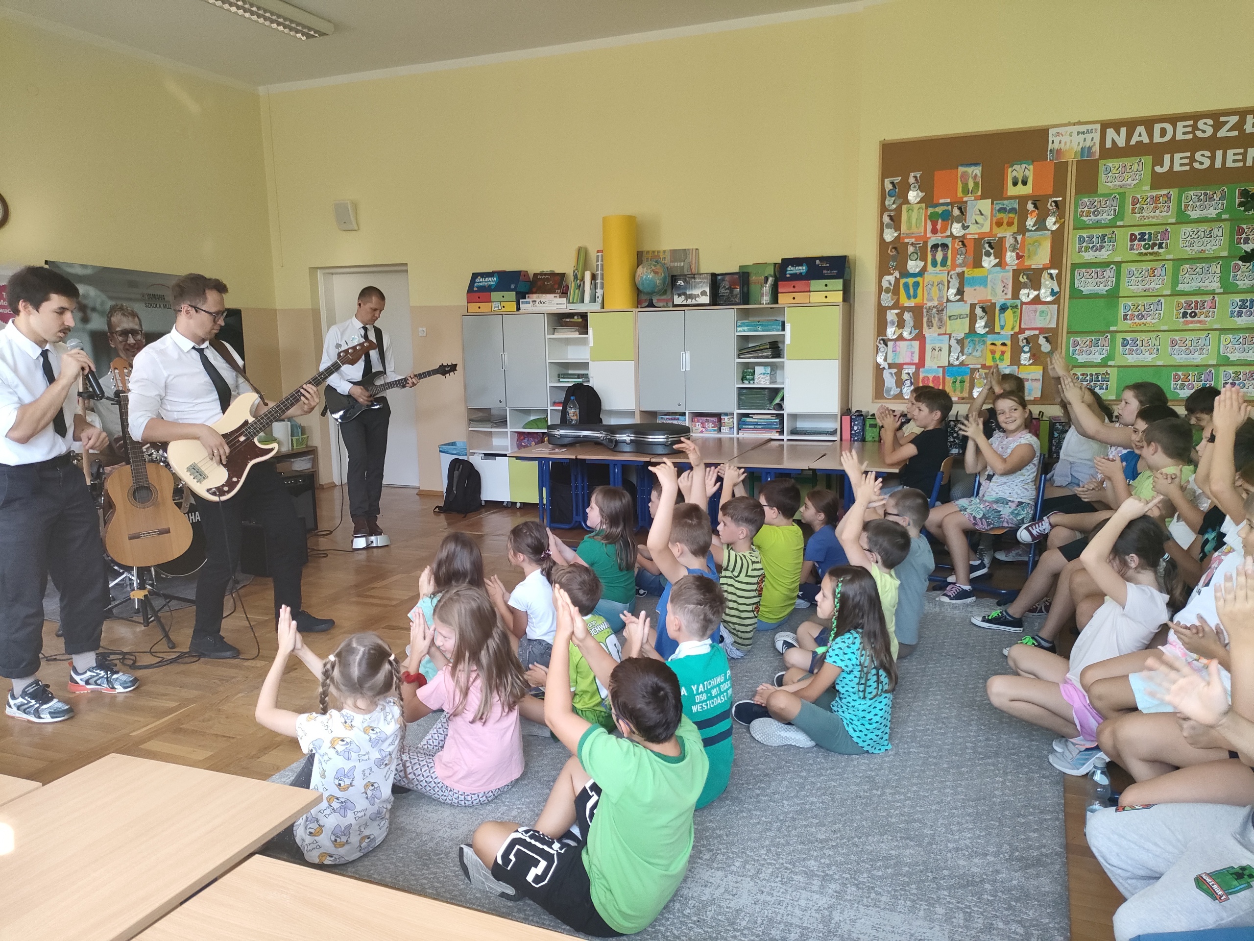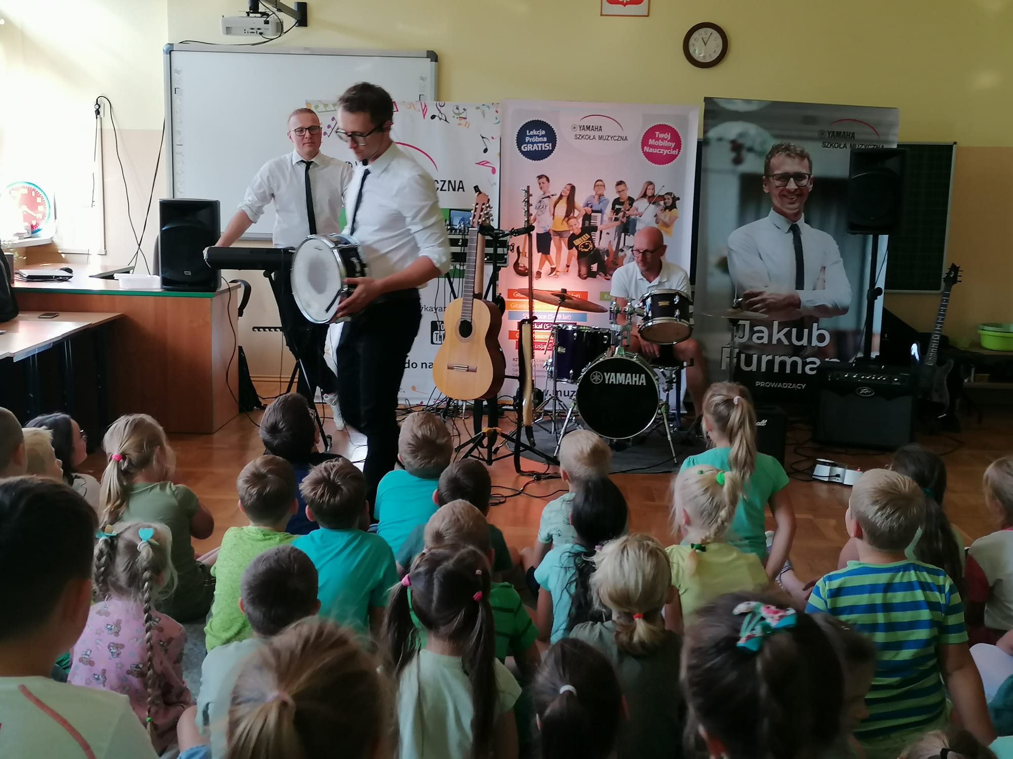22 września dla klas 1-3 odbyła się pokazowa lekcja, prowadzona przez Szkołę Muzyczną Yamaha. Podczas audycji uczniowie zapoznani zostali z instrumentami, na których można uczyć się gry, zapisując się do szkoły. Były to: gitara klasyczna i elektryczna, keyboard oraz perkusja. Muzycy zaprezentowali, jak można zagrać na każdym z instrumentów, opowiedzieli o budowie każdego z nich, a także dali szansę uczniom spróbować swoich sił podczas samodzielnej gry. Było wesoło, a lekcja muzyki wszystkim bardzo się spodobała.