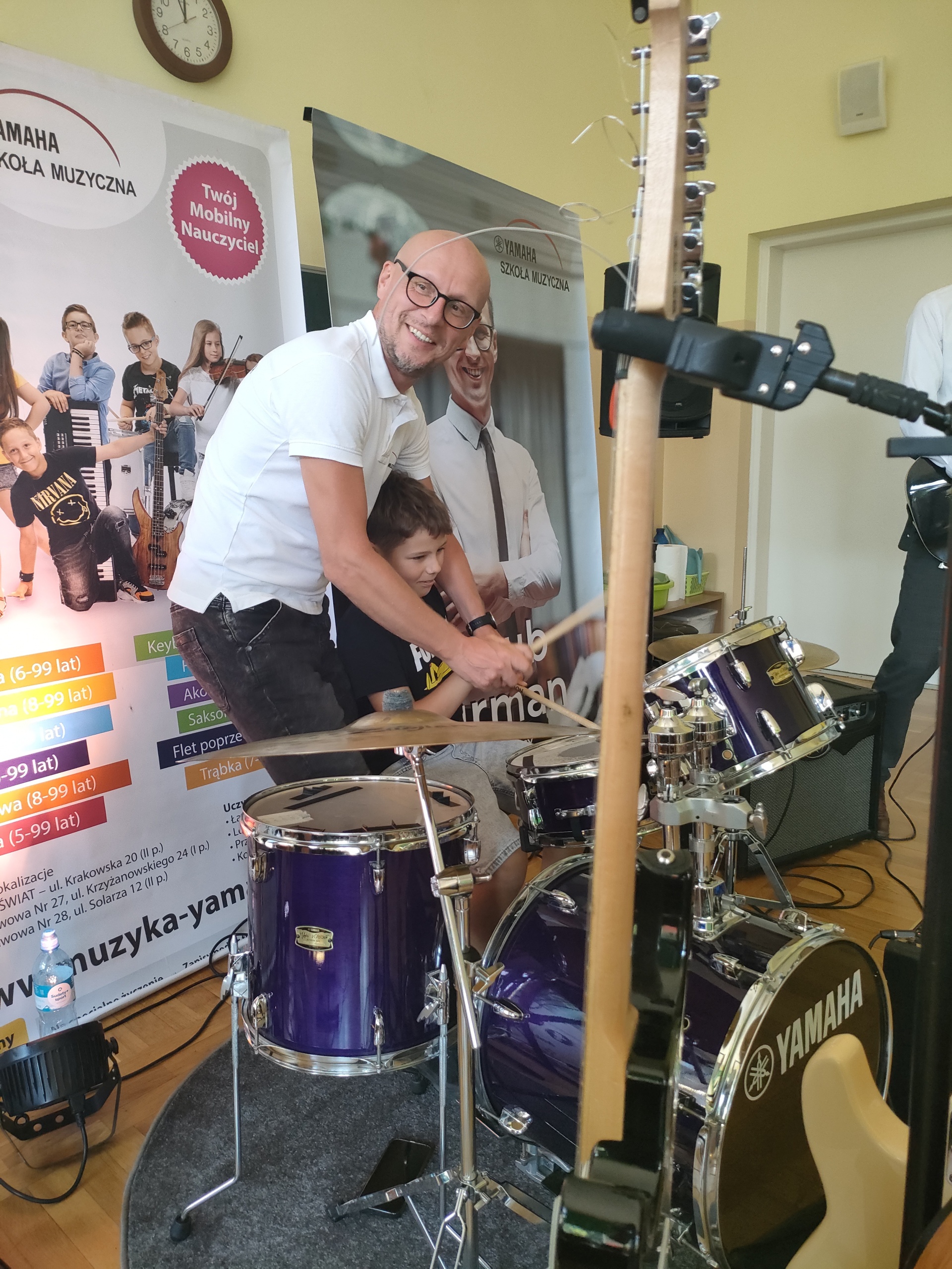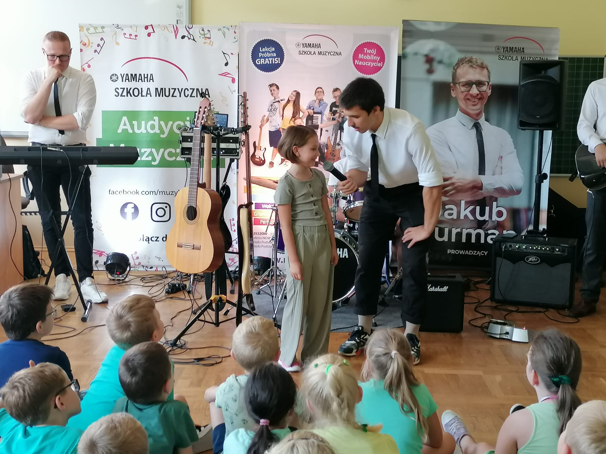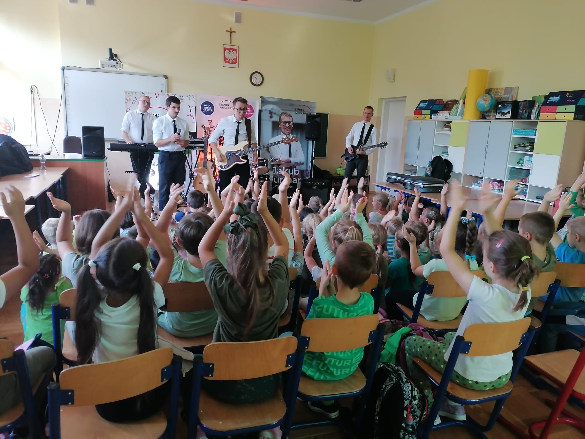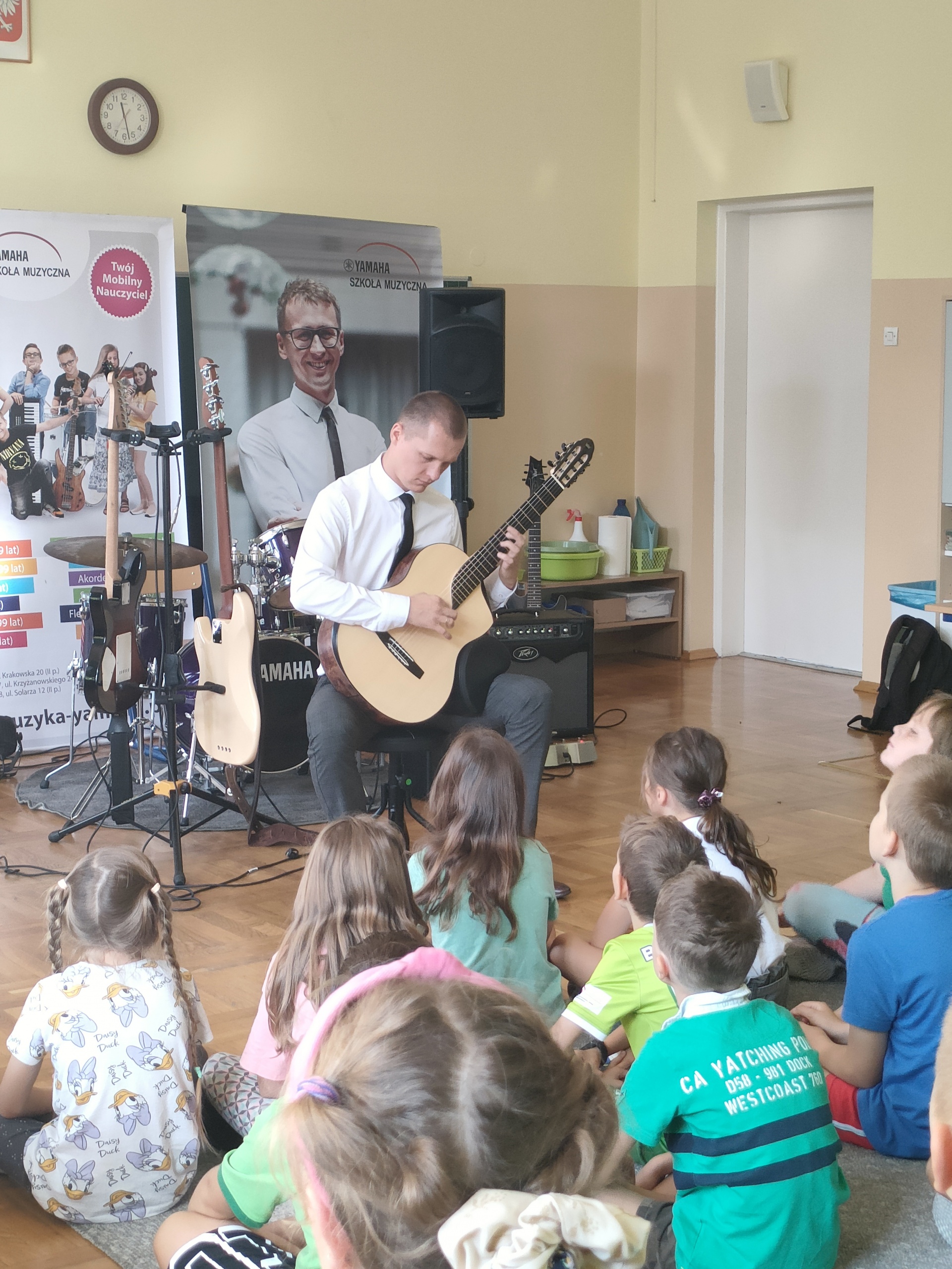 22 września dla klas 1-3 odbyła się pokazowa lekcja, prowadzona przez Szkołę Muzyczną Yamaha. Podczas audycji uczniowie zapoznani zostali z instrumentami, na których można uczyć się gry, zapisując się do szkoły. Były to: gitara klasyczna i elektryczna, keyboard oraz perkusja. Muzycy zaprezentowali, jak można zagrać na każdym z instrumentów, opowiedzieli o budowie każdego z nich, a także dali szansę uczniom spróbować swoich sił podczas samodzielnej gry. Było wesoło, a lekcja muzyki wszystkim bardzo się spodobała.