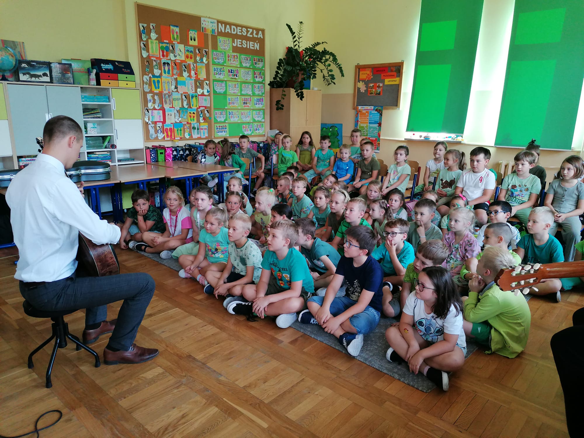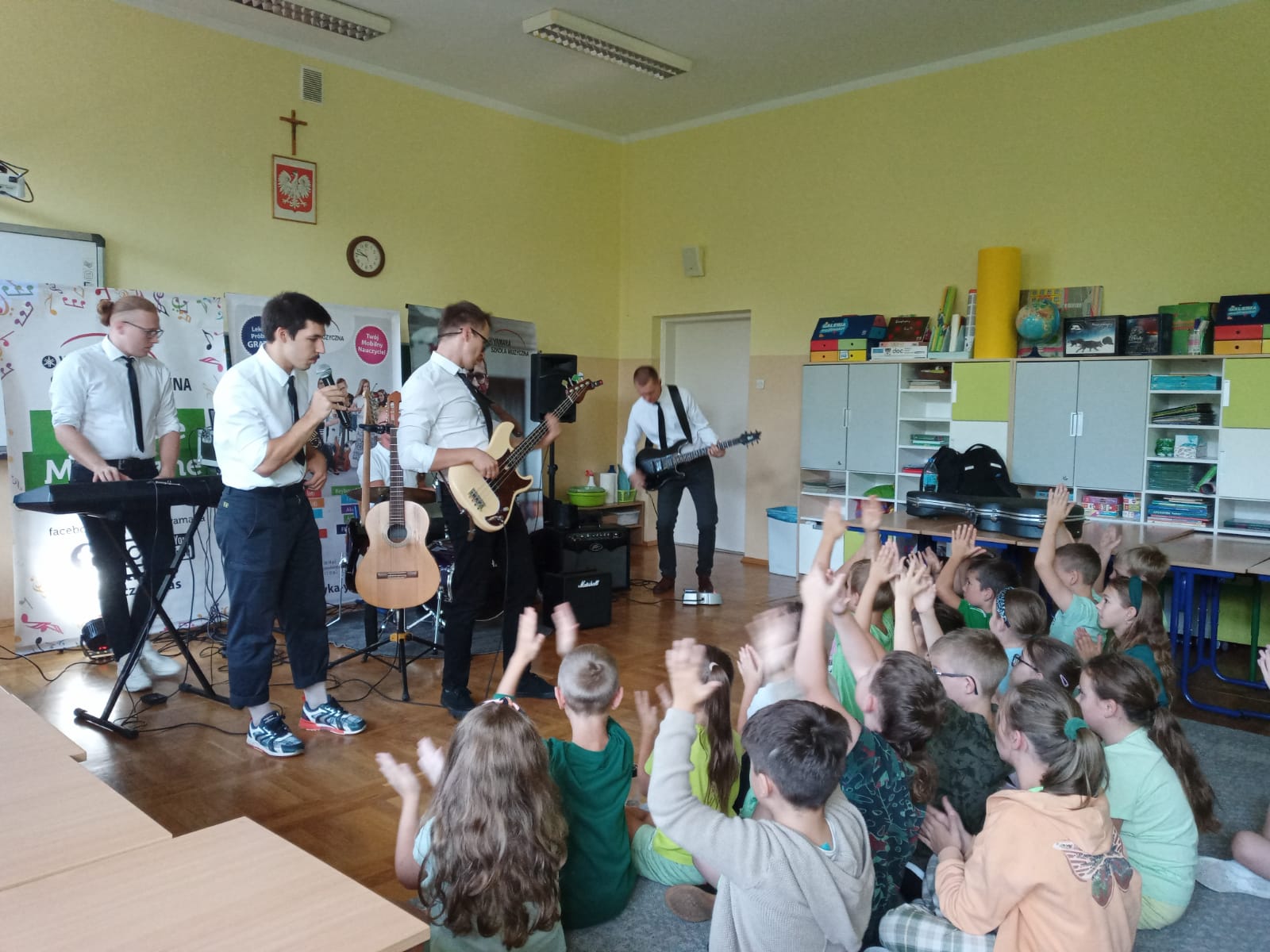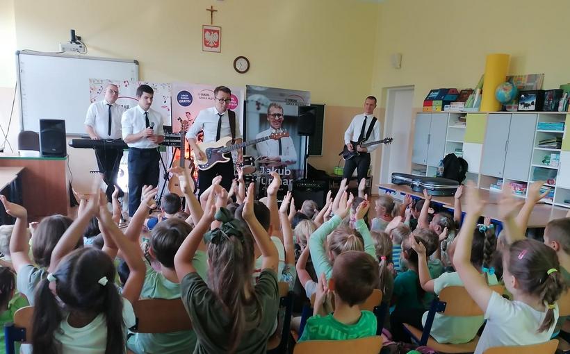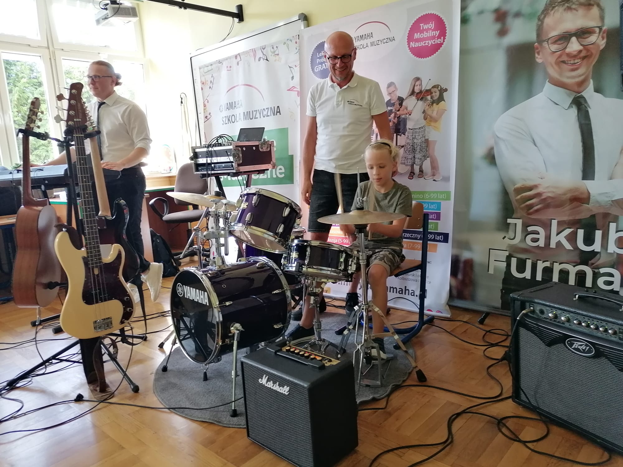 22 września dla klas 1-3 odbyła się pokazowa lekcja, prowadzona przez Szkołę Muzyczną Yamaha. Podczas audycji uczniowie zapoznani zostali z instrumentami, na których można uczyć się gry, zapisując się do szkoły. Były to: gitara klasyczna i elektryczna, keyboard oraz perkusja. Muzycy zaprezentowali, jak można zagrać na każdym z instrumentów, opowiedzieli o budowie każdego z nich, a także dali szansę uczniom spróbować swoich sił podczas samodzielnej gry. Było wesoło, a lekcja muzyki wszystkim bardzo się spodobała.