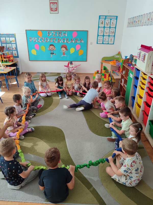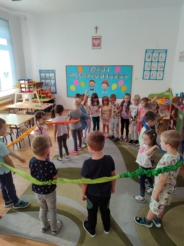 Ogólnopolski Dzień Przedszkolaka, jak co roku, obchodzony jest 20 września. W tym dniu w naszym przedszkolu na dzieci czekało wiele atrakcji i niespodzianek, przygotowanych przez panie wychowawczynie. Wśród nich znalazły się między innymi gry oraz zabawy integracyjne z balonami i chustami animacyjnymi. Nie zabrakło prac plastycznych oraz aktywności przy muzyce. Wyjście na lody do pobliskiej cukierni również było jedną z atrakcji podczas tego wyjątkowego święta. Radość i uśmiech przedszkolaków świadczyły o wspaniałej zabawie. Z pewnością ten radosny dzień na długo pozostanie w pamięci każdego dziecka. Wszystkim przedszkolakom jeszcze raz składamy serdeczne życzenia.