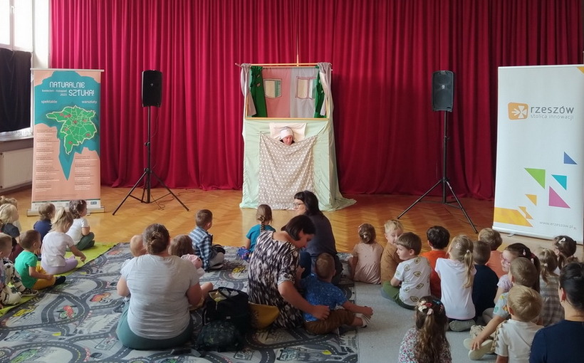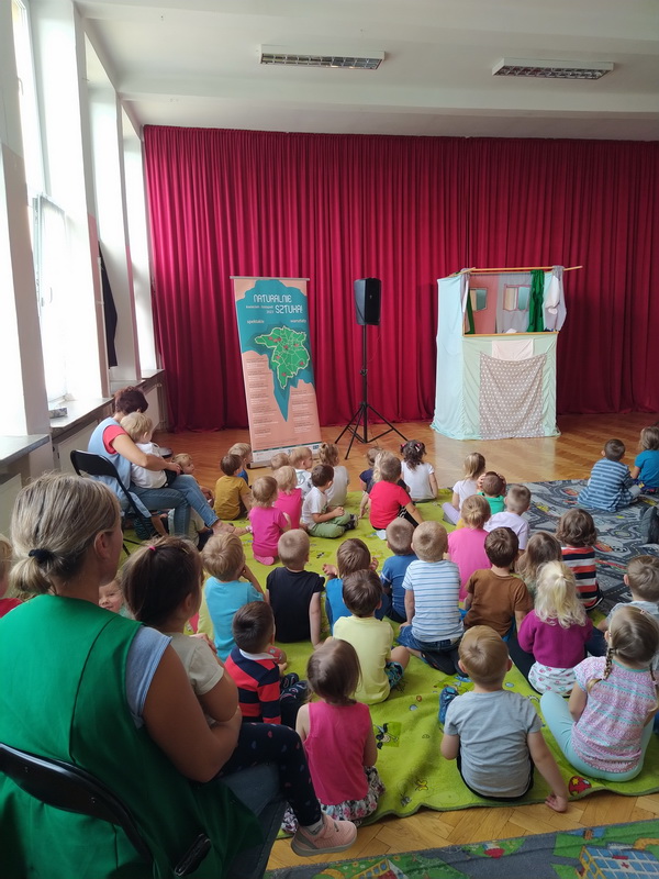 „Misiowe przygody” – to tytuł spektaklu, w którym 26 września uczestniczyły najmłodsze przedszkolaki. Aktorzy Teatru Nemno, przy pomocy pacynek, w interesujący sposób opowiedzieli dzieciom o poszukiwaniu przyjaźni. Śpioch, który był główną postacią przedstawienia, postanowił wyśnić Misiowi przyjaciela. Z pozoru proste zadanie okazało się nie lada wyzwaniem, o czym mogły przekonać się dzieci z naszego przedszkola, które z wielkim zainteresowaniem obejrzały spektakl.