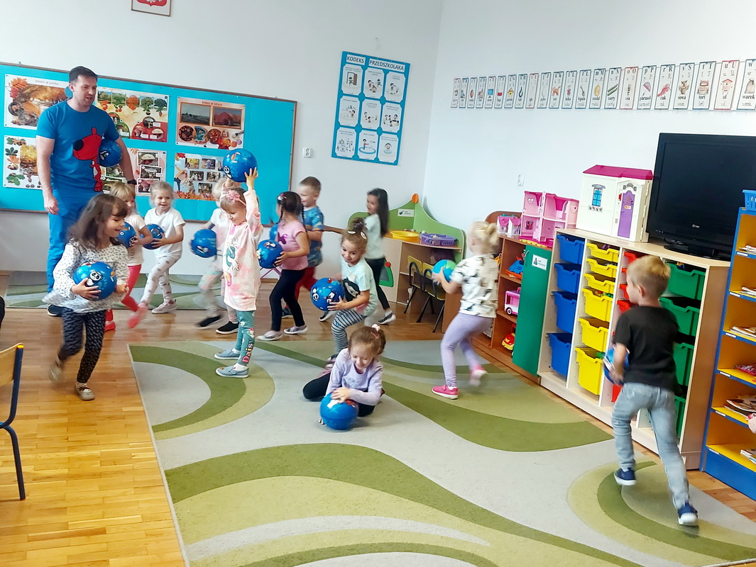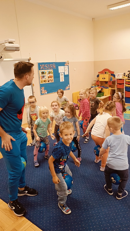 Za nami kolejne zajęcia pokazowe Drużyny Kangura. Zachęcają one do podejmowania aktywności fizycznej, opartej na ćwiczeniach z piłkami. Głównym zamysłem jest kształtowanie u przedszkolaków zainteresowania ruchem i kulturą fizyczną, zaspokojenie potrzeby spontanicznej aktywności fizycznej, a także przygotowanie do podejmowania regularnego ruchu teraz i w późniejszych latach. Podczas zajęć przedszkolaki z zainteresowaniem i uśmiechem na twarzy poznawały zasady nowych zabaw ruchowych. Pamiętajmy, że ruch i gimnastyka to zdrowie! Rodziców zapraszamy do odwiedzenia strony internetowej Drużyny Kangura – www.przedszkoliada.pl