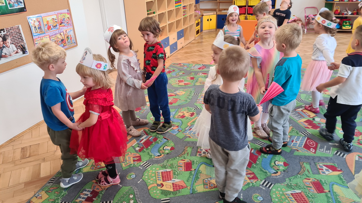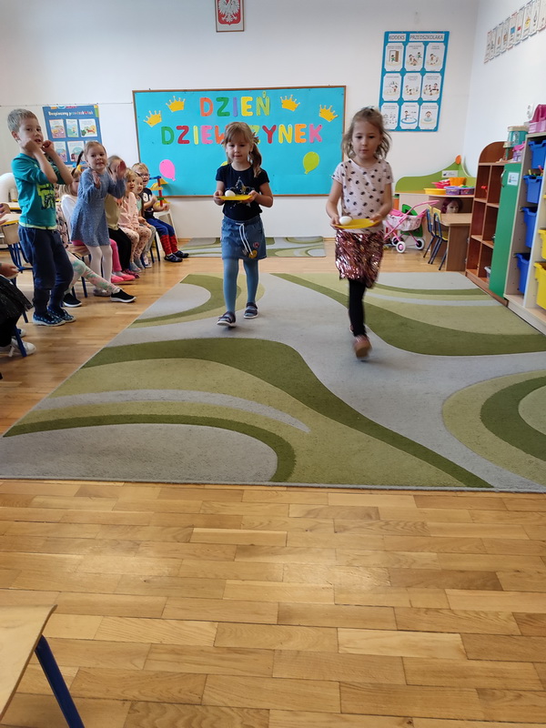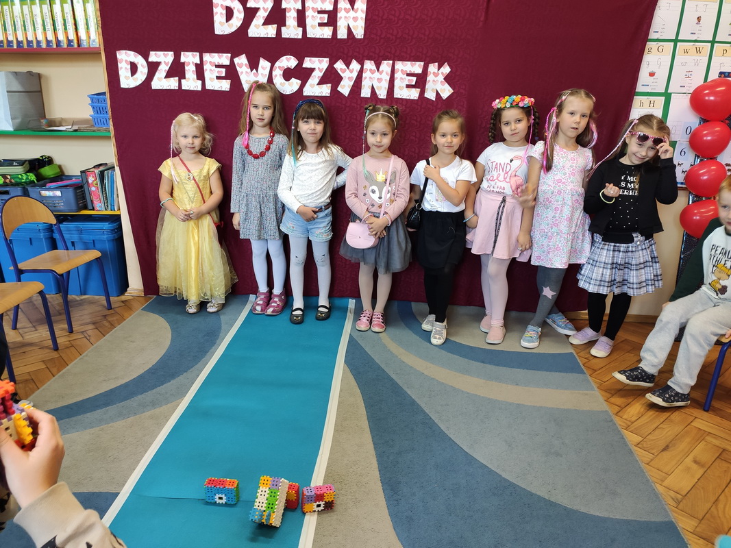 11 października obchodzony jest Międzynarodowy Dzień Dziewczynek. W naszym przedszkolu uczciliśmy go na wesoło. Były tańce, zabawy, konkursy. Wiele radości sprawił dziewczynkom pokaz mody, podczas którego prezentowały swoje stroje i prezenty przygotowane przez kolegów. Nie zabrakło życzeń, głośnego śpiewania „Sto lat” oraz wielu uścisków. Dużo emocji dostarczyły dzieciom quizy na temat ulubionych dziewczęcych zabawek i bajek. Na buziach naszych dam cały dzień królował uśmiech, a chłopcy dołożyli wszelkich starań, aby czuły się one w tym dniu wyjątkowo.