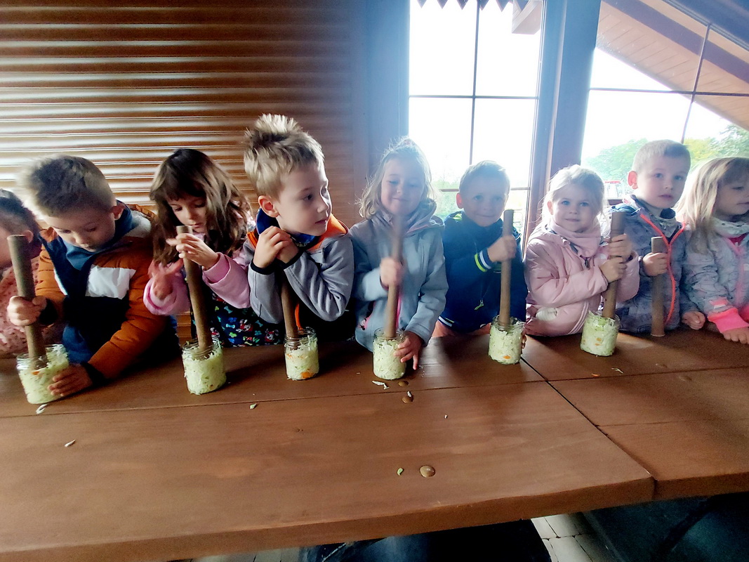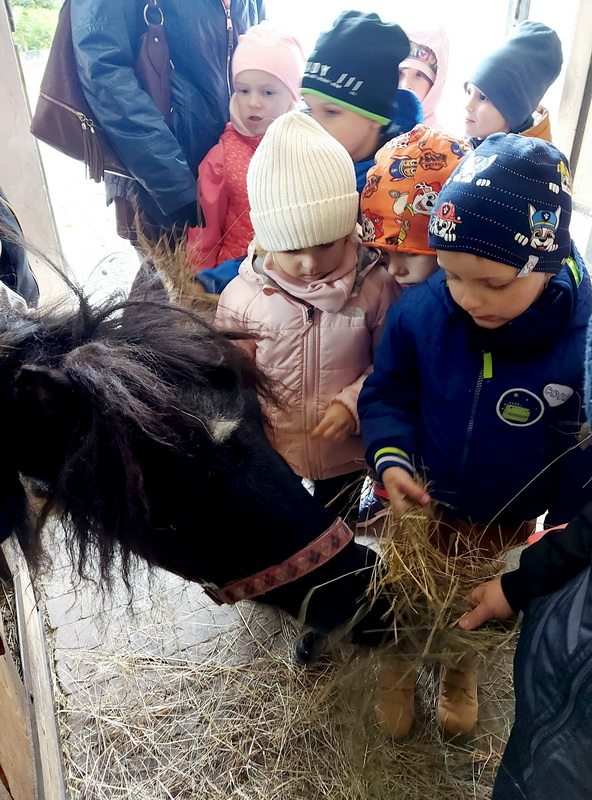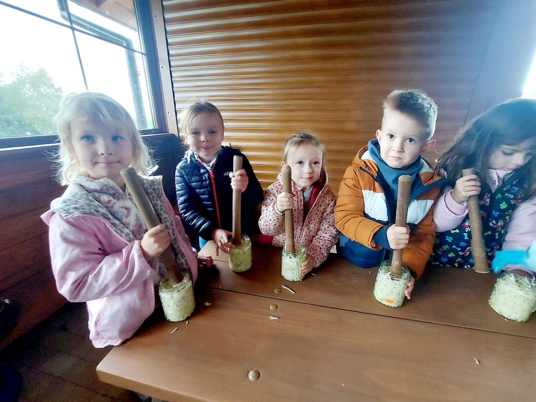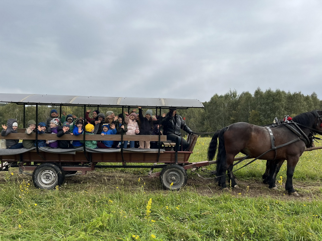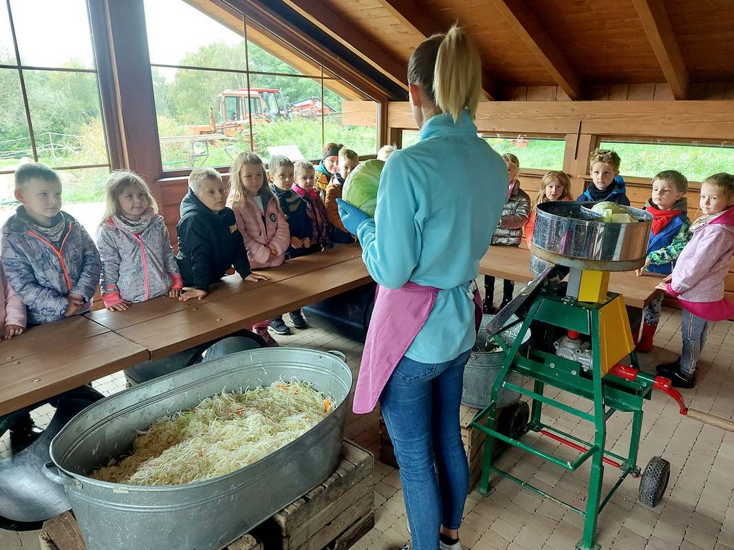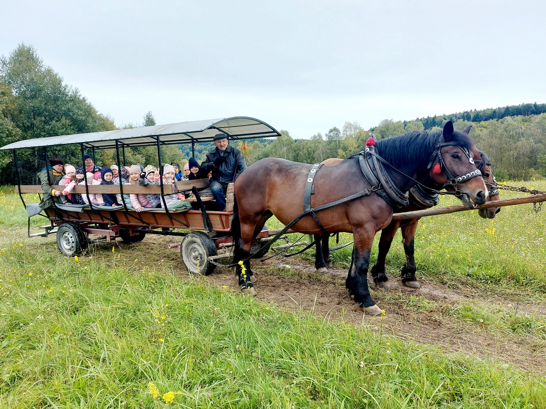 Dzieci miały okazję poznać i zobaczyć z bliska zwierzęta hodowane na wsi. Chętnie karmiły konie, króliki oraz kozę Klarę, która wręcz garnęła się do najmłodszych. Na miejscu czekały na przedszkolaki liczne atrakcje, m. in. tworzenie dyniowego pociągu, zawody w rzucie kaloszem czy jazda bryczką polną drogą. Przedszkolaki brały udział w warsztatach kiszenia kapusty. Wykonane przetwory dzieci zabrały ze sobą do domowej spiżarni. Podczas pobytu w zagrodzie przedszkolaki miały do dyspozycji plac zabaw, wyposażony w niestandardowe zabawki. Tylu wrażeń podczas jednego dnia nie mieliśmy już dawno. Było po prostu wspaniale.