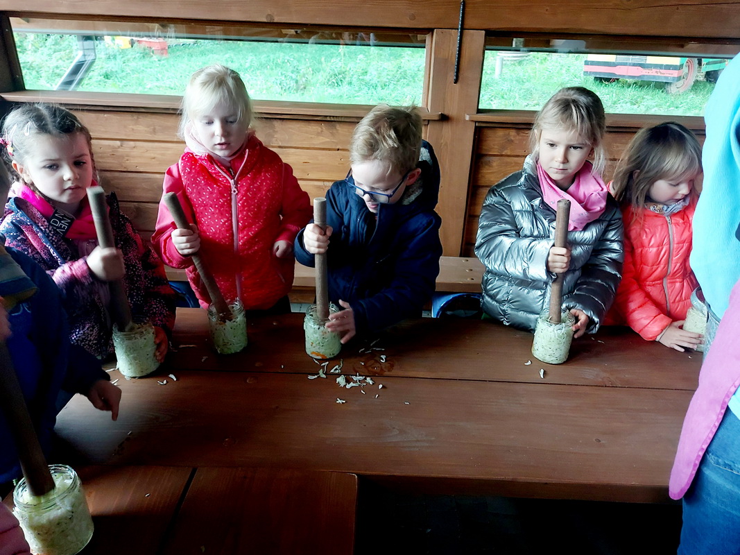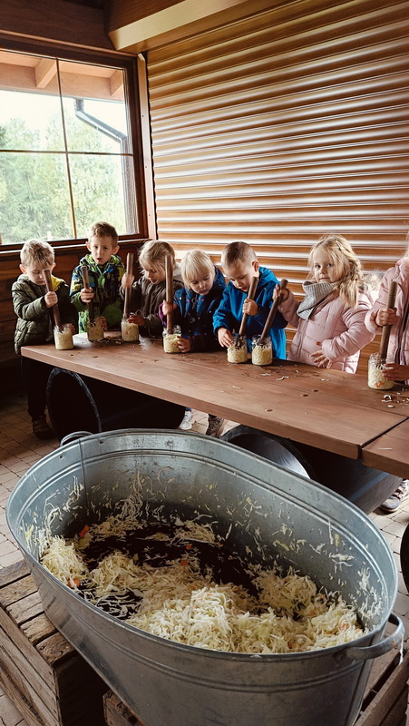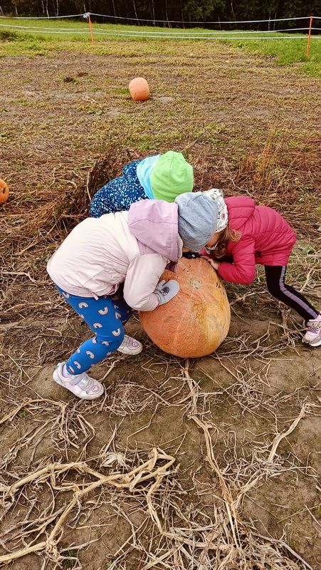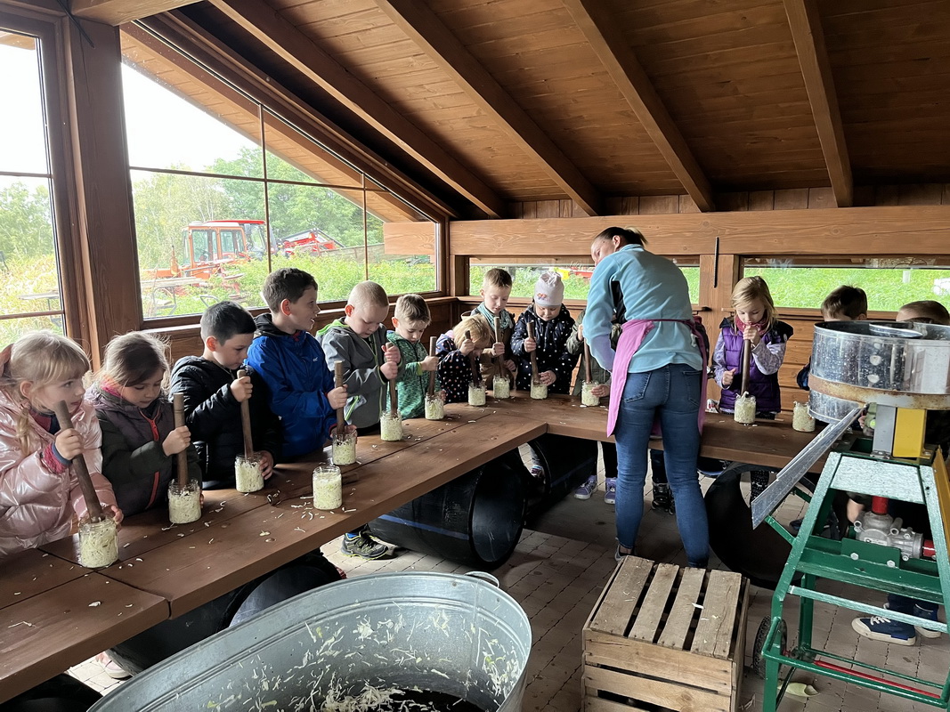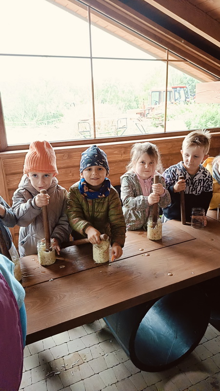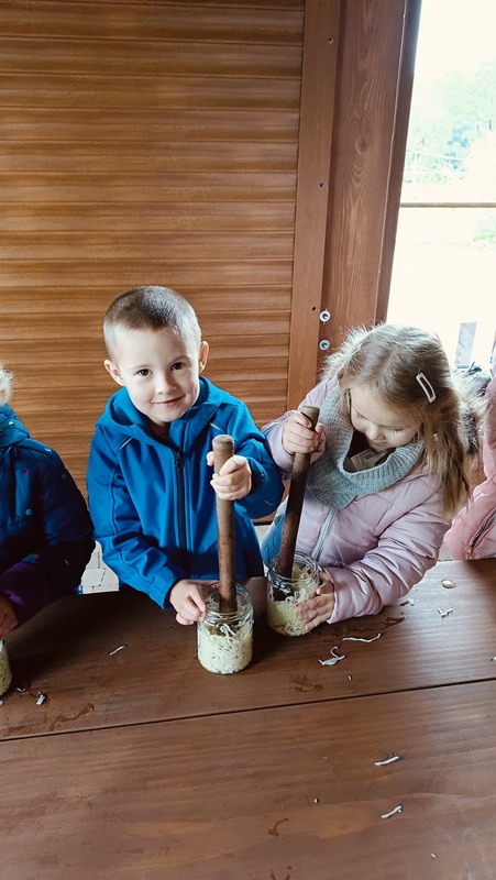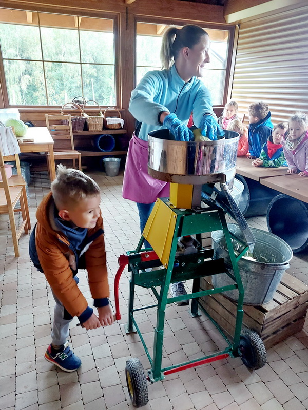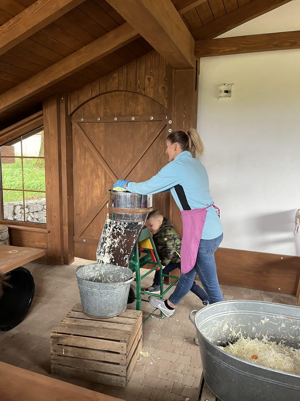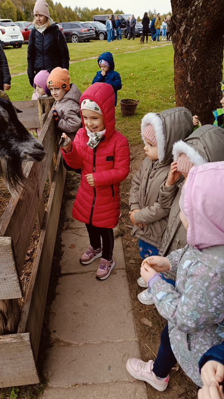 Dzieci miały okazję poznać i zobaczyć z bliska zwierzęta hodowane na wsi. Chętnie karmiły konie, króliki oraz kozę Klarę, która wręcz garnęła się do najmłodszych. Na miejscu czekały na przedszkolaki liczne atrakcje, m. in. tworzenie dyniowego pociągu, zawody w rzucie kaloszem czy jazda bryczką polną drogą. Przedszkolaki brały udział w warsztatach kiszenia kapusty. Wykonane przetwory dzieci zabrały ze sobą do domowej spiżarni. Podczas pobytu w zagrodzie przedszkolaki miały do dyspozycji plac zabaw, wyposażony w niestandardowe zabawki. Tylu wrażeń podczas jednego dnia nie mieliśmy już dawno. Było po prostu wspaniale.