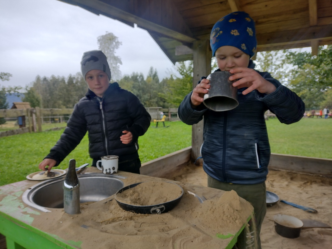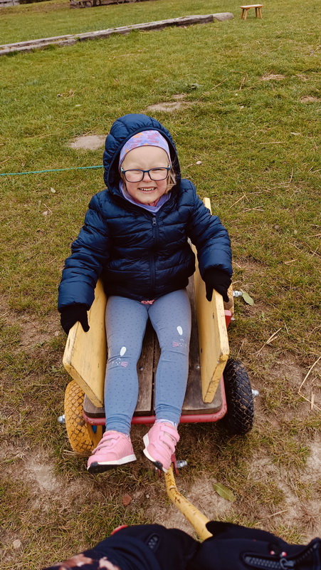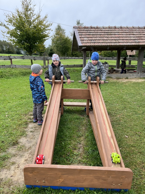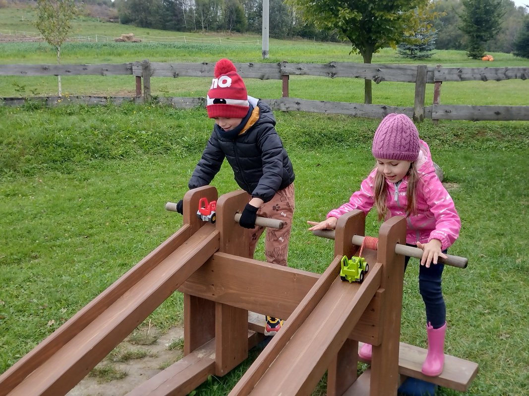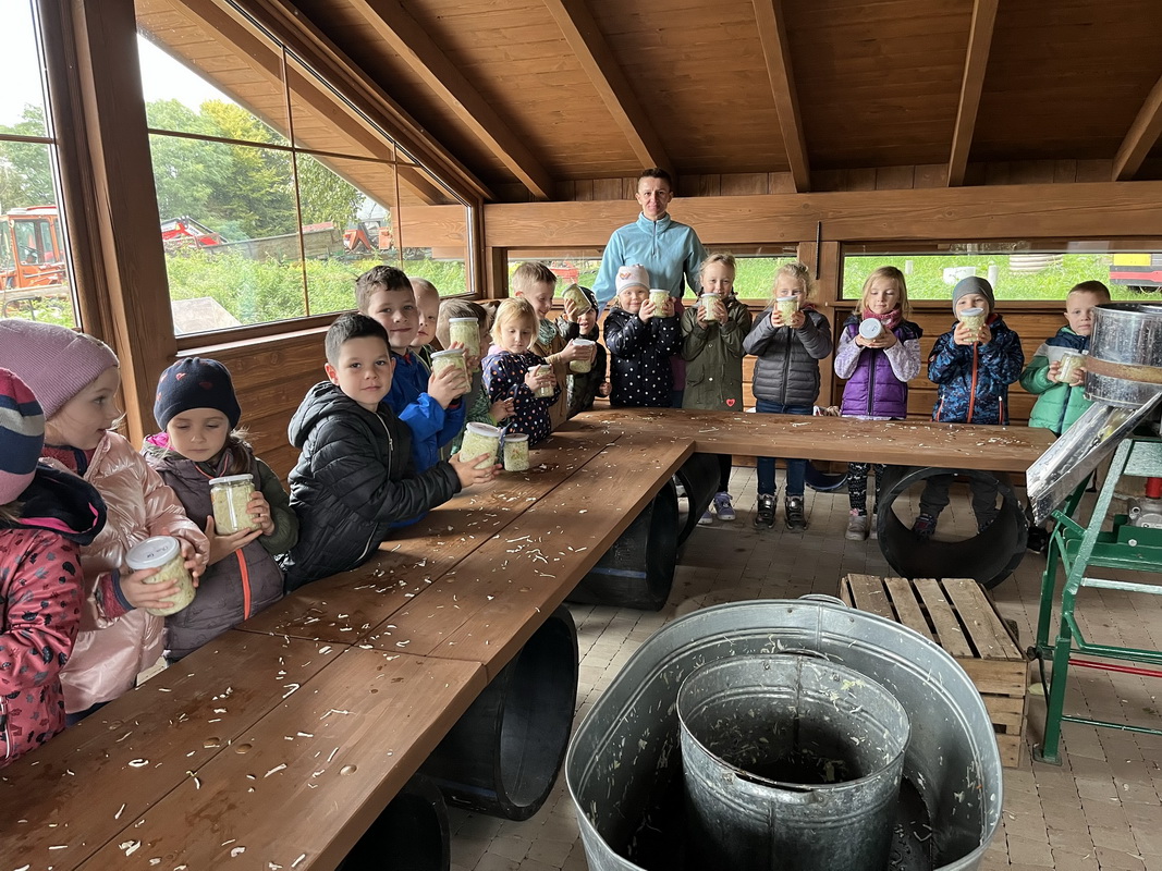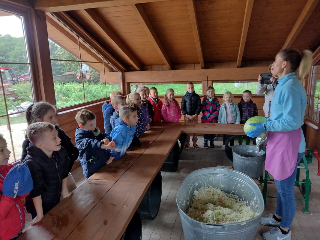 Dzieci miały okazję poznać i zobaczyć z bliska zwierzęta hodowane na wsi. Chętnie karmiły konie, króliki oraz kozę Klarę, która wręcz garnęła się do najmłodszych. Na miejscu czekały na przedszkolaki liczne atrakcje, m. in. tworzenie dyniowego pociągu, zawody w rzucie kaloszem czy jazda bryczką polną drogą. Przedszkolaki brały udział w warsztatach kiszenia kapusty. Wykonane przetwory dzieci zabrały ze sobą do domowej spiżarni. Podczas pobytu w zagrodzie przedszkolaki miały do dyspozycji plac zabaw, wyposażony w niestandardowe zabawki. Tylu wrażeń podczas jednego dnia nie mieliśmy już dawno. Było po prostu wspaniale.