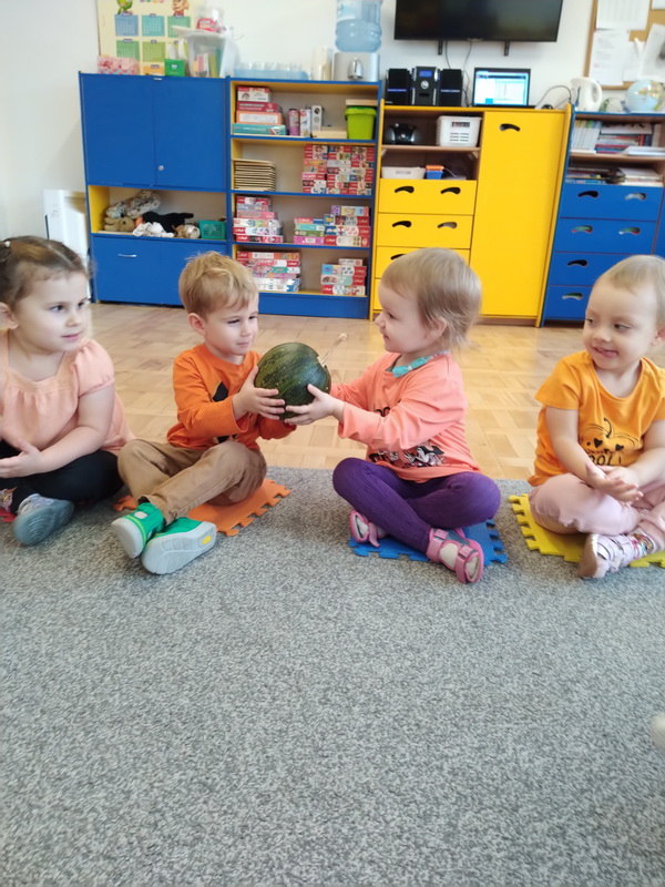 Nadchodzi koniec jesiennych zbiorów, więc to najlepszy czas by ogłosić Dzień Dyni. W naszym przedszkolu dzieci z grupy Smerfy świętowały ten szczególny dzień 31 października. Wtedy to wśród Smerfów, ubranych na pomarańczowo, można było poczuć się jak na dyniowej grządce. Dzieci poznały wielką różnorodność dyń i wzbogaciły wiedzę na ich temat. Dowiedziały się, że dynia jest bardzo zdrowym warzywem i że można z niej przygotować wiele dań, tj.: pieczywo, zupę, dżem, ciasto, babeczki, przetwory i soki. Następnie przystąpiliśmy do dyniowych zabaw. Klasyfikowaliśmy dynie według wielkości, koloru i kształtu, szeregowaliśmy od największej dyni do najmniejszej, przeliczaliśmy dynie i porównywaliśmy ich wysokość oraz ciężar. Sprawdziliśmy również, jak dynia wygląda w środku. Na zakończenie świętowania dzieci wykonały piękne dyniowe prace plastyczne. Ten dzień przyniósł nam wszystkim wiele niezapomnianych wrażeń. Bardzo dziękujemy rodzicom za wzorowe przygotowanie dzieci do wspólnego świętowania.