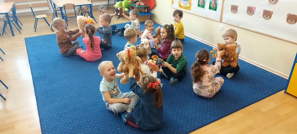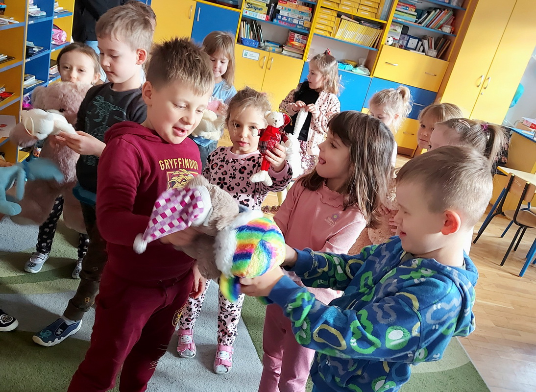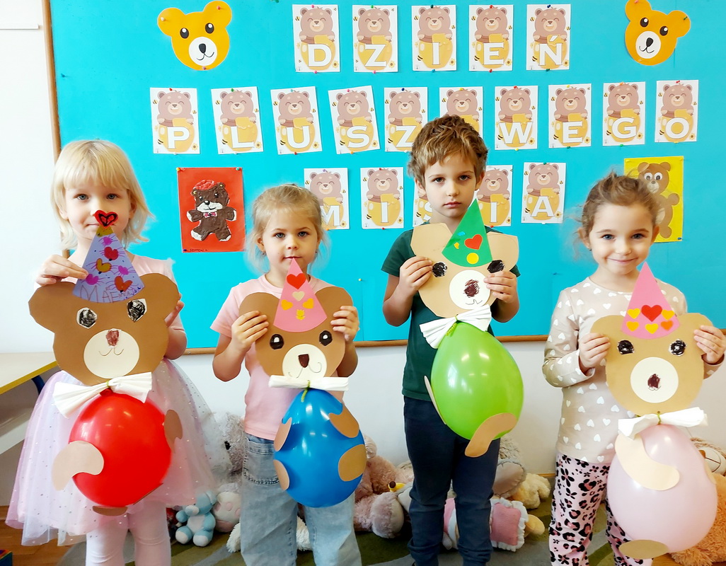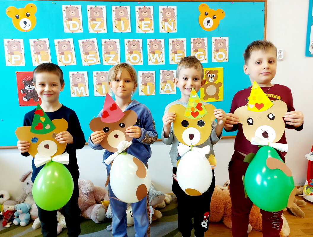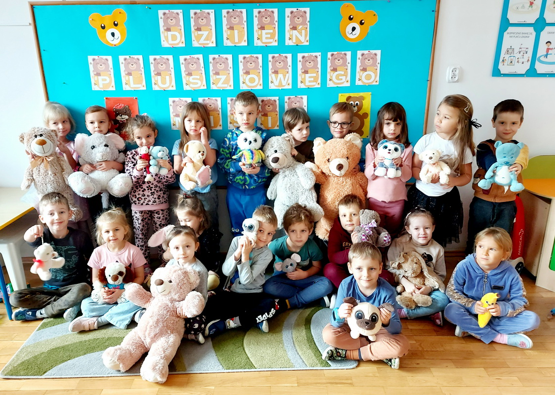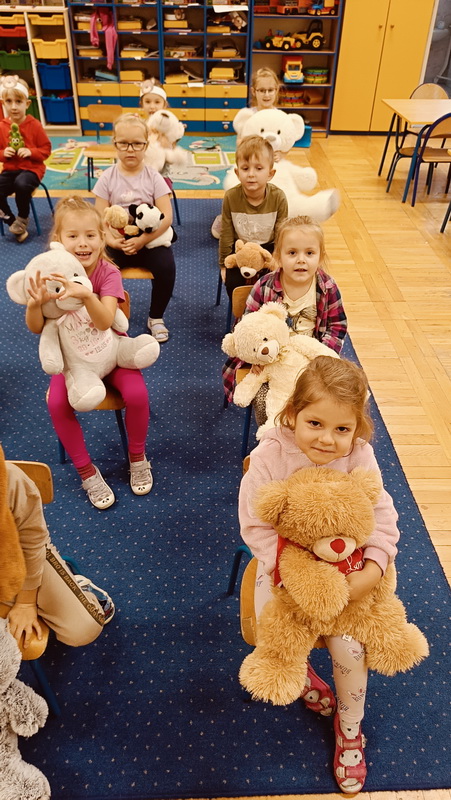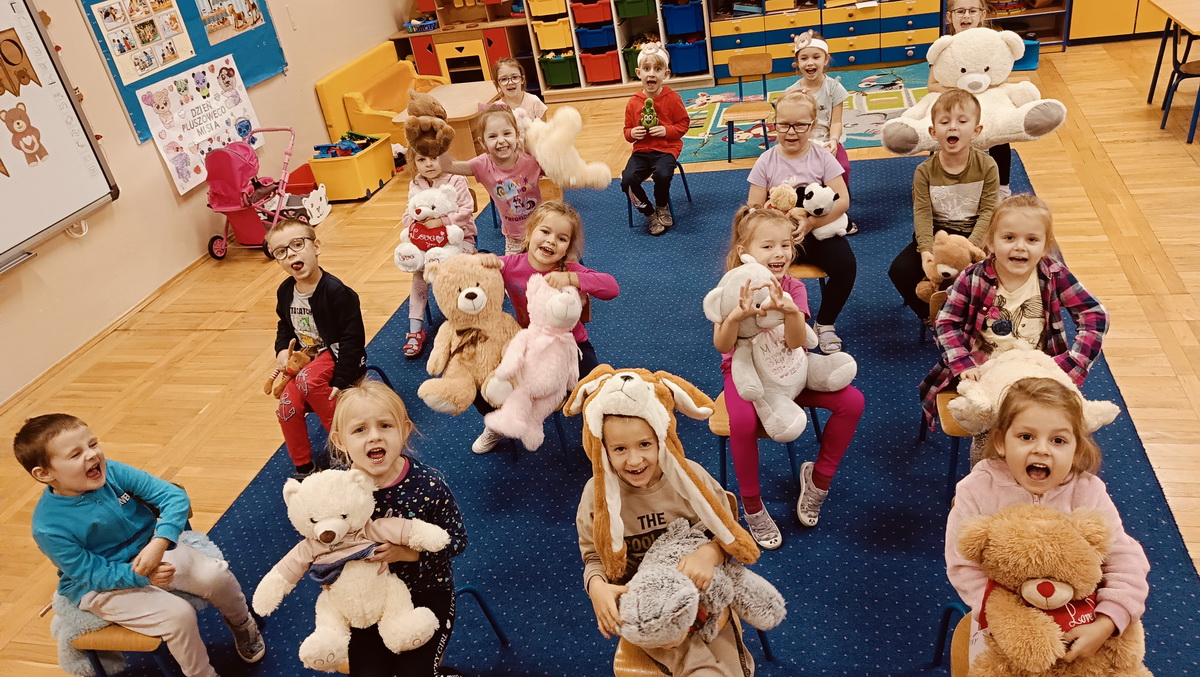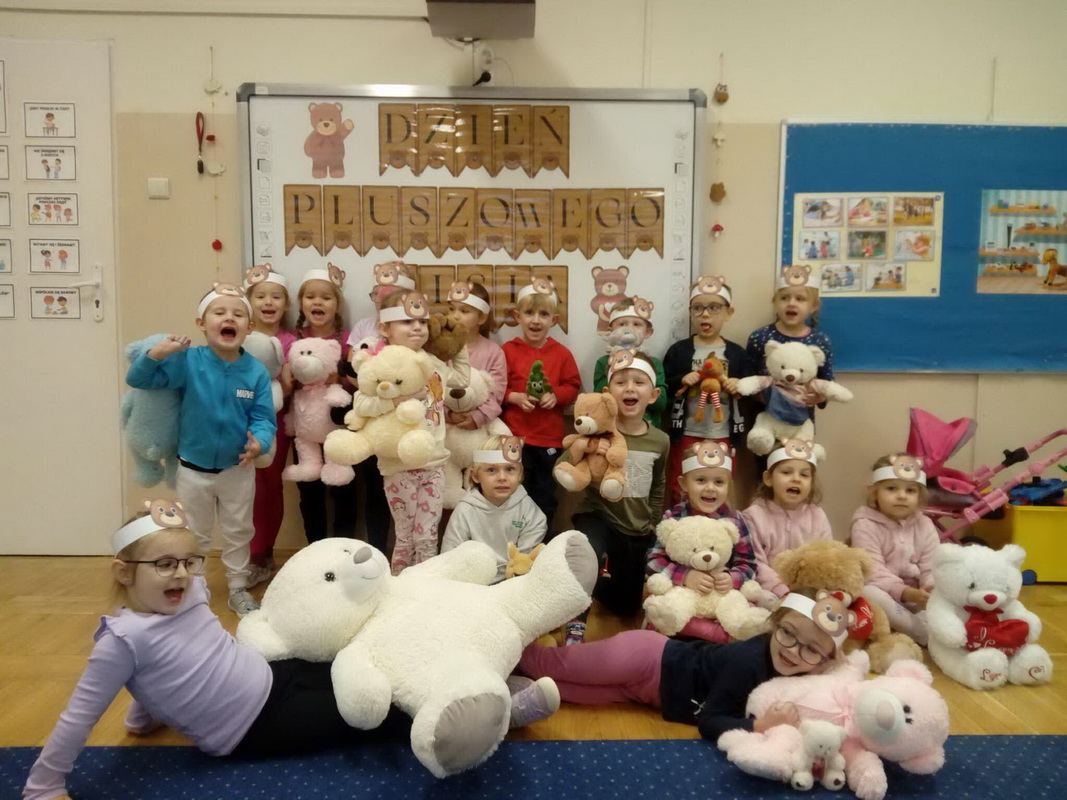 Święto Pluszowego Misia to świetna okazja, aby powrócić do wspomnień i opowiedzieć o swoim ulubionym, pluszowym przyjacielu. Data ta, czyli 25 listopada, nie jest przypadkowa, tego dnia przypada rocznica powstania tej maskotki. Dzieci nie zapomniały o tym święcie i przyszły do przedszkola ze swoim wyjątkowym przyjacielem. Opowiadały, dlaczego lubią swoje misie i jak się z nimi bawią. Przedszkolaki poznały historię pluszowego misia, tańczyły przy piosenkach o misiach, uczestniczyły w zabawach ruchowych i zgadywankach oraz rozwiązywały misiowe zadania matematyczne. Wykonywały również różne prace plastyczne. Ten dzień w przedszkolu pełen był uśmiechu, radości oraz wspólnej zabawy. Mamy nadzieję, że pluszowy miś będzie jeszcze długo towarzyszył naszym dzieciom podczas wędrówek przez świat.