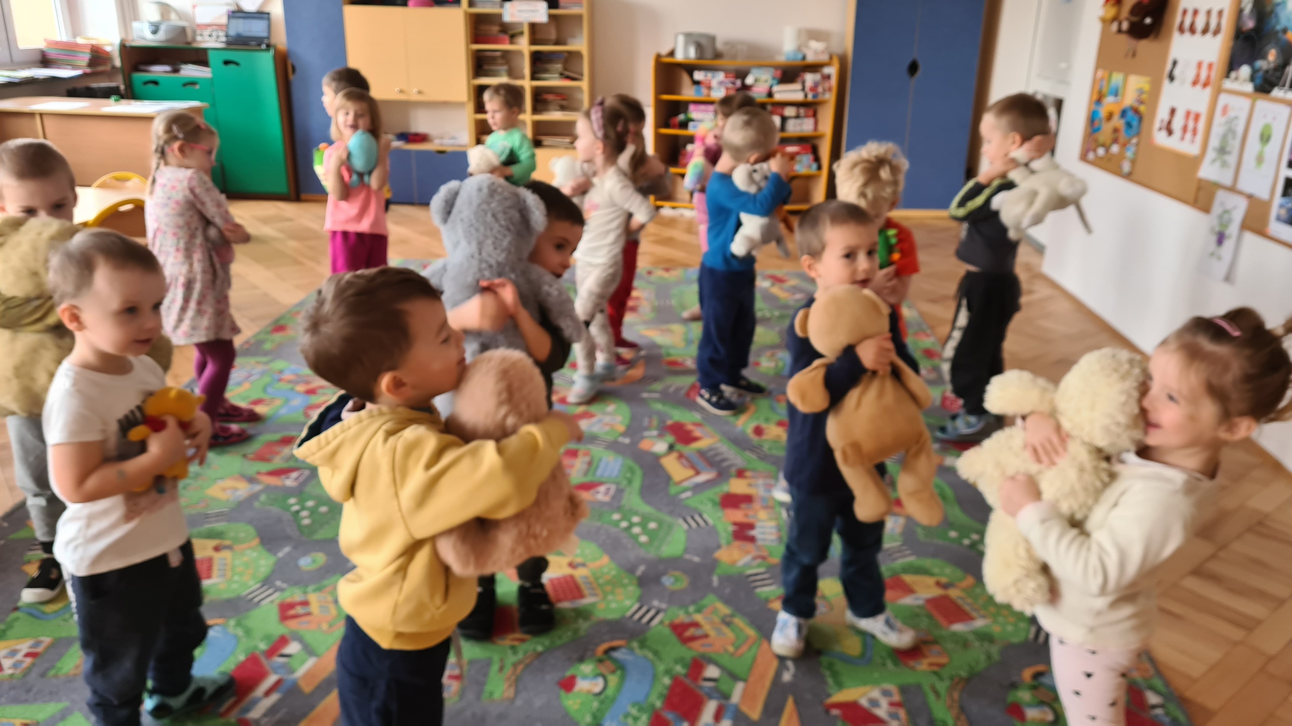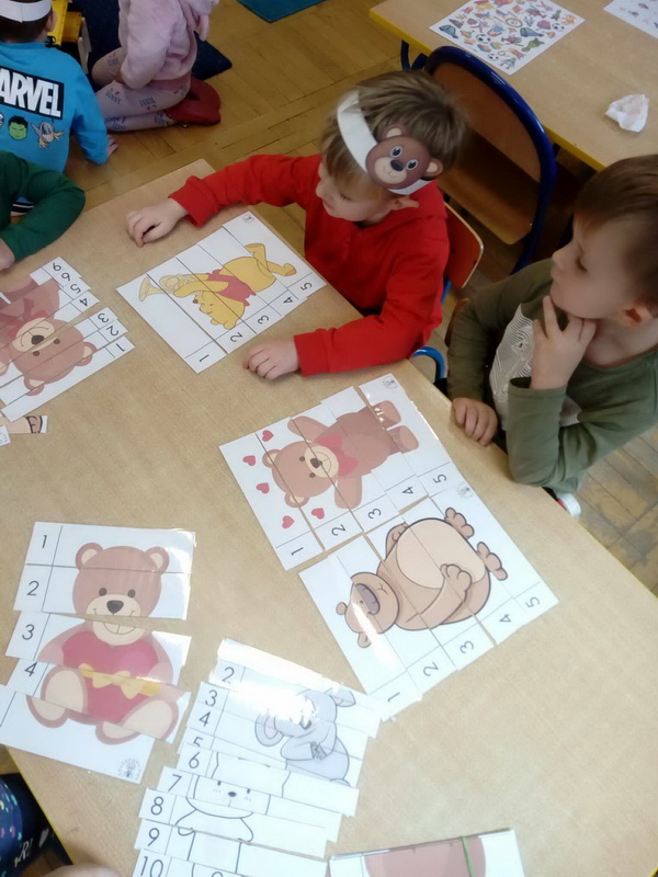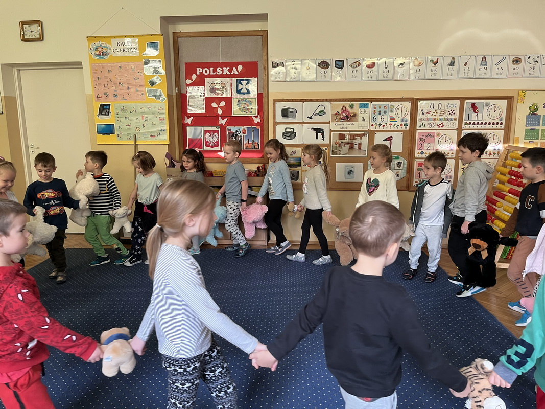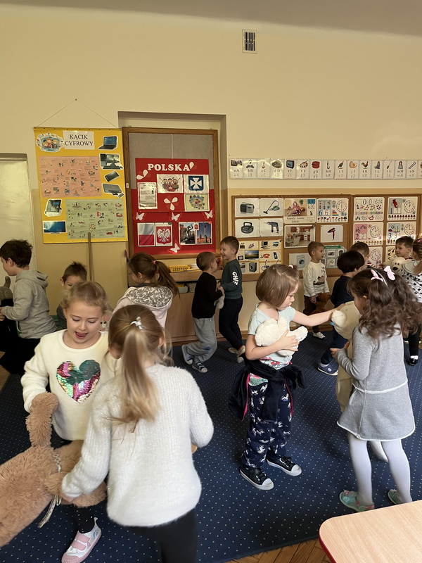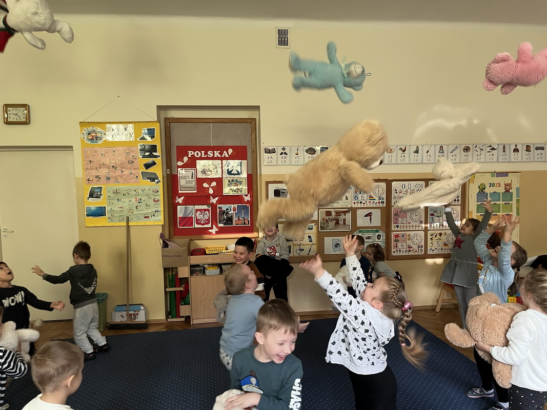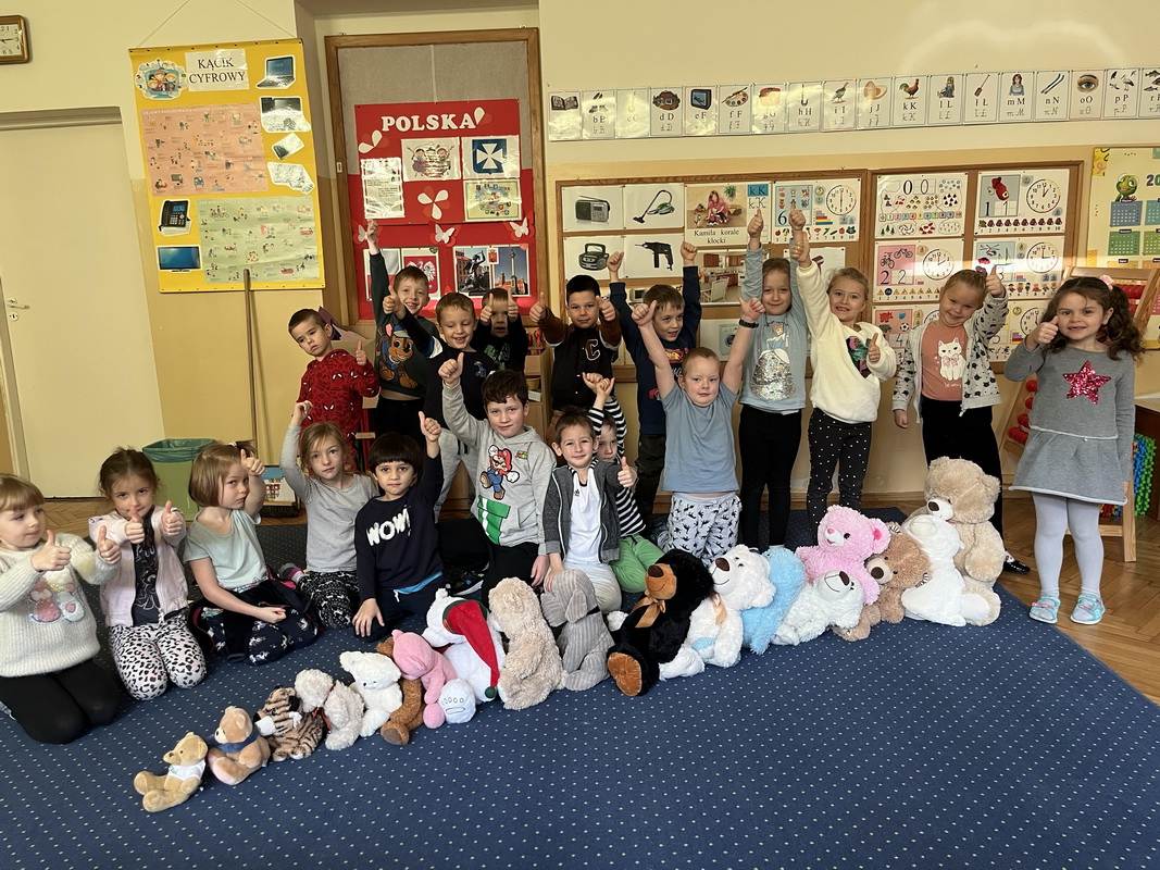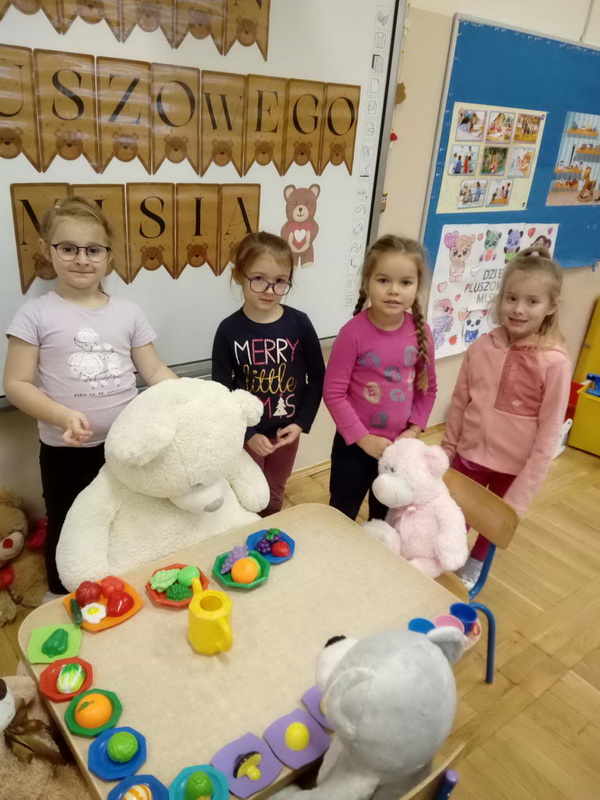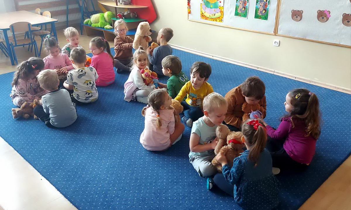 Święto Pluszowego Misia to świetna okazja, aby powrócić do wspomnień i opowiedzieć o swoim ulubionym, pluszowym przyjacielu. Data ta, czyli 25 listopada, nie jest przypadkowa, tego dnia przypada rocznica powstania tej maskotki. Dzieci nie zapomniały o tym święcie i przyszły do przedszkola ze swoim wyjątkowym przyjacielem. Opowiadały, dlaczego lubią swoje misie i jak się z nimi bawią. Przedszkolaki poznały historię pluszowego misia, tańczyły przy piosenkach o misiach, uczestniczyły w zabawach ruchowych i zgadywankach oraz rozwiązywały misiowe zadania matematyczne. Wykonywały również różne prace plastyczne. Ten dzień w przedszkolu pełen był uśmiechu, radości oraz wspólnej zabawy. Mamy nadzieję, że pluszowy miś będzie jeszcze długo towarzyszył naszym dzieciom podczas wędrówek przez świat.