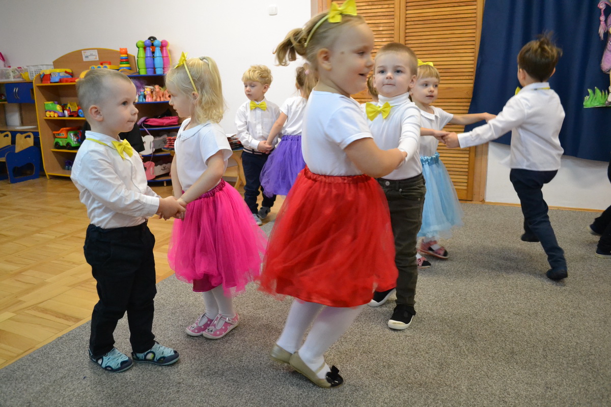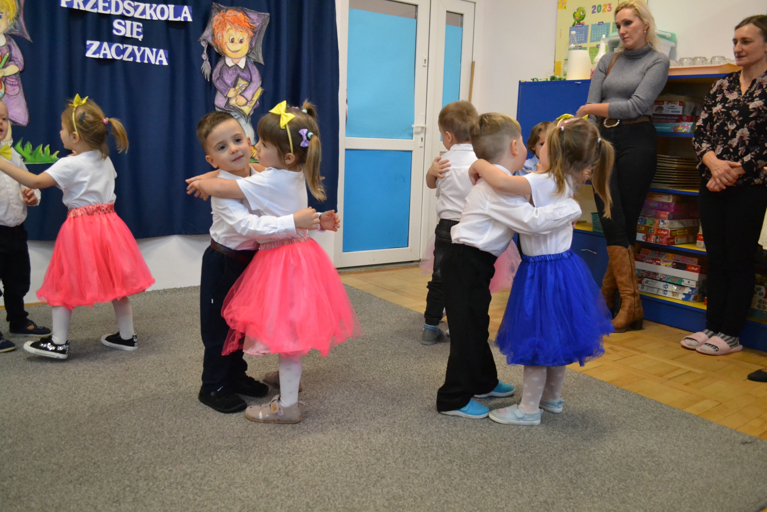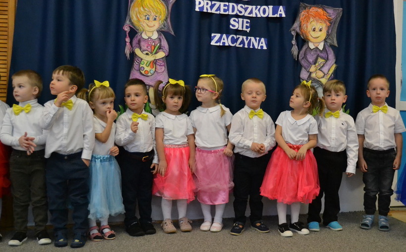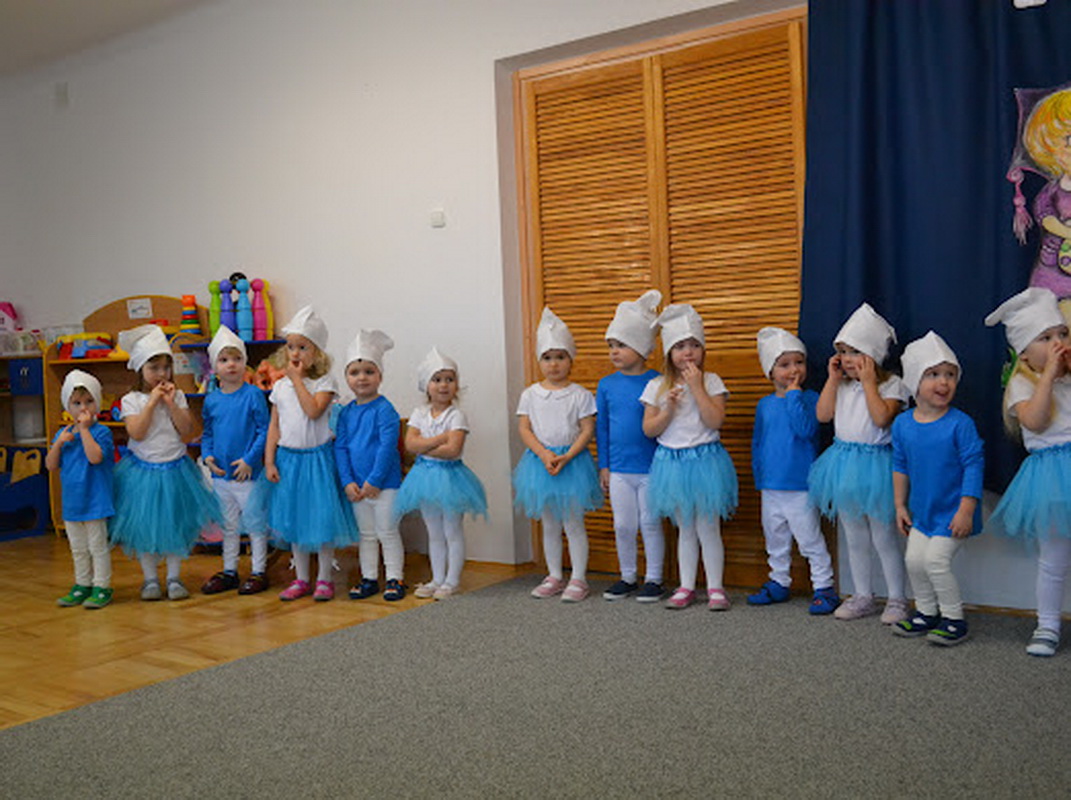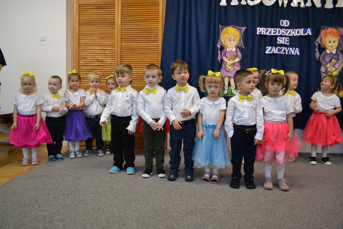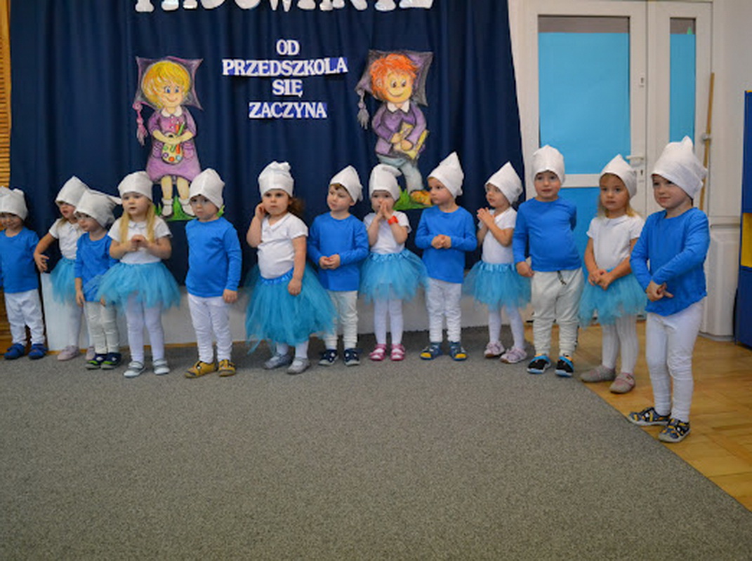 28 listopada w naszym przedszkolu odbyło się pasowanie na przedszkolaka. Bohaterami uroczystości były dzieci z grup Smerfy i Pszczółki, a towarzyszyli im zaproszeni rodzice oraz pani dyrektor Beata Motyl. Maluszki zaprezentowały program artystyczny, który wzbudził zachwyt gości. Występując przed tak wielką publicznością, dzieci wykazały się nie tylko swoimi umiejętnościami, ale również wielką odwagą. Pięknie recytowały wiersze, śpiewały piosenki i tańczyły. Po części artystycznej ślubowały: zgodnie bawić się w przedszkolu, słuchać pani, pomagać kolegom, przychodzić każdego dnia z uśmiechem oraz być dzielnym przedszkolakiem. Punktem kulminacyjnym było pasowanie, dokonane poprzez symboliczne położenie kredki przez panią dyrektor na ramieniu każdego dziecka. Na pamiątkę tego ważnego wydarzenia dzieci otrzymały dyplomy od wychowawców oraz upominki od rodziców. Występy były wyjątkowe, dlatego w niejednym oku pojawiły się łzy wzruszenia. Uroczystość ta pozwoliła dzieciom z dumą powiedzieć – JESTEM PRZEDSZKOLAKIEM!