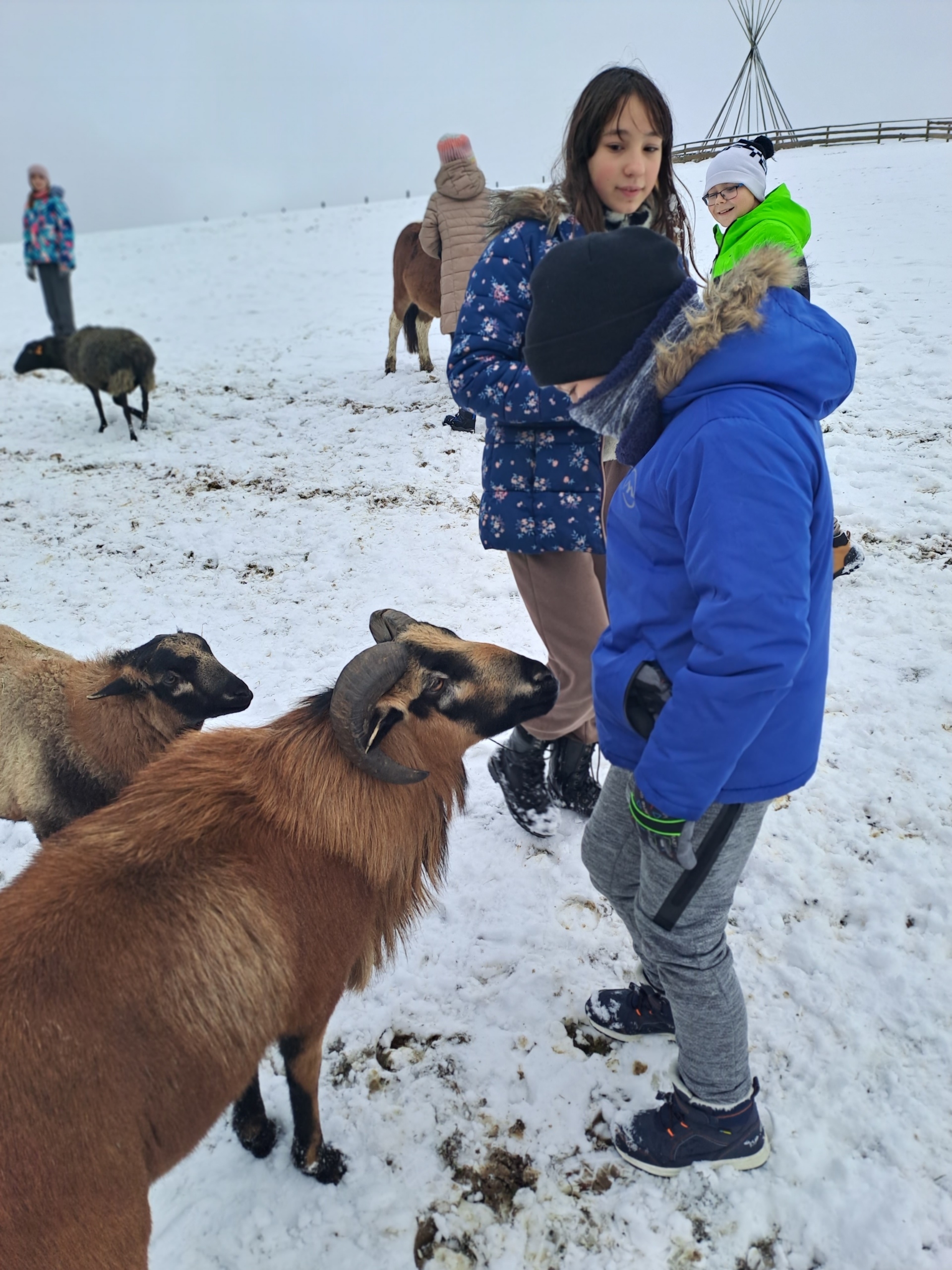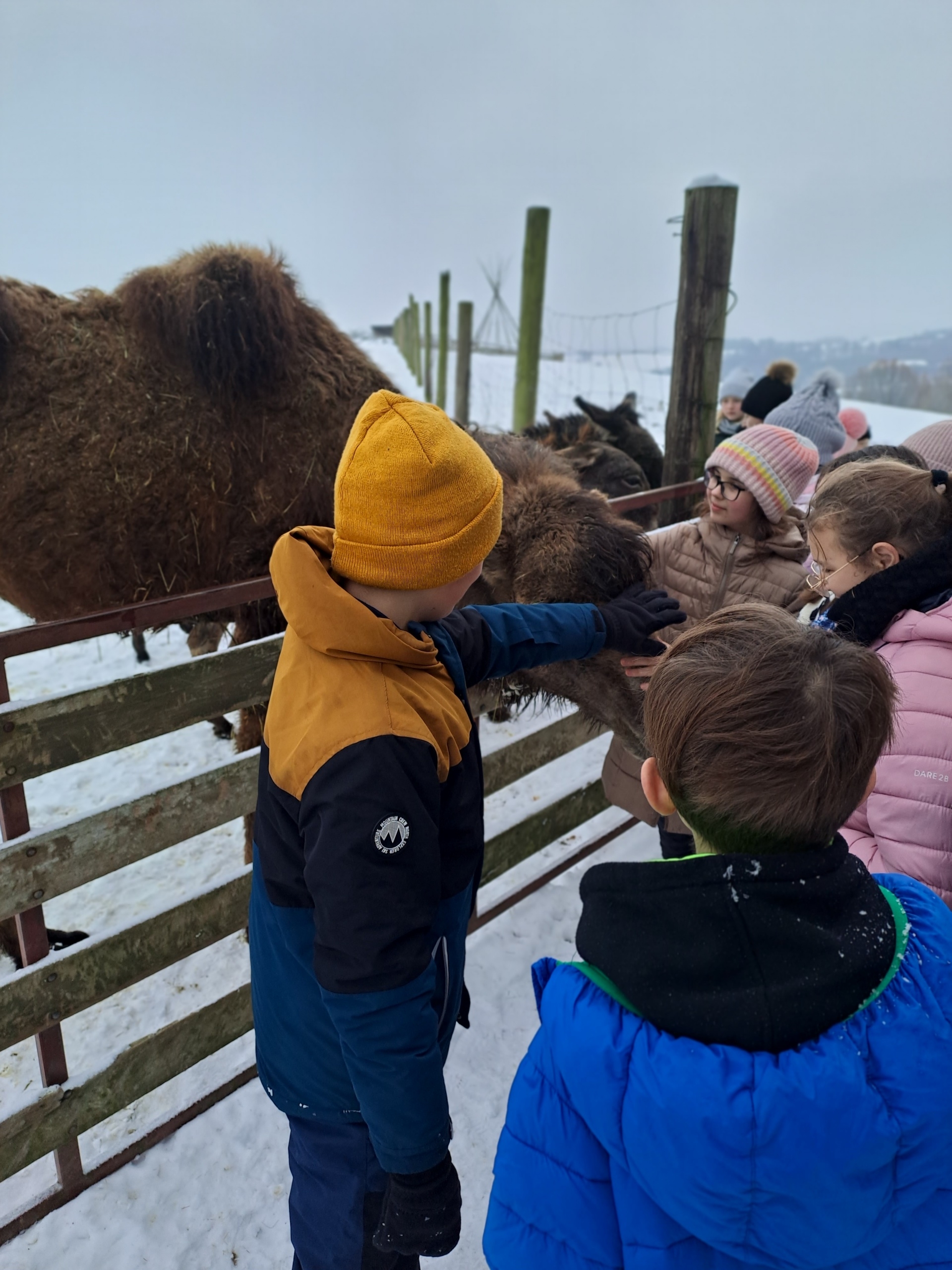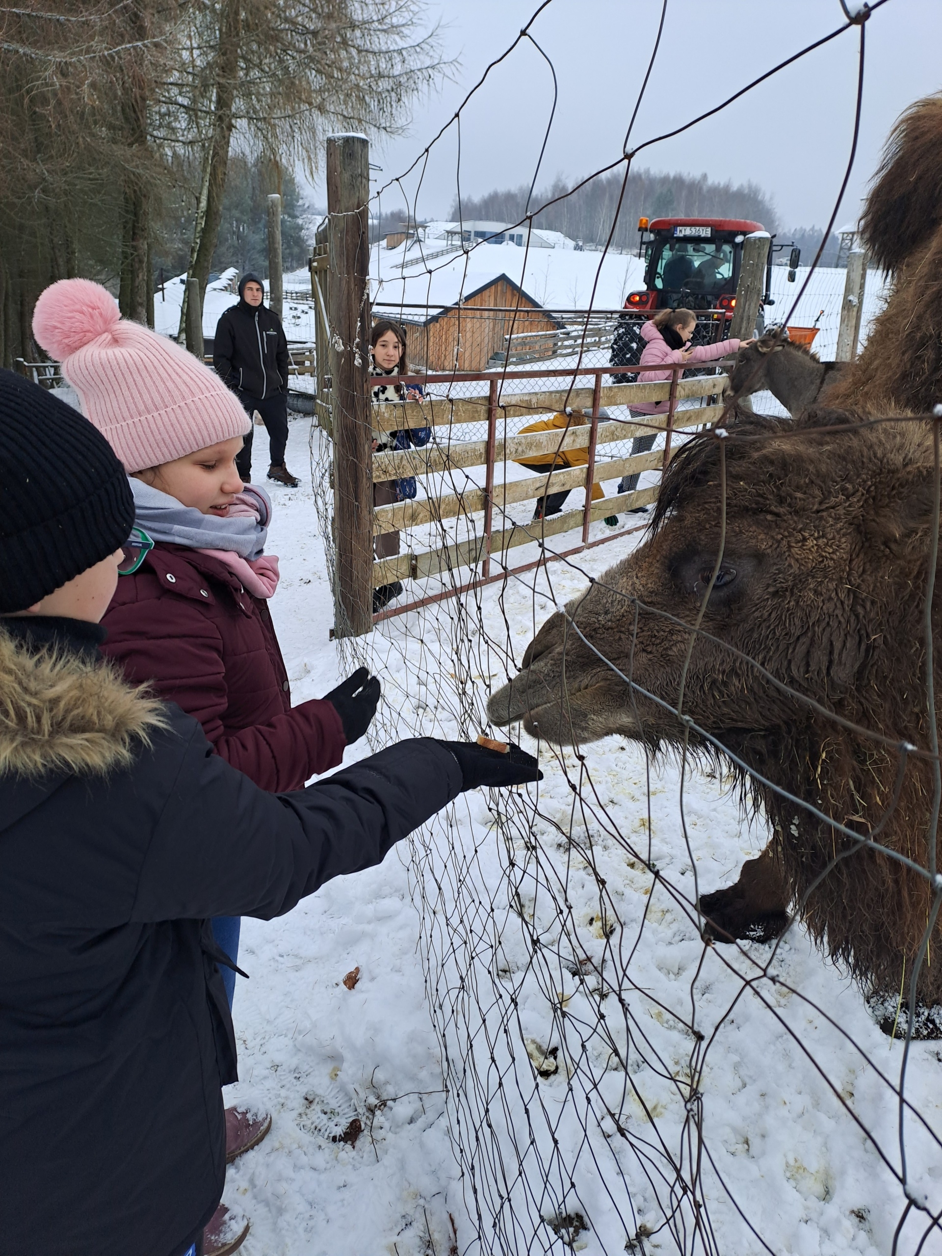 1 grudnia miał miejsce mikołajkowy wyjazd klasy 5b na kulig do Rancza w Pstrągowej. Pstrągowa w tym dniu przywitała wszystkich uczestników zimową pogodą i mnóstwem atrakcji. Podczas przejażdżki saniami podziwialiśmy wspaniałe widoki okolicy, a po powrocie czekały na nas kiełbaski z grilla i warsztaty pieczenia proziaków. Podczas całego pobytu na Ranczu towarzyszyły nam wspaniałe zwierzaki – wielbłąd Bartek, lamy, kozy, daniele i kucyki, które można karmić i głaskać do woli. Taka wyprawa, obcowanie z przyrodą i zwierzętami to supersprawa!