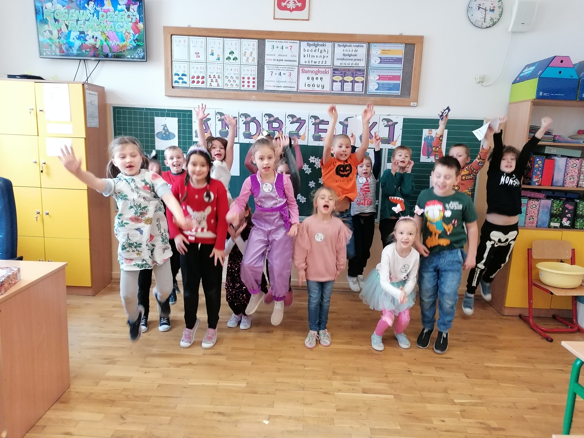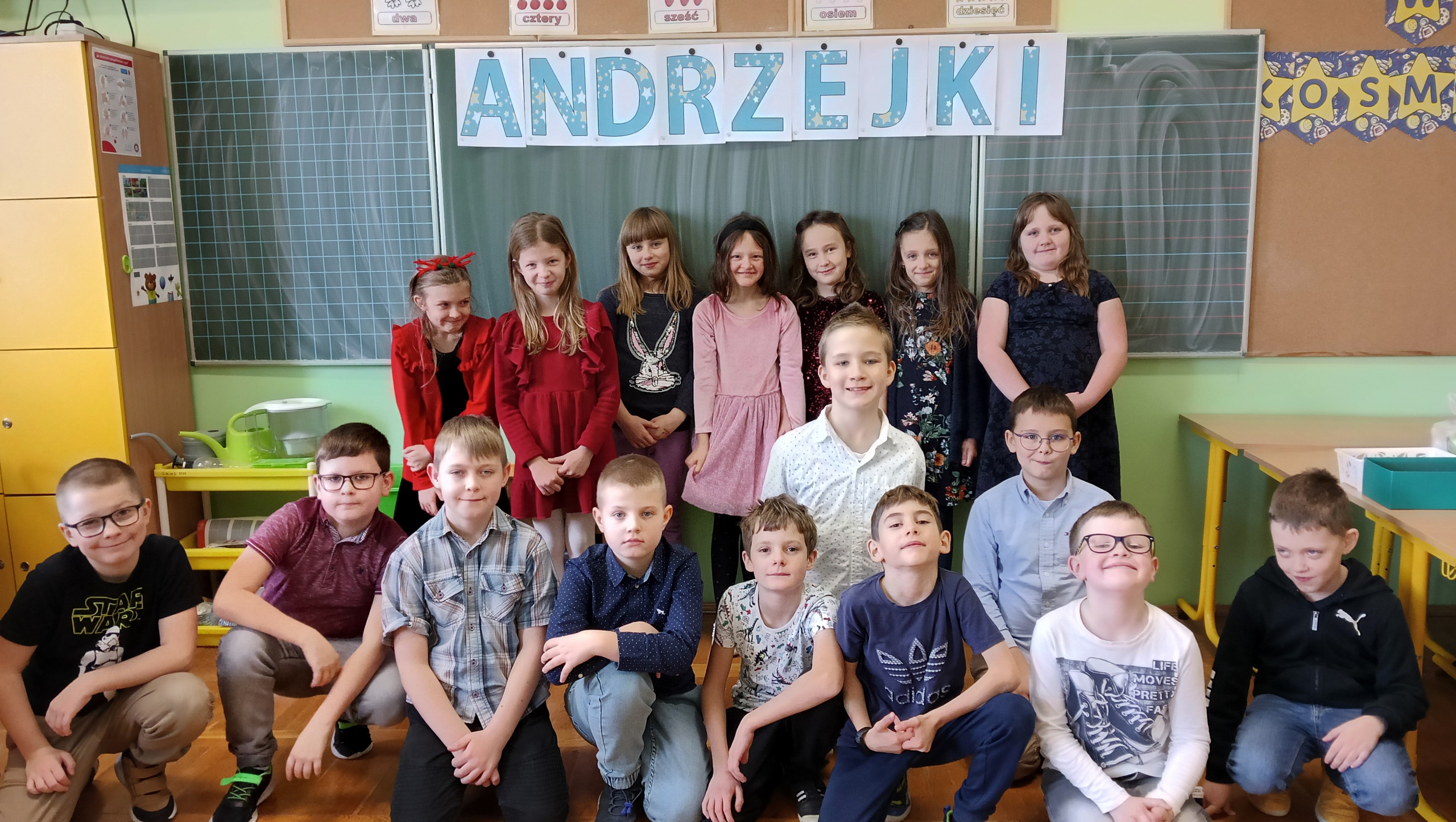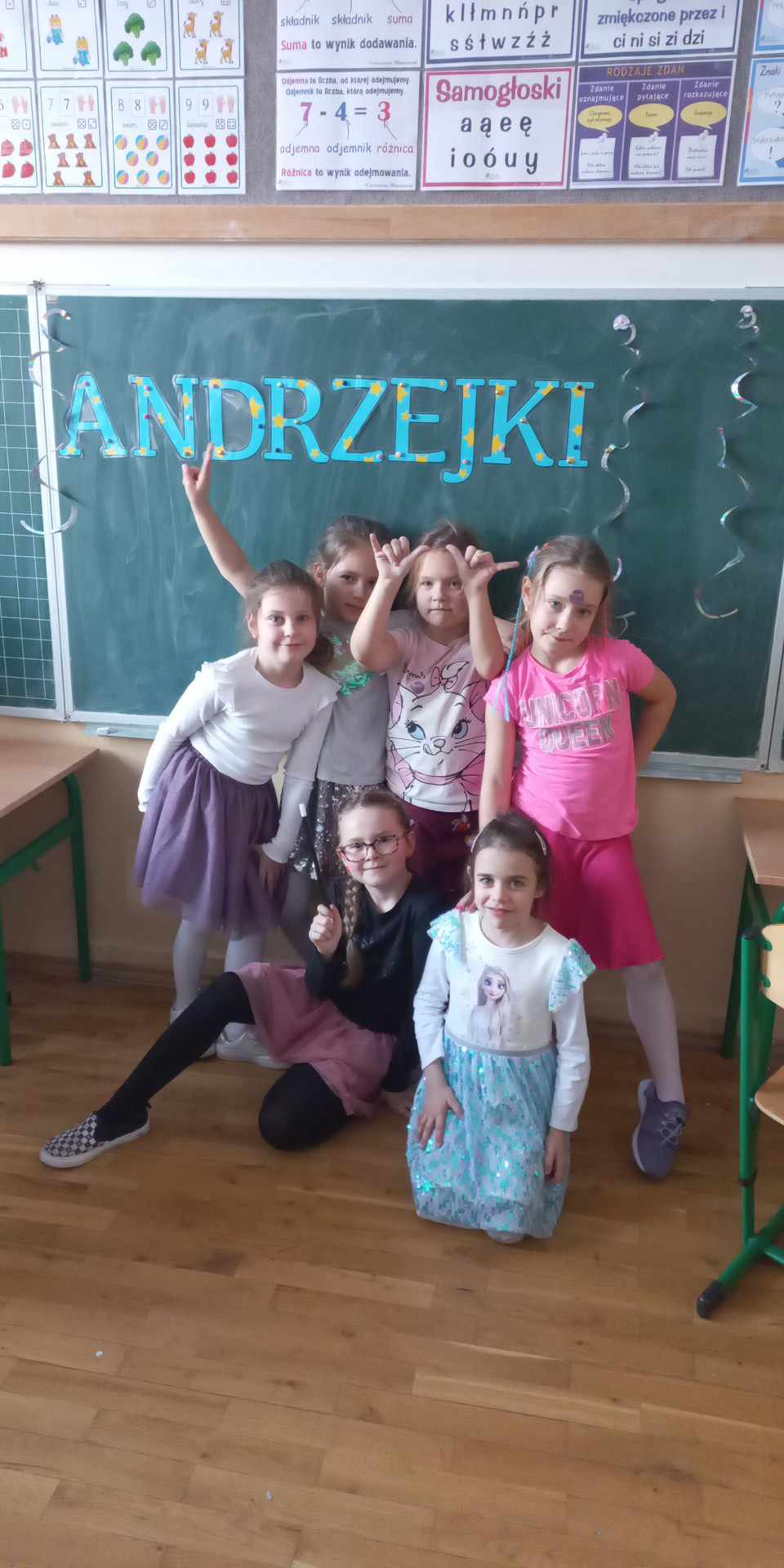 Każda klasa 1-3, wraz z wychowawcami, urządziła własny andrzejkowy bal. Wśród zabaw pojawiły się tradycyjne wróżby: wyścig butów, losowanie bilecików z zawodami, przekłuwanie serca z imionami sympatii, szukanie szczęśliwej liczby itp. Nie zabrakło również szaleństwa przy muzyce oraz zdjęć z rekwizytami przyniesionymi przez uczniów. Uroczystość umilił poczęstunek przygotowany przez rodziców. Spotkania przebiegły w miłej i ciepłej atmosferze. Tego dnia zabawy, radości oraz uśmiechu było co niemiara.