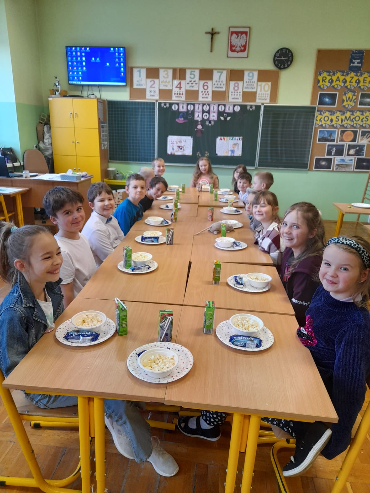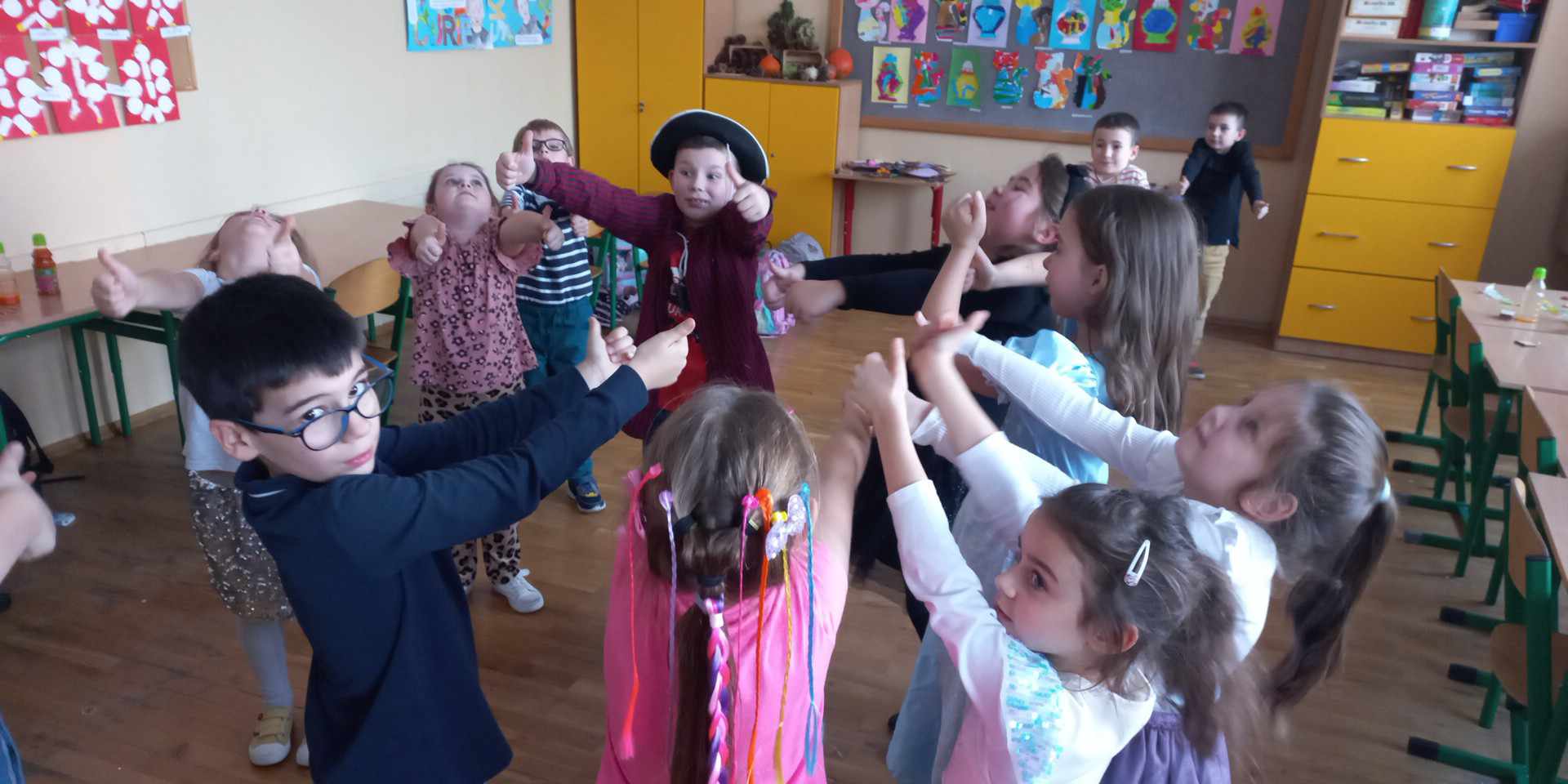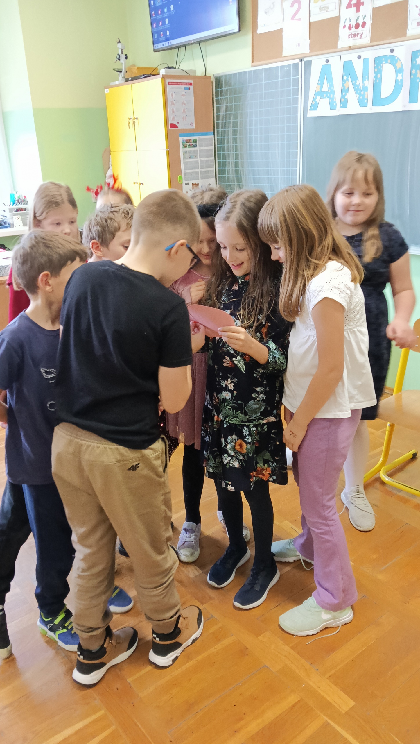 Każda klasa 1-3, wraz z wychowawcami, urządziła własny andrzejkowy bal. Wśród zabaw pojawiły się tradycyjne wróżby: wyścig butów, losowanie bilecików z zawodami, przekłuwanie serca z imionami sympatii, szukanie szczęśliwej liczby itp. Nie zabrakło również szaleństwa przy muzyce oraz zdjęć z rekwizytami przyniesionymi przez uczniów. Uroczystość umilił poczęstunek przygotowany przez rodziców. Spotkania przebiegły w miłej i ciepłej atmosferze. Tego dnia zabawy, radości oraz uśmiechu było co niemiara.