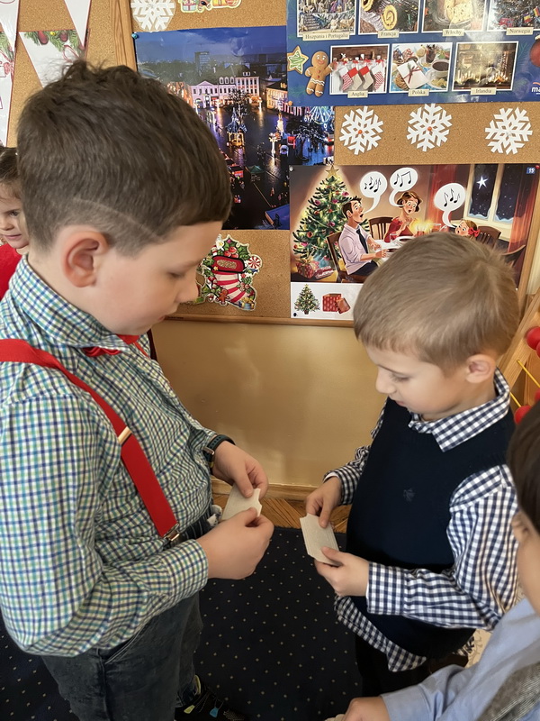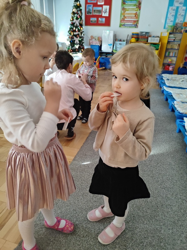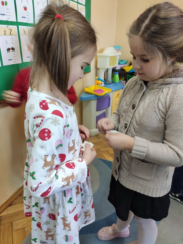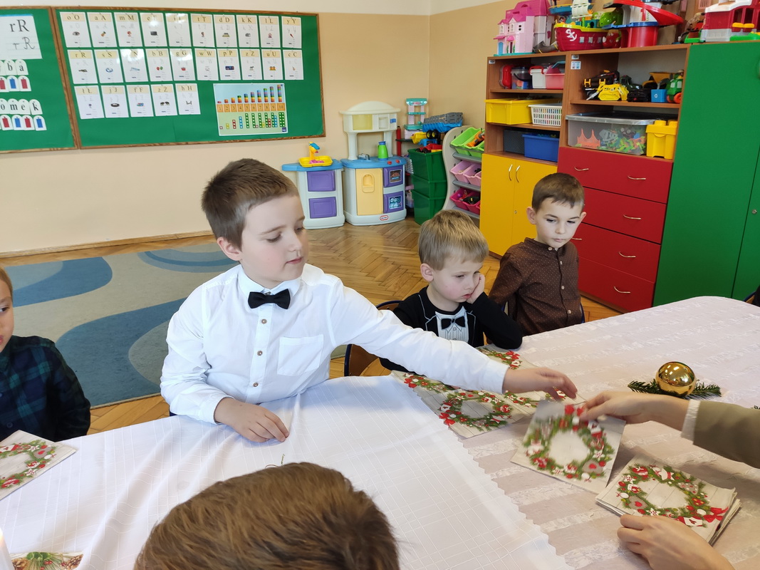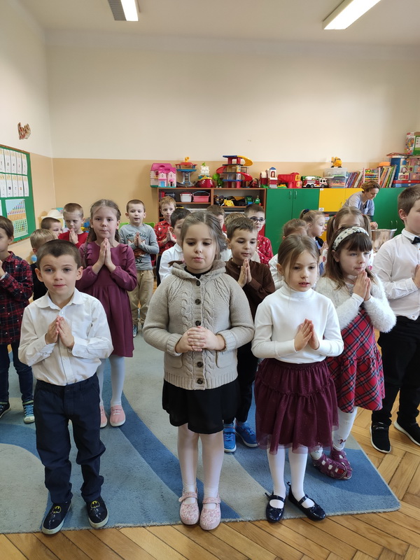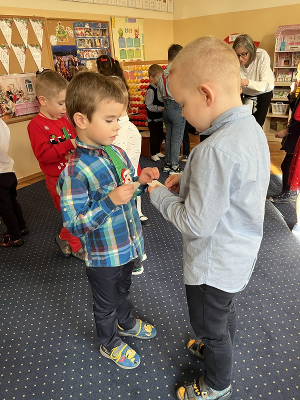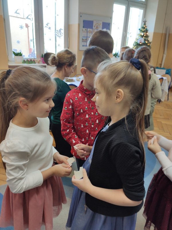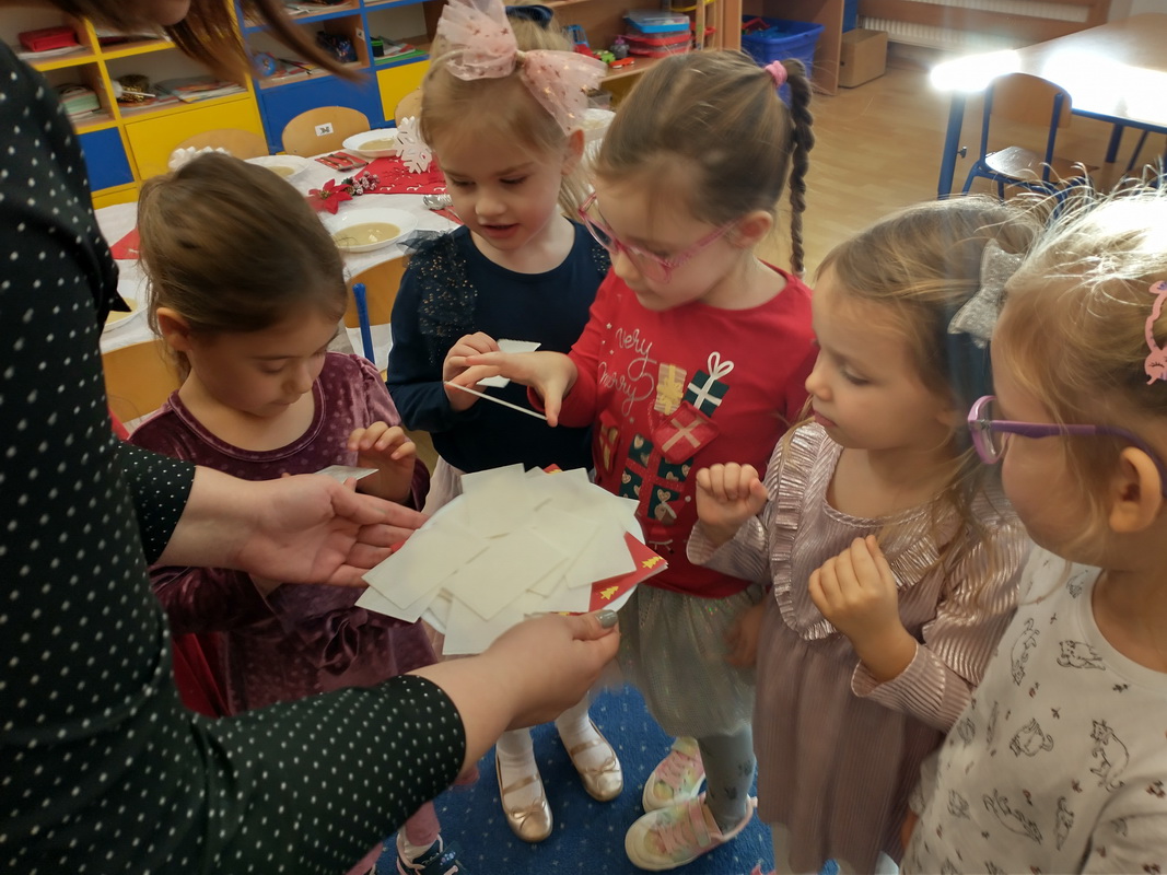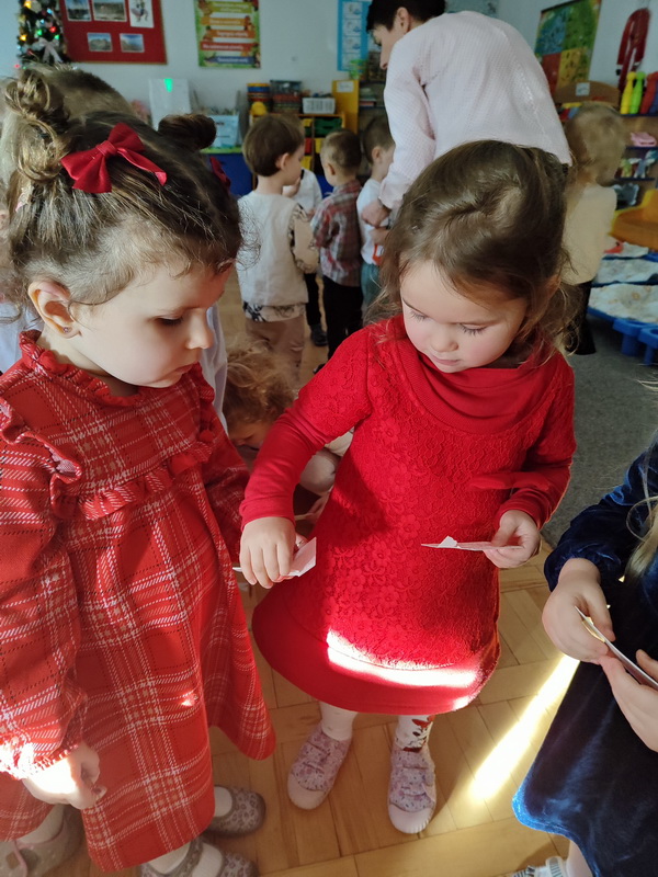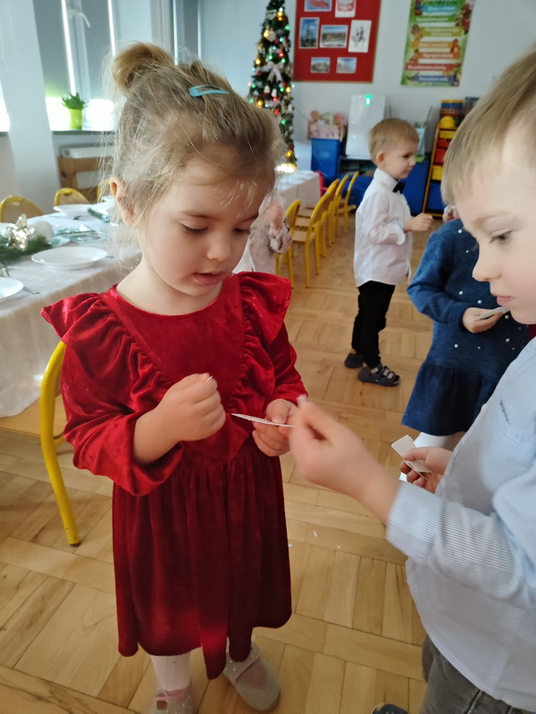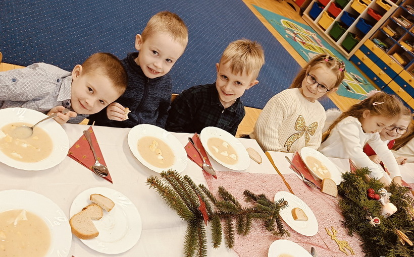 Wigilijne spotkanie przedszkolaków to tradycja pielęgnowana od lat w naszej placówce. Dzieci każdego roku poznają tradycje i zwyczaje świąteczne, aktywnie uczestniczą w przygotowaniach: wykonują ozdoby świąteczne, łańcuchy choinkowe oraz uczą się kolęd i pastorałek. W dzień przedszkolnej wigilii w całym przedszkolu panowała radosna, ożywiona atmosfera. Świąteczne dekoracje oraz dzieci w galowych strojach wprowadzały nastrój oczekiwania na wyjątkowe, niecodzienne wydarzenie.
