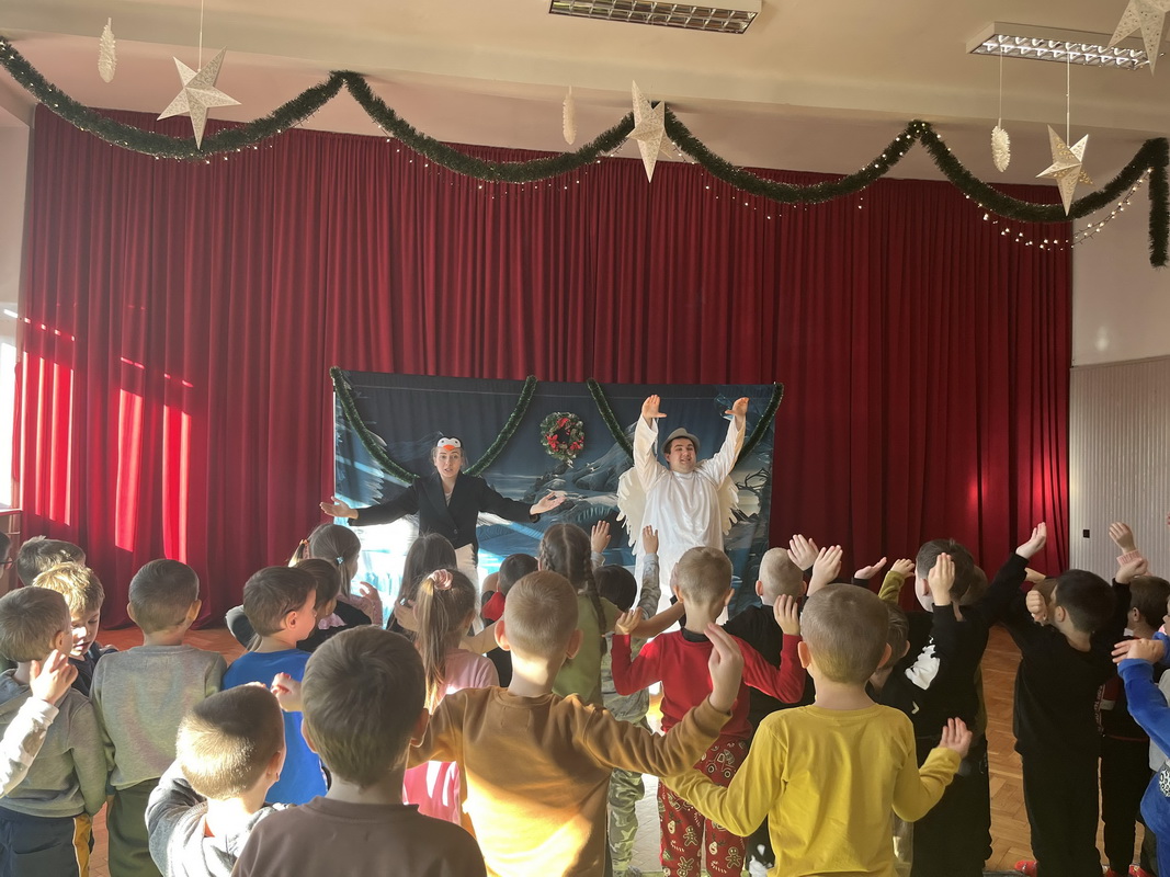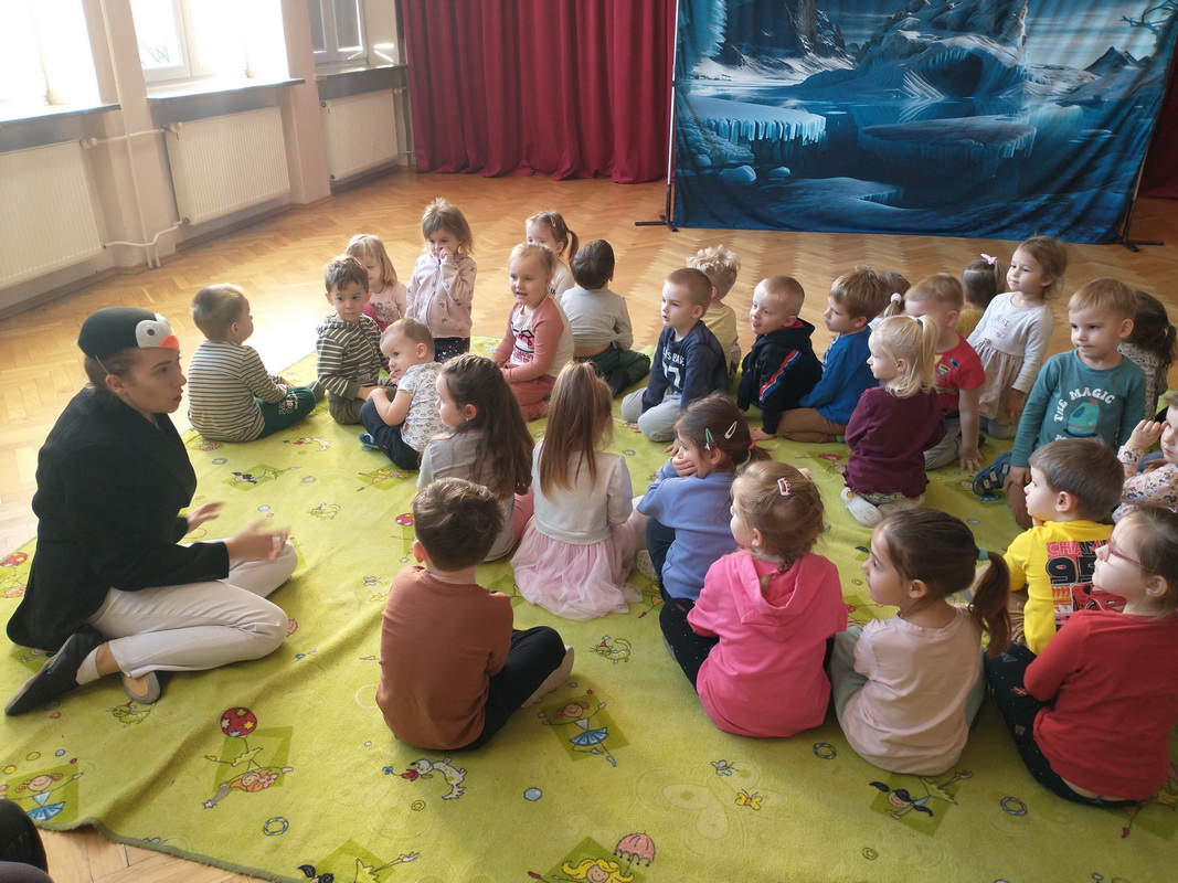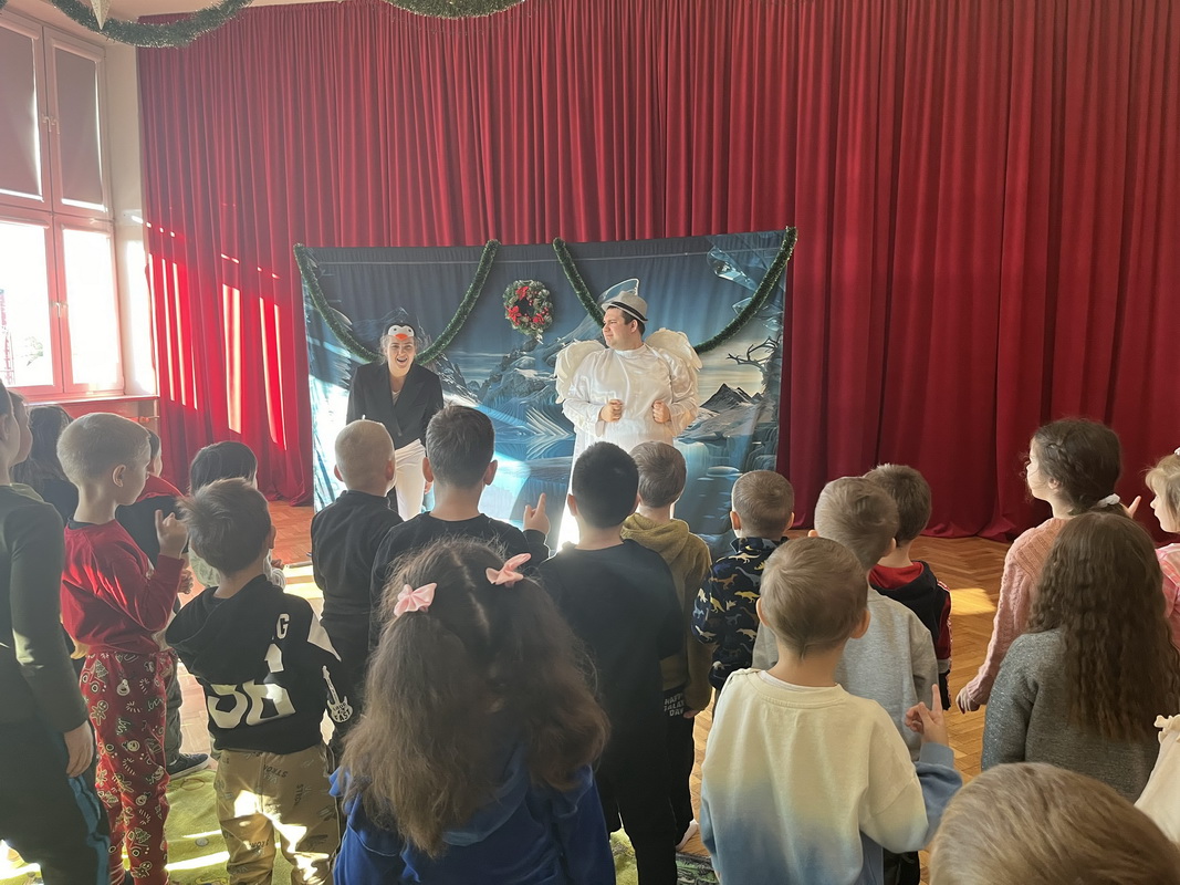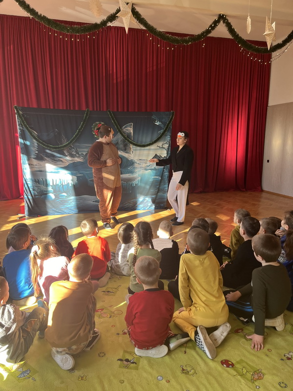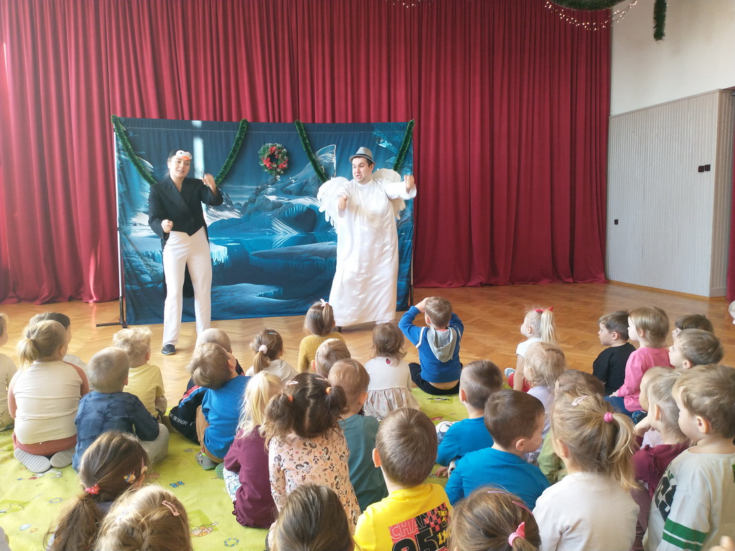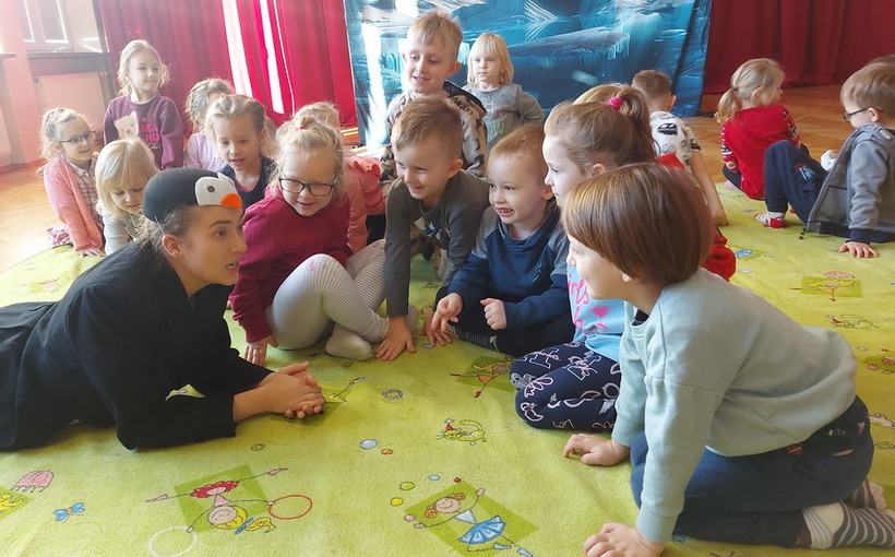 18 grudnia do naszego przedszkola zawitał Teatrzyk „Zielony Melonik”, prezentując spektakl pt. „Mimo wszystko”. Wraz z głównym bohaterem, pingwinkiem Zdzisiem, przenieśliśmy się na chwilę do lodowej krainy. Bohater nie miał pojęcia, co to znaczy „być grzecznym” i nie wiedział, czy św. Mikołaj na pewno go odwiedzi. Pingwinek dość nieoczekiwanie stanął przed dylematem, gdy jego przyjaciółka potrzebowała pomocy. Podjął on decyzję, by samodzielnie odnaleźć swoją koleżankę, pomimo czyhających niebezpieczeństw. Podczas spektaklu dzieci dowiedziały się, czym jest grzeczność, prawdziwa przyjaźń oraz jak odróżnić dobro od zła. Aktorzy umilili przedszkolakom dzień pięknym występem, który dzieci oglądały z wielkim zaciekawieniem.