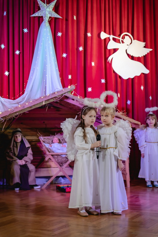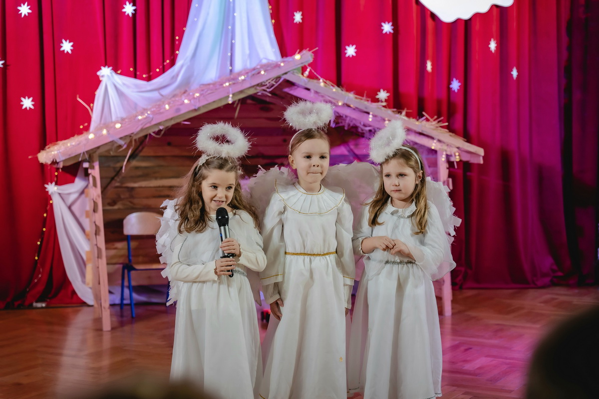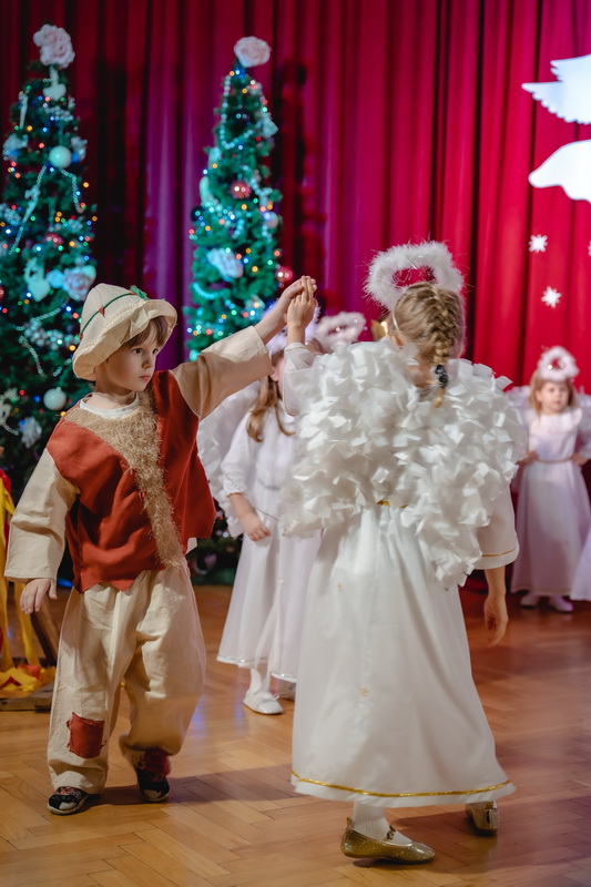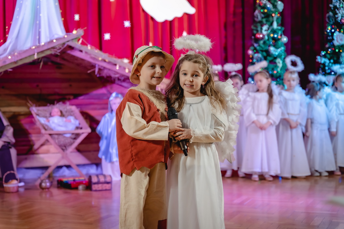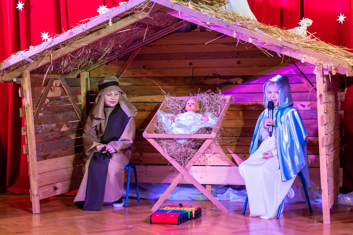 15 stycznia odbyły się w naszym przedszkolu jasełka, które przygotowała grupa Słoneczka. Na przedstawienie przybyli licznie zaproszeni goście, których serdecznie przywitała pani dyrektor. Dzieci z dużym zaangażowaniem odgrywały role aniołków, pastuszków, królów i świętej rodziny. Historia o narodzeniu Dzieciątka Jezus przeplatana była kolędami, pastorałkami i radosnymi tańcami. Piękna scenografia nadała temu wyjątkowemu spotkaniu uroczysty i nastrojowy klimat. Rodzice gorącymi brawami nagrodzili małych wykonawców. Po przedstawieniu były jeszcze pamiątkowe zdjęcia w pięknych strojach i słodka niespodzianka. Spotkanie zakończyły życzenia, które wszystkim przybyłym złożyła pani dyrektor. Tego wieczoru jeszcze raz wszyscy poczuli tę niepowtarzalną atmosferę świąt Bożego Narodzenia.