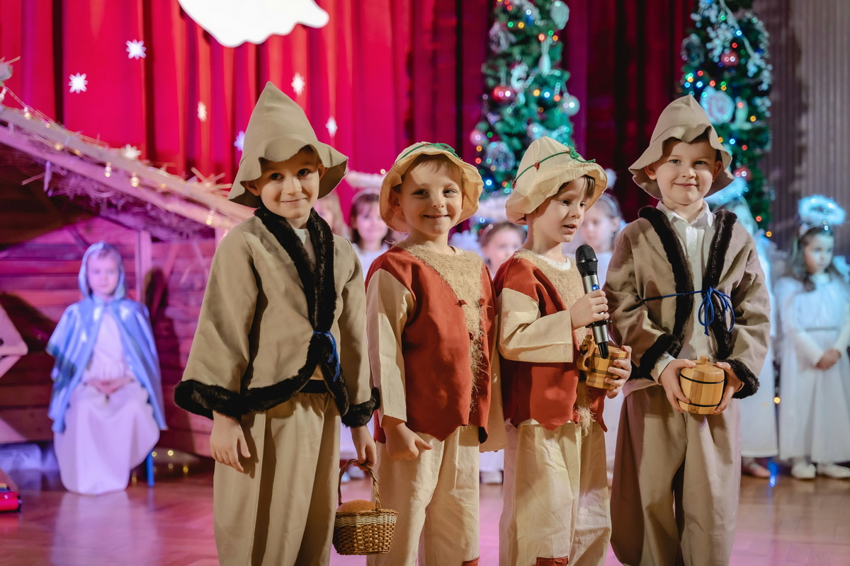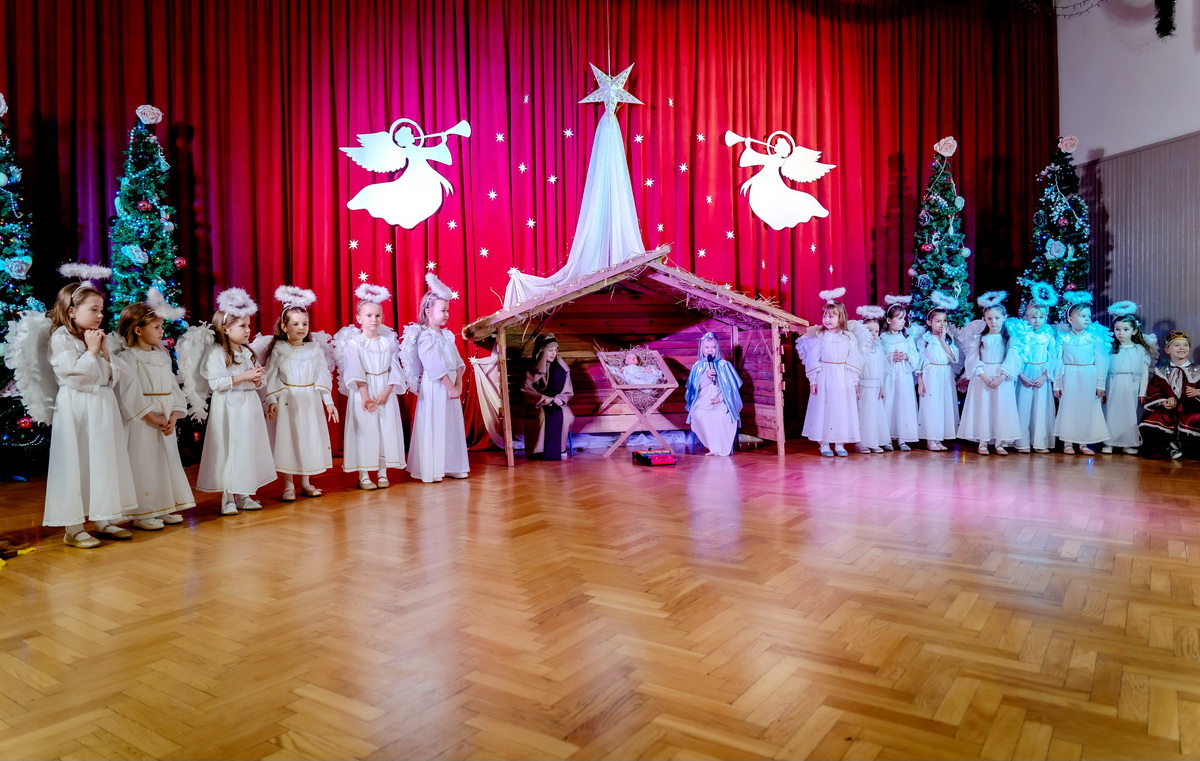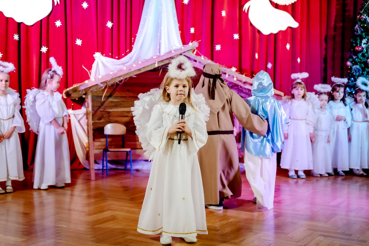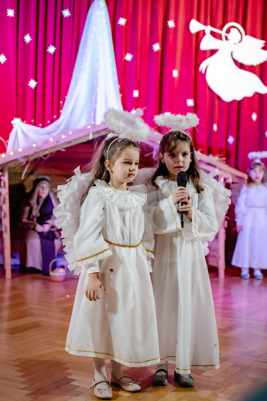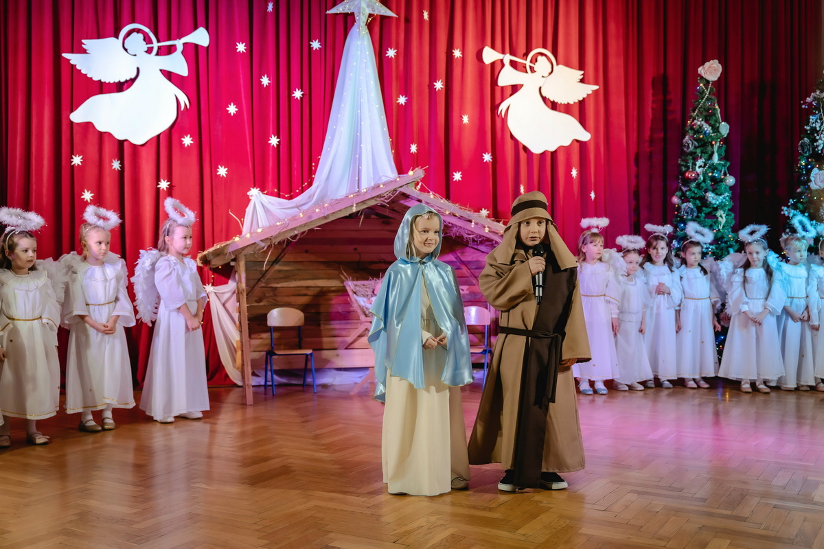 15 stycznia odbyły się w naszym przedszkolu jasełka, które przygotowała grupa Słoneczka. Na przedstawienie przybyli licznie zaproszeni goście, których serdecznie przywitała pani dyrektor. Dzieci z dużym zaangażowaniem odgrywały role aniołków, pastuszków, królów i świętej rodziny. Historia o narodzeniu Dzieciątka Jezus przeplatana była kolędami, pastorałkami i radosnymi tańcami. Piękna scenografia nadała temu wyjątkowemu spotkaniu uroczysty i nastrojowy klimat. Rodzice gorącymi brawami nagrodzili małych wykonawców. Po przedstawieniu były jeszcze pamiątkowe zdjęcia w pięknych strojach i słodka niespodzianka. Spotkanie zakończyły życzenia, które wszystkim przybyłym złożyła pani dyrektor. Tego wieczoru jeszcze raz wszyscy poczuli tę niepowtarzalną atmosferę świąt Bożego Narodzenia.