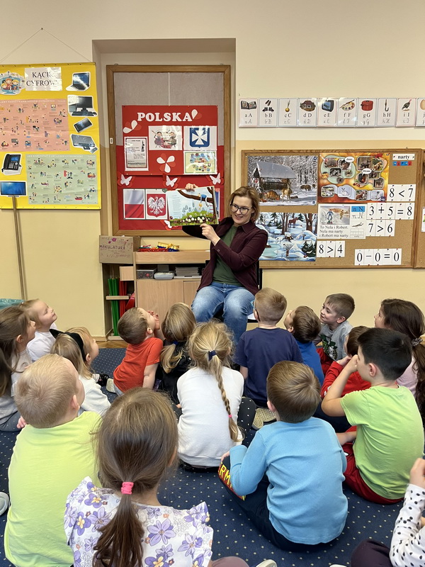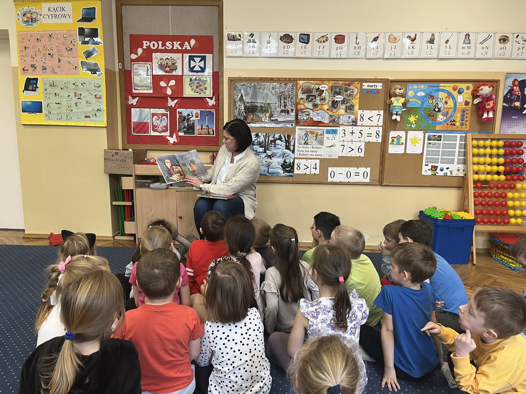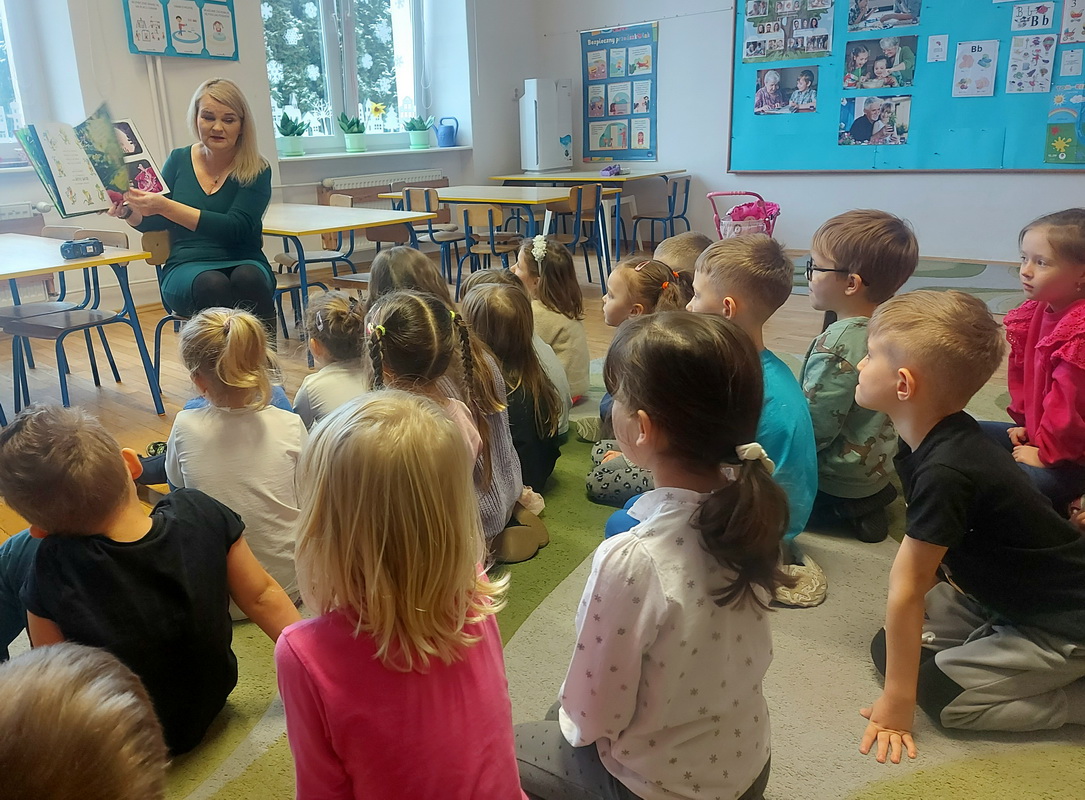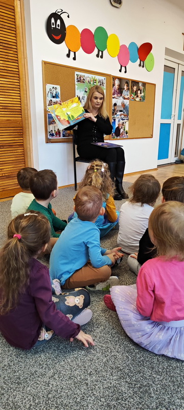 W ubiegłym tygodniu, w ramach kampanii społecznej “Cała Polska Czyta Dzieciom”, nasze przedszkole odwiedziła Pani Katarzyna Baran z Wojewódzkiej i Miejskiej Biblioteki Publicznej nr 12 w Rzeszowie. Dzieci z wielką uwagą i ciekawością wysłuchały bajki pt. ”Gekon, który odkrył echo”. Pani z biblioteki zachęciła także naszych przedszkolaków do wypożyczania książek i czytania ich razem z rodzicami. Jak wiadomo, głośne czytanie dzieciom stymuluje rozwój mowy, wzbogacając zarówno czynny, jak i bierny zakres słów, a bajki pomagają lepiej zrozumieć otaczającą je rzeczywistość. Dlatego warto czytać dzieciom, codziennie. Dziękujemy p. Kasi, Rodzicom i p. Dorocie za włączenie się do naszej kampanii.