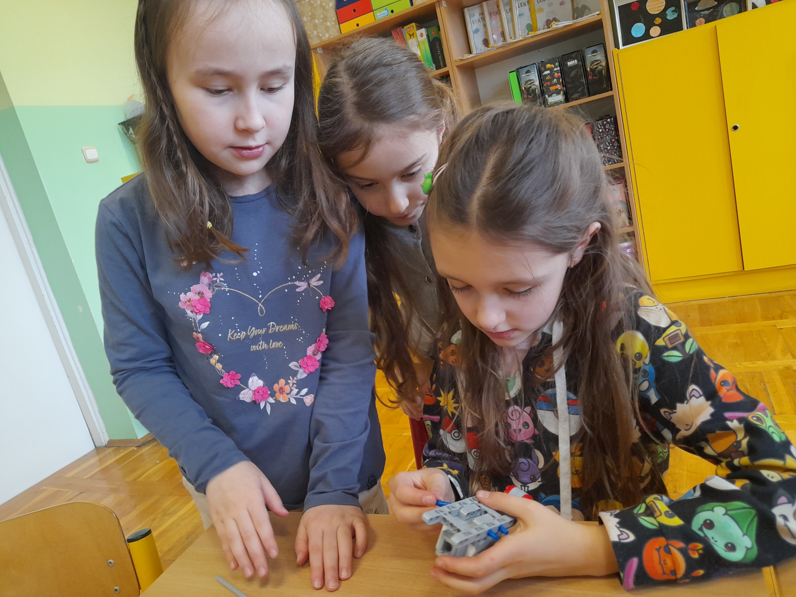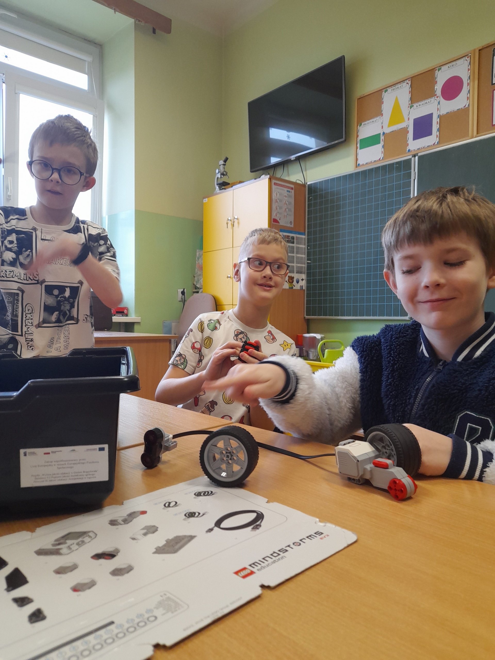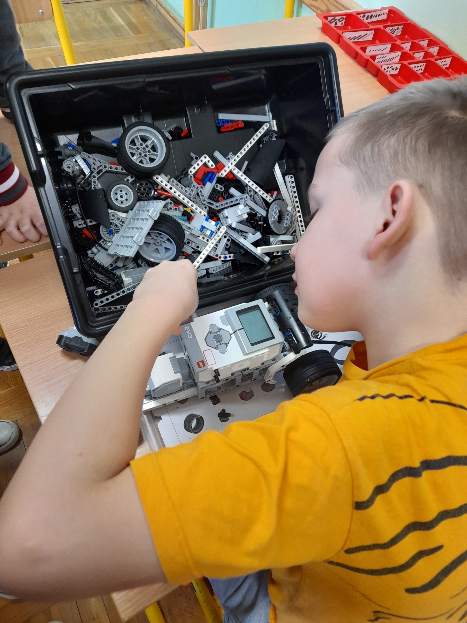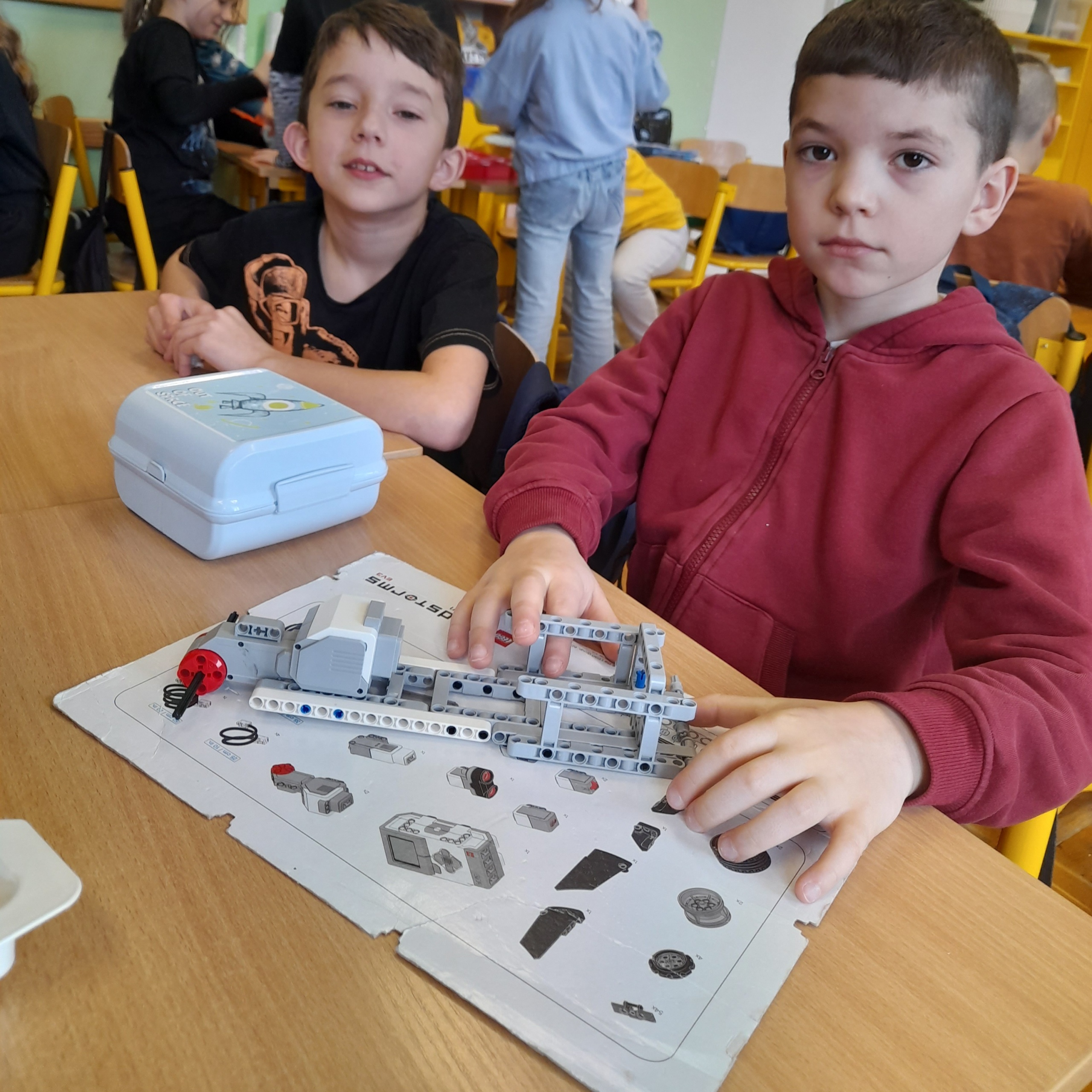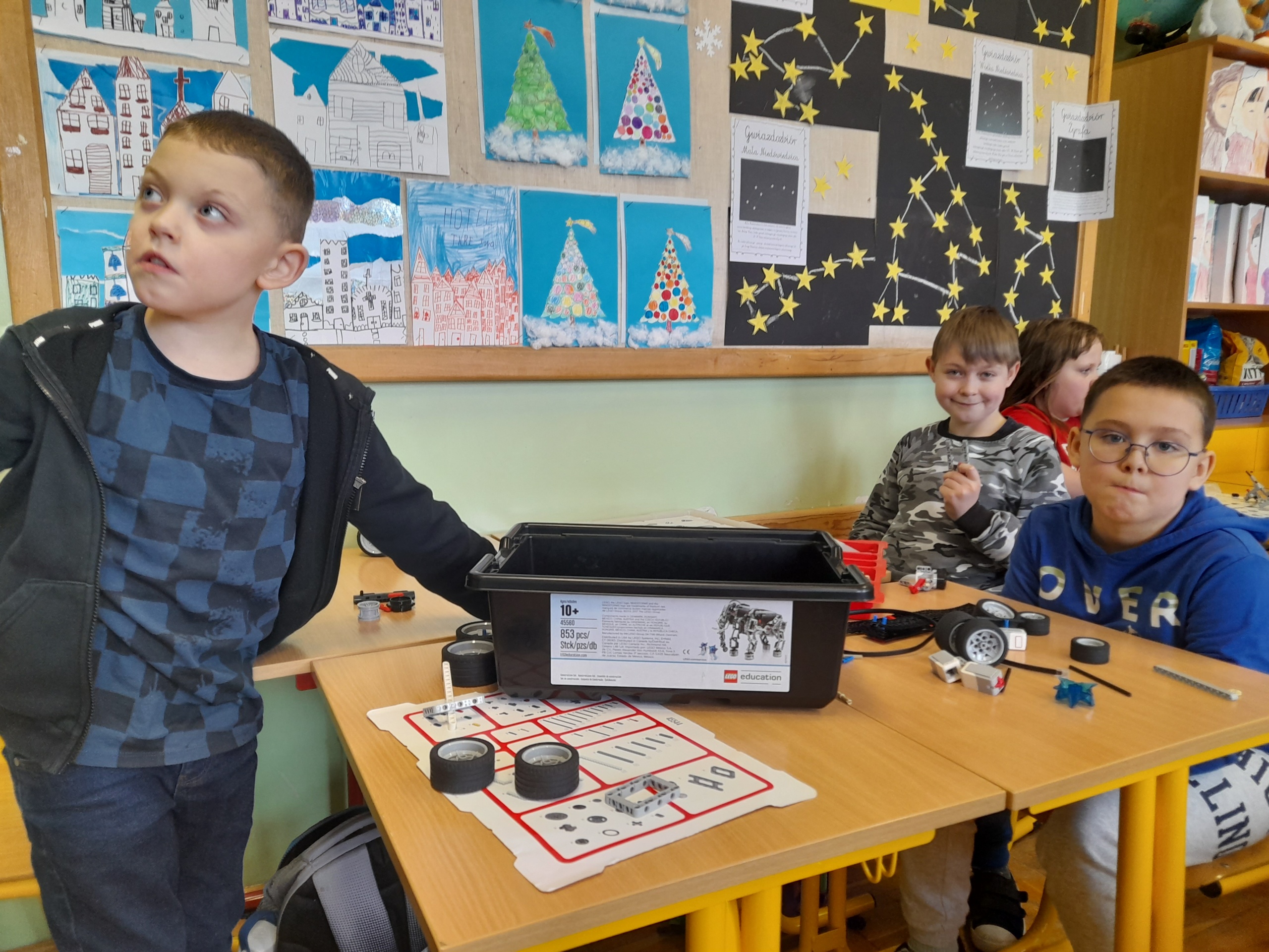 W dniach 13 i 14 lutego klasy drugie wzięły udział w zajęciach pt.: “Algorytm przyszłości – robotyka i programowanie dla szkół podstawowych”, który jest realizowany przez Stowarzyszenie Naukowe Przestrzeń Społeczna i Środowisko, w ramach programu Ministerstwa Edukacji i Nauki – “Społeczna odpowiedzialność Nauki II”. Zajęcia poprowadził trener – wykładowca akademicki dr inż. Tomasz Warzocha. Uczniowie z wykorzystaniem klocków LEGO Mindstorms zbudowali i zaprogramowali własne roboty, ucząc się kodowania poprzez zabawę.
