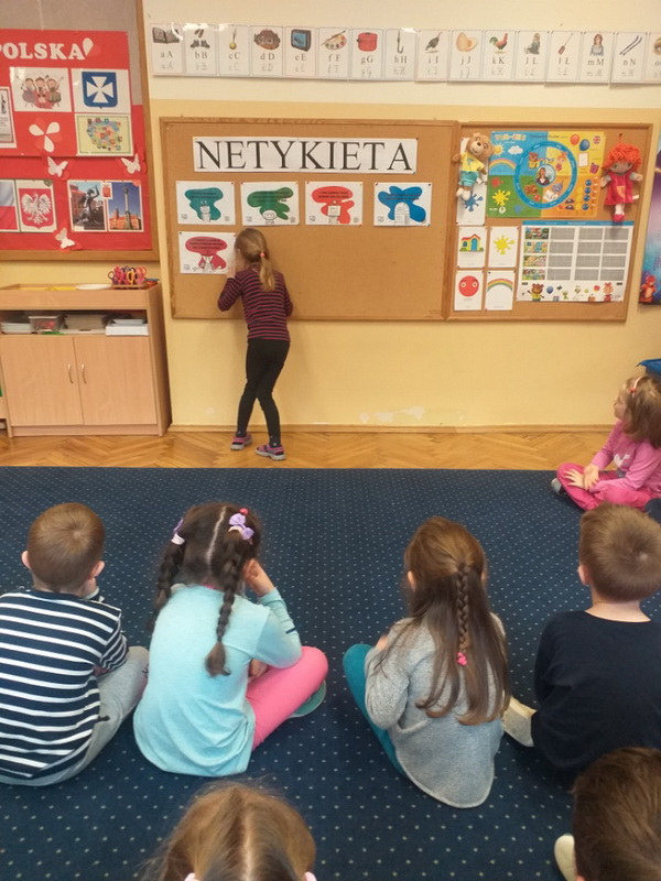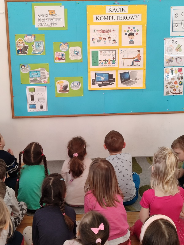 W lutym najstarsze grupy przedszkolne obchodziły w przedszkolu Dzień Bezpiecznego Internetu. W ramach wspomnianych obchodów dzieci zostały zapoznane z podstawowymi zasadami bezpiecznego korzystania z sieci. Przedszkolaki obejrzały filmiki edukacyjne, które stały się pretekstem do rozmowy na temat zagrożeń czyhających w Internecie. Wypowiedzi dzieci w tym temacie były bardzo rzeczowe, treściwe i przemyślane. Widać było, że wirtualny świat nie jest dla nich czymś obcym. Bez problemu potrafiły wymienić nazwy różnych stron internetowych, gier oraz aplikacji. Nie miały także kłopotu z nazwaniem urządzeń cyfrowych łączących się z Internetem.