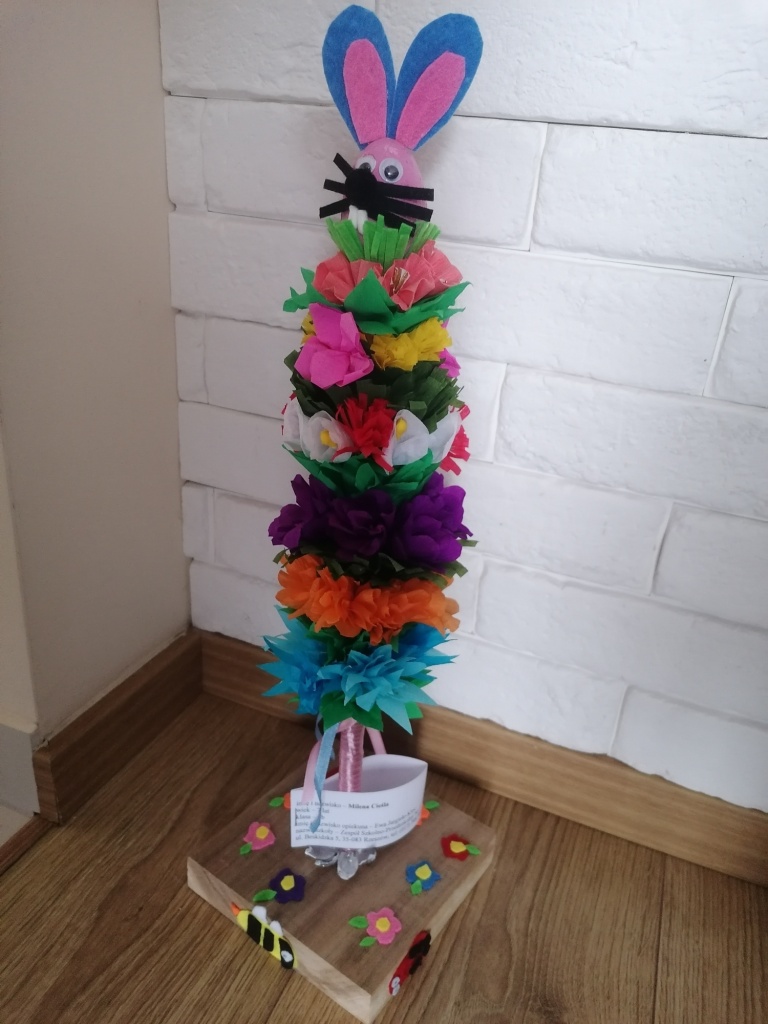 Milena Cieśla z kl. 1b otrzymała wyróżnienie w Międzyszkolnym Konkursie Plastycznym „Palma Wielkanocna 2024”, organizowanym przez Zespół Szkolno-Przedszkolny nr 6 w Rzeszowie. Celem konkursu było pogłębienie wiedzy na temat symboliki i znaczenia palmy w obrzędowości ludowej oraz zainteresowanie kulturą i tradycjami regionu. Serdecznie gratulujemy i życzymy dalszych sukcesów.