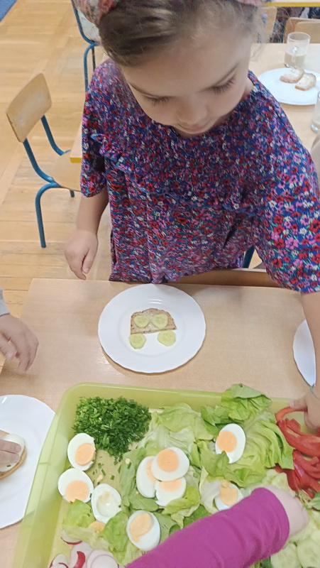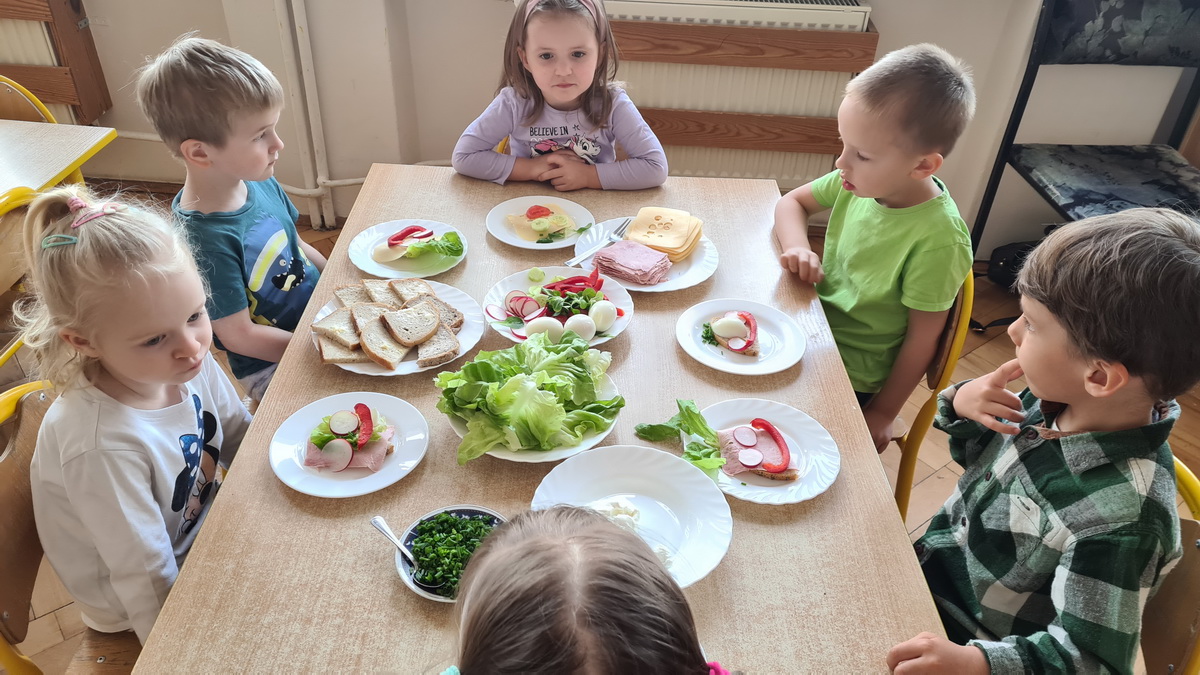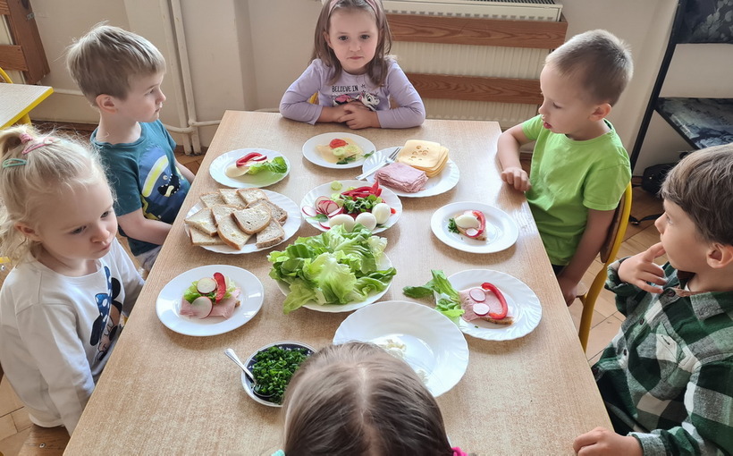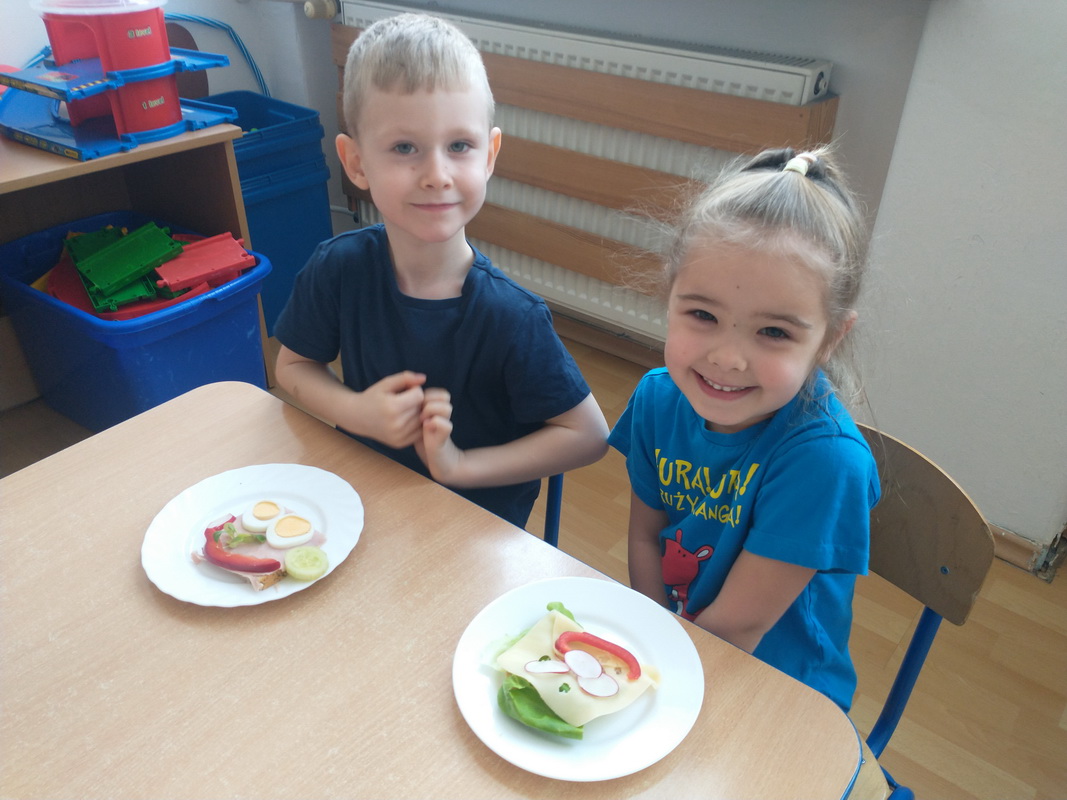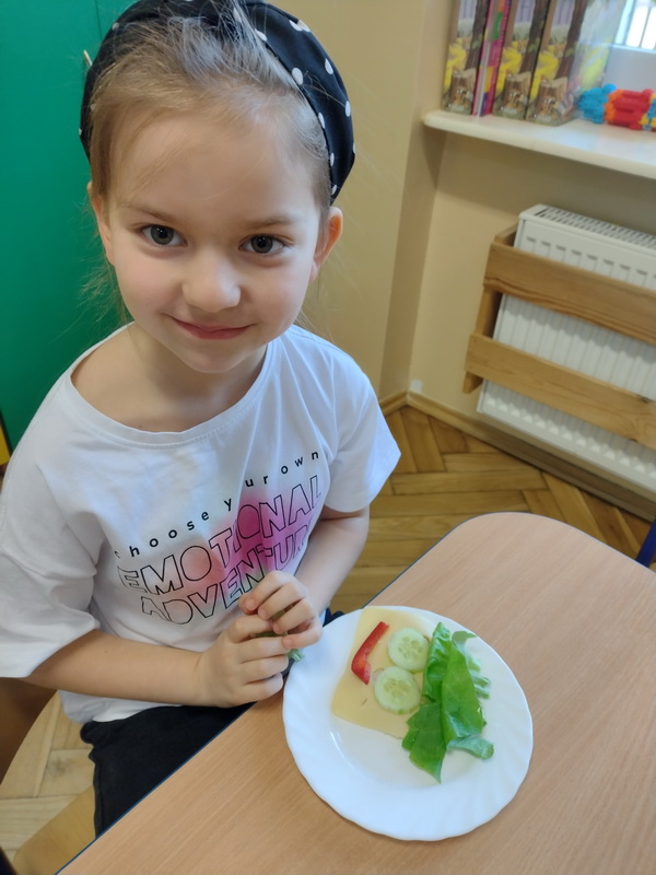 W kolejnych dniach odbyły się zabawy badawcze i eksperymenty związane z wodą i jej rolą w życiu człowieka, a także pogadanki i rozmowy o higienie osobistej czy też o racjonalnym odżywaniu z wykorzystaniem piramidy zdrowia. Śniadanie w formie szwedzkiego stołu sprawiło przedszkolakom najwięcej przyjemności. Kanapki sporządzone według własnego pomysłu smakowały im najlepiej.