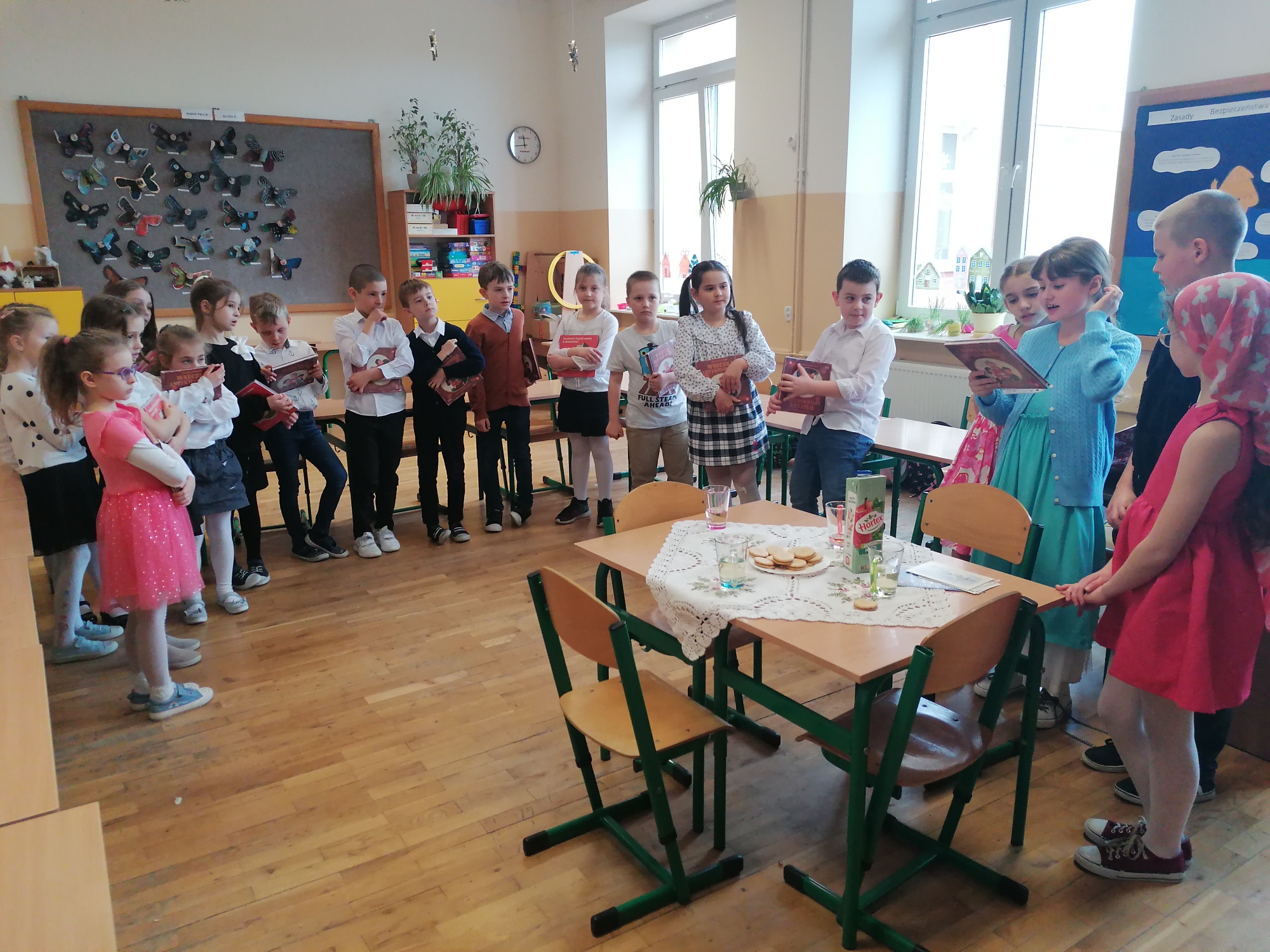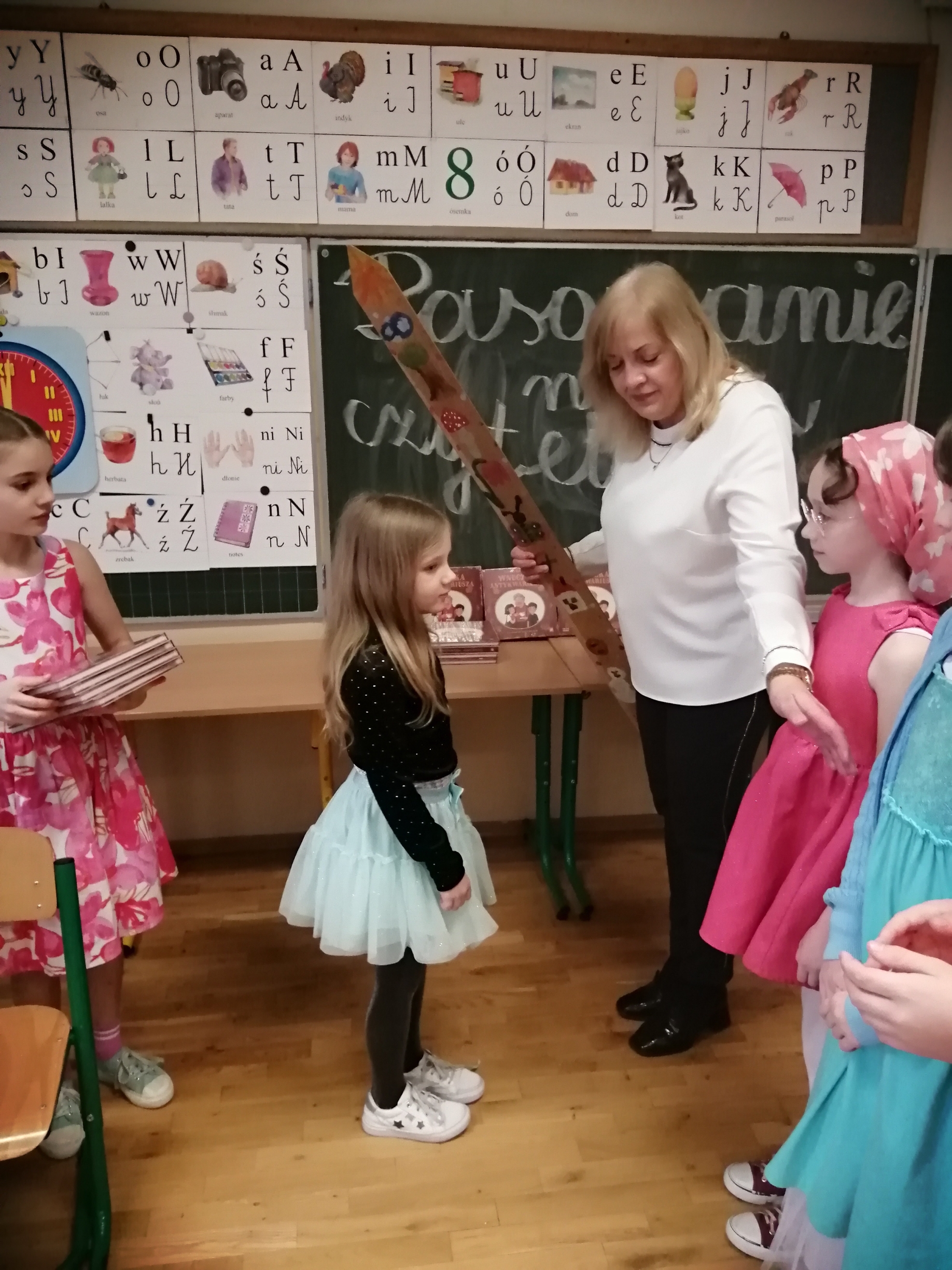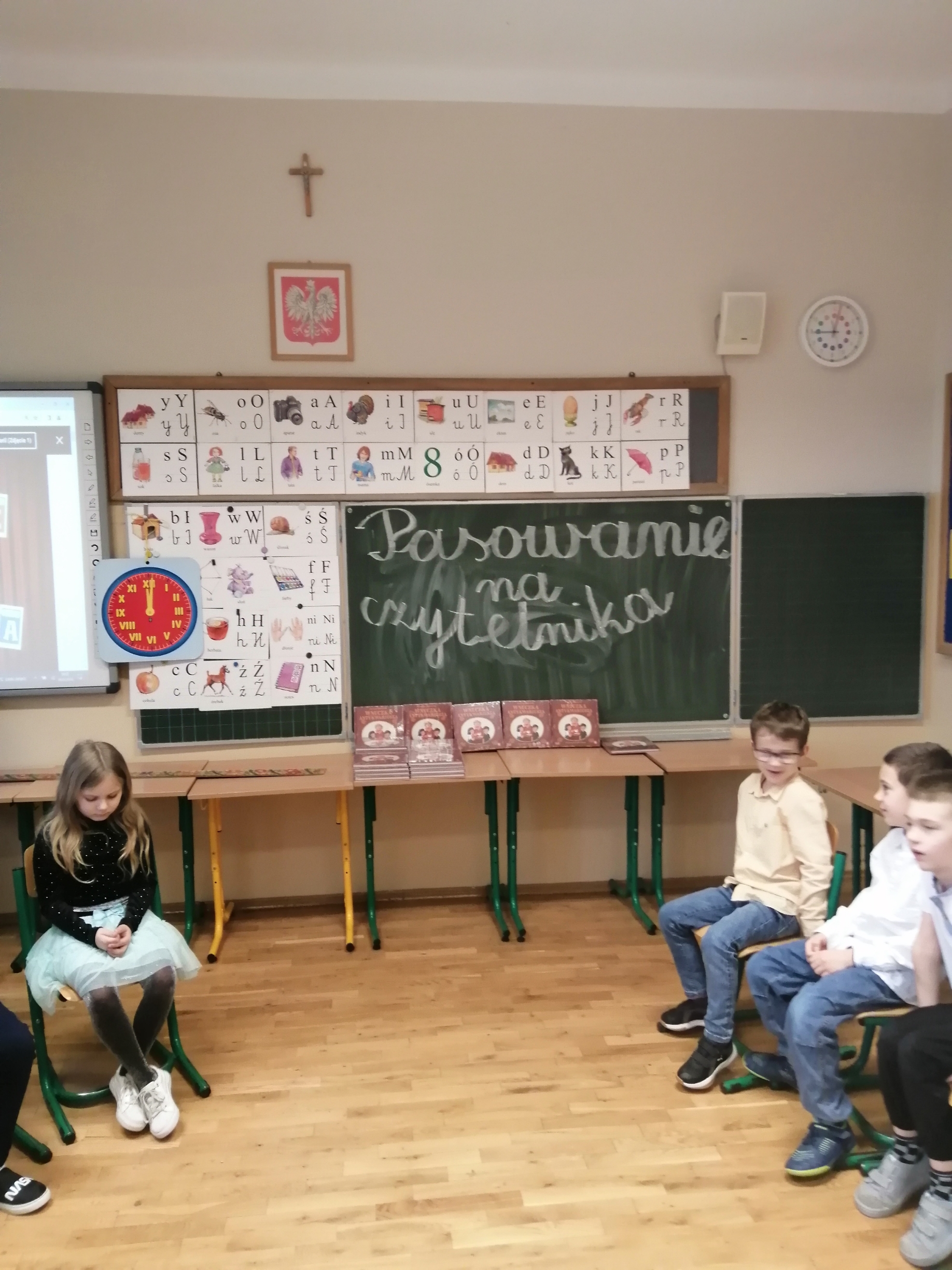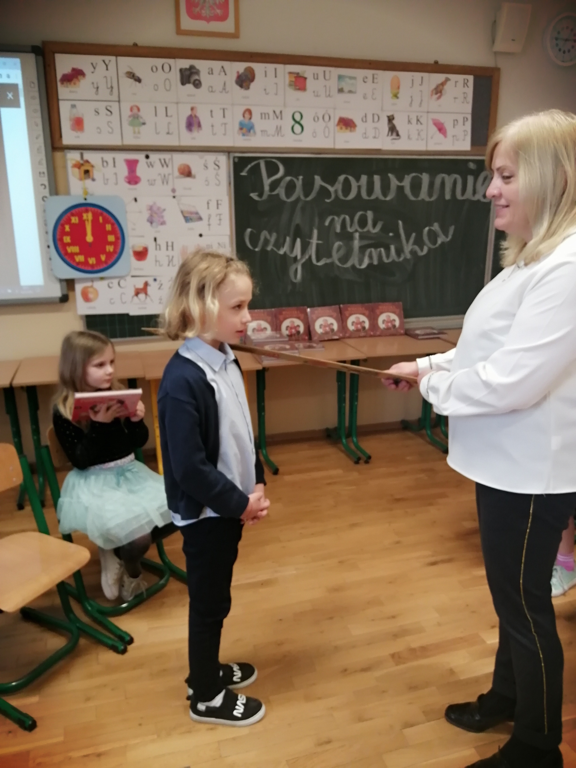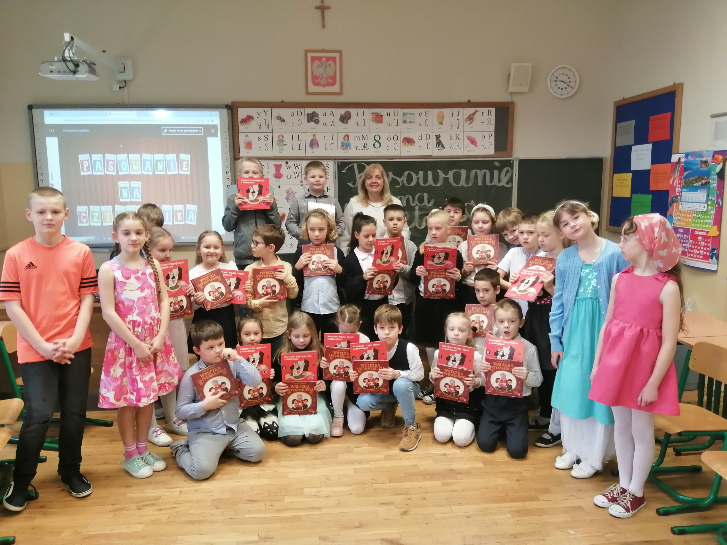 W tym roku szkolnym uroczystość ta odbyła się w klasach 1a, 1b i 1c w marcu. Pani Dorota Czernik, wraz z uczniami kl. 4a, przygotowała ciekawy program dla dzieci klas pierwszych, którego głównym celem było przyjęcie ich w poczet czytelników biblioteki szkolnej oraz pokazanie, że biblioteka jest miejscem radosnym i bezpiecznym, gdzie dzieci będą zawsze mile widziane. Centralnym punktem spotkania było ślubowanie i pasowanie na czytelników. Na pamiątkę wydarzenia, uczniowie dostali książeczki pt. „Wnuczka antykwariusza”.