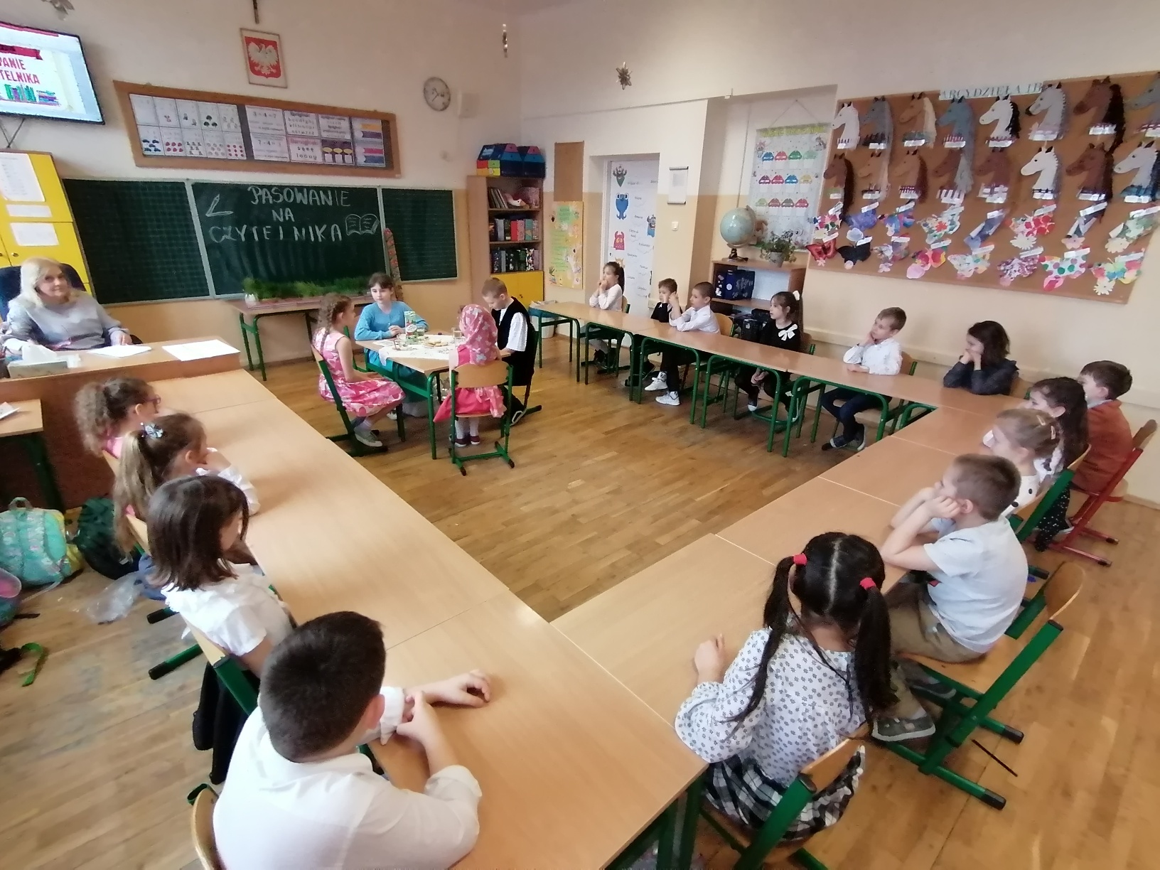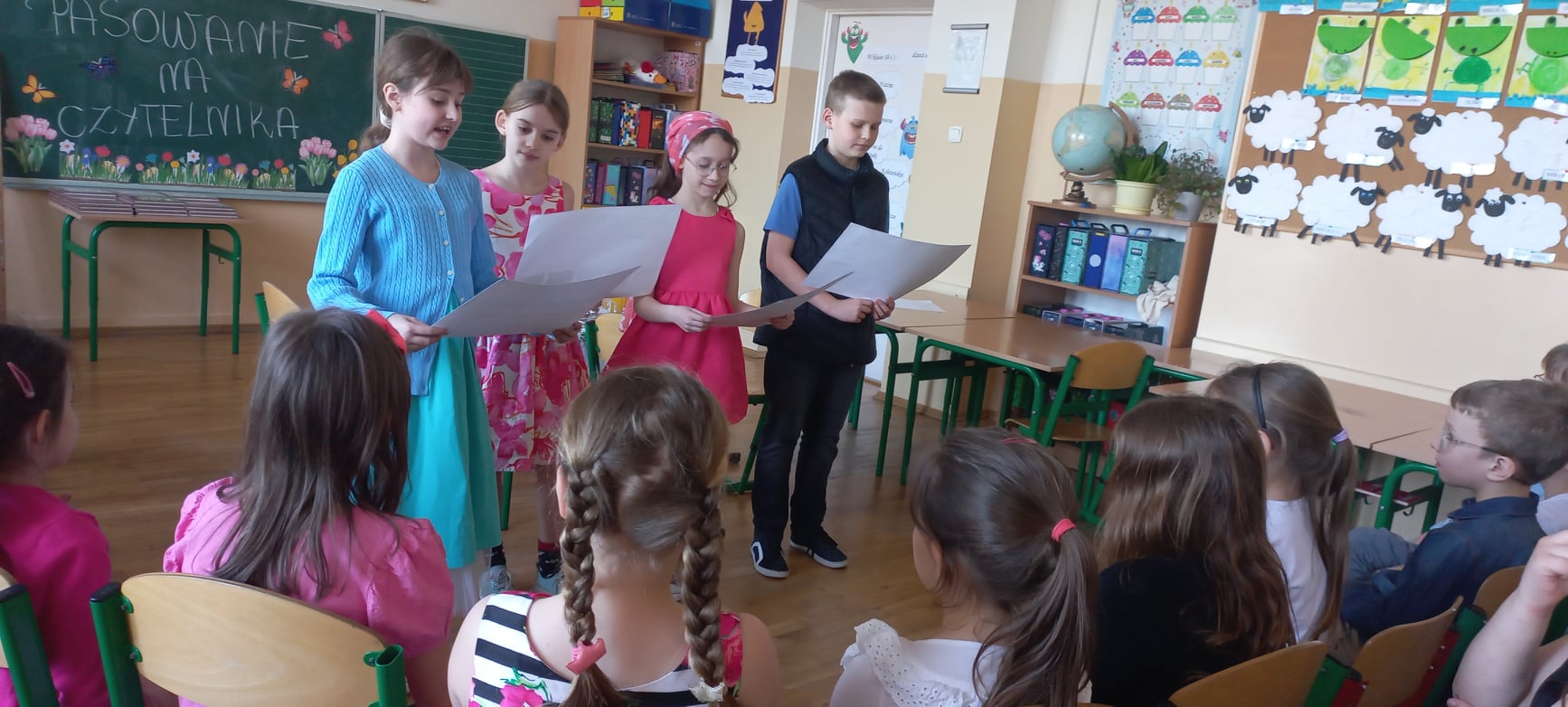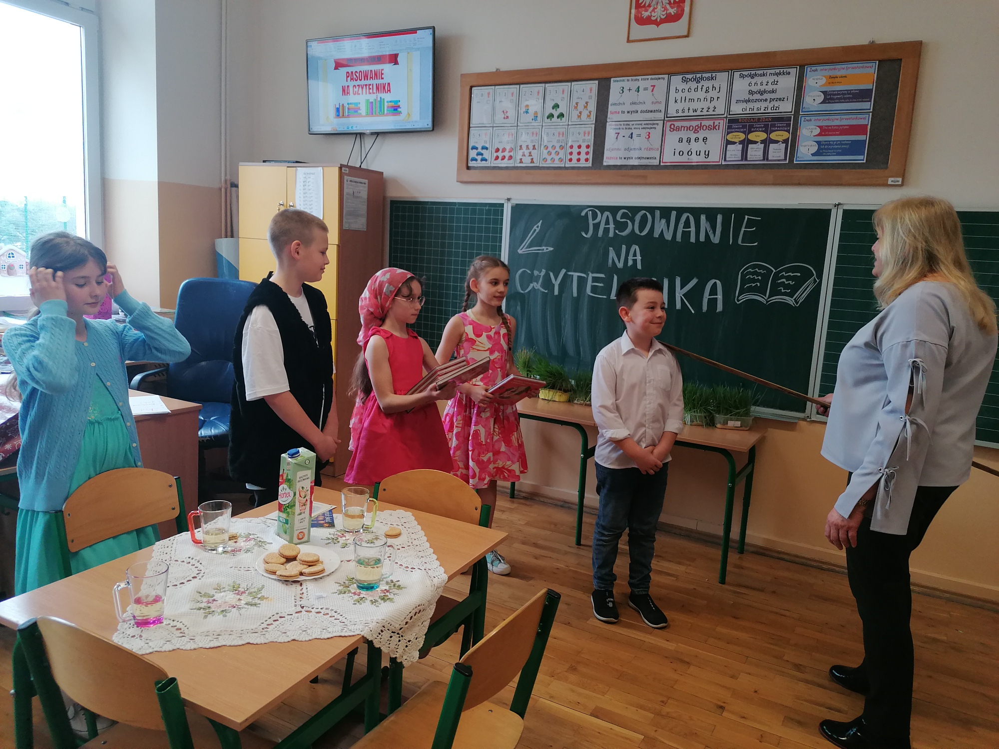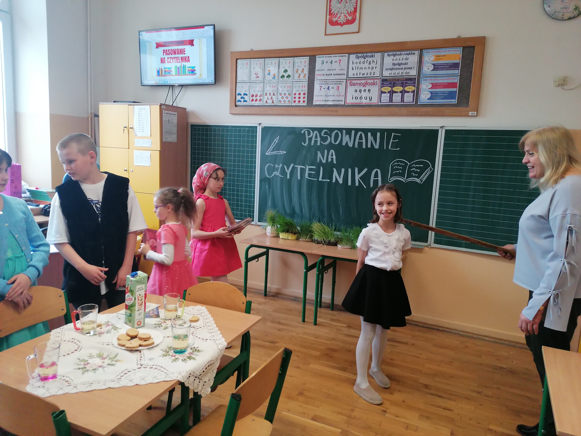 W naszej szkole uroczystość pasowania uczniów klas pierwszych na czytelników biblioteki weszła już na stałe do kalendarza wydarzeń. Odbywa się ona po pierwszym semestrze, kiedy to uczniowie znają już cały alfabet i potrafią samodzielnie czytać książki.