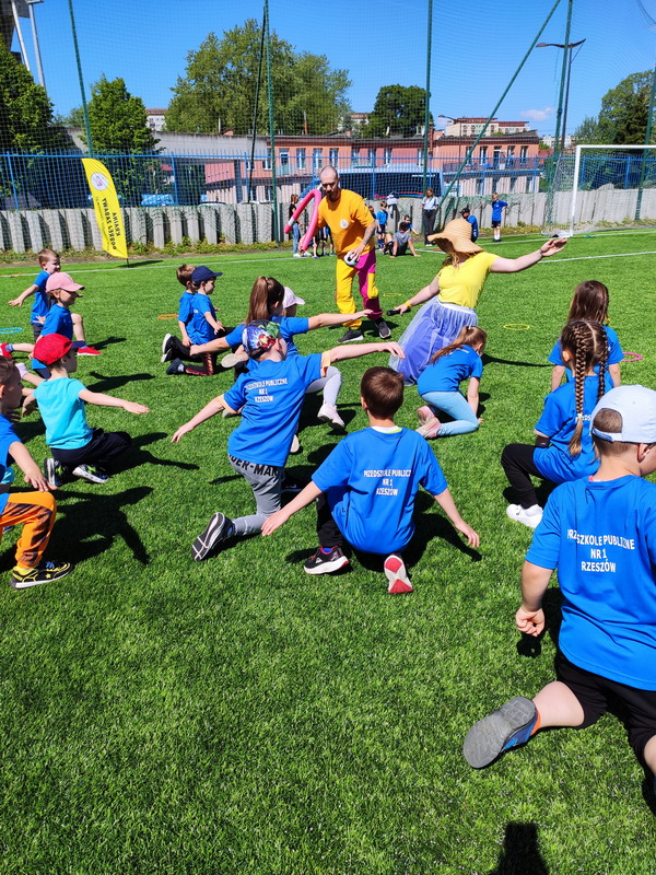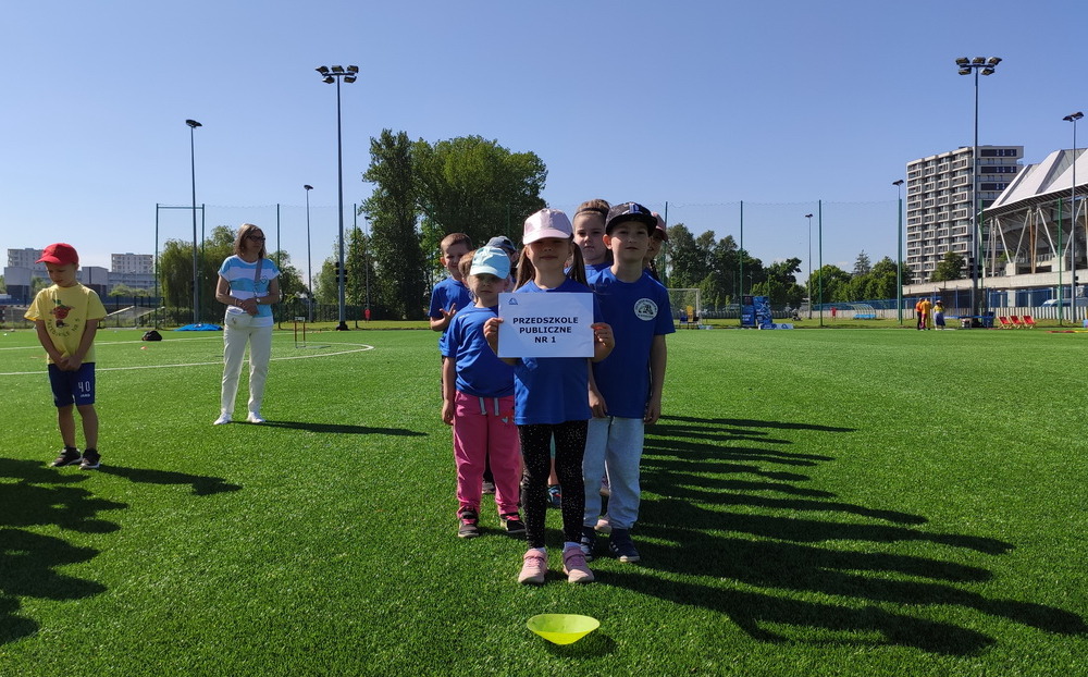 9 maja, po raz drugi, dzieci z naszego przedszkola wzięły udział w organizowanej przez Stal Rzeszów S.A Olimpiadzie Przedszkolaka. Tym razem placówkę reprezentowała grupa Tygryski. Po wysłuchaniu hymnu, odpaleniu znicza olimpijskiego oraz złożeniu sportowej przysięgi, reprezentacje rzeszowskich przedszkoli przystąpiły do rywalizacji. Mali olimpijczycy brali udział w różnych dyscyplinach: bieg na 5/20m, bieg zwinnościowy, skok w dal, bieg z piłką po prostej, rzut piłeczką palantową. Dzieci brały też udział w torze przeszkód. Sportowe konkurencje dały przedszkolakom wiele radości. Pomimo rywalizacji, pamiętały o tym, że najważniejsza jest dobra zabawa. Tak naprawdę zwycięzcami byli wszyscy, bo przecież sport to zdrowie. Oprócz zawodów sportowych, organizatorzy zapewnili inne atrakcje, tj. mecz piłki nożnej, strzały na bramkę czy zabawy ruchowe.