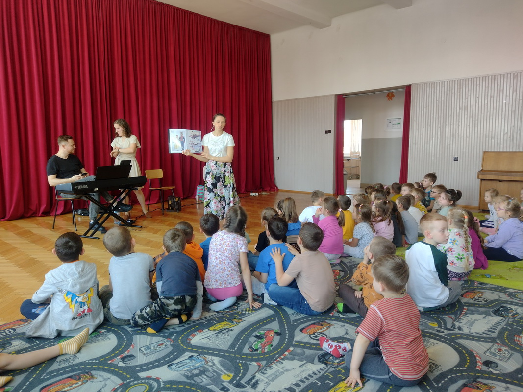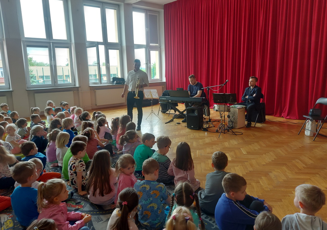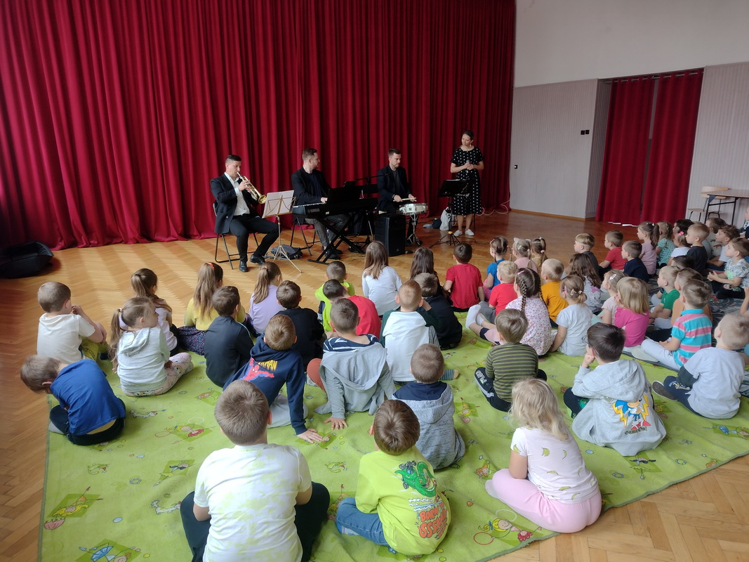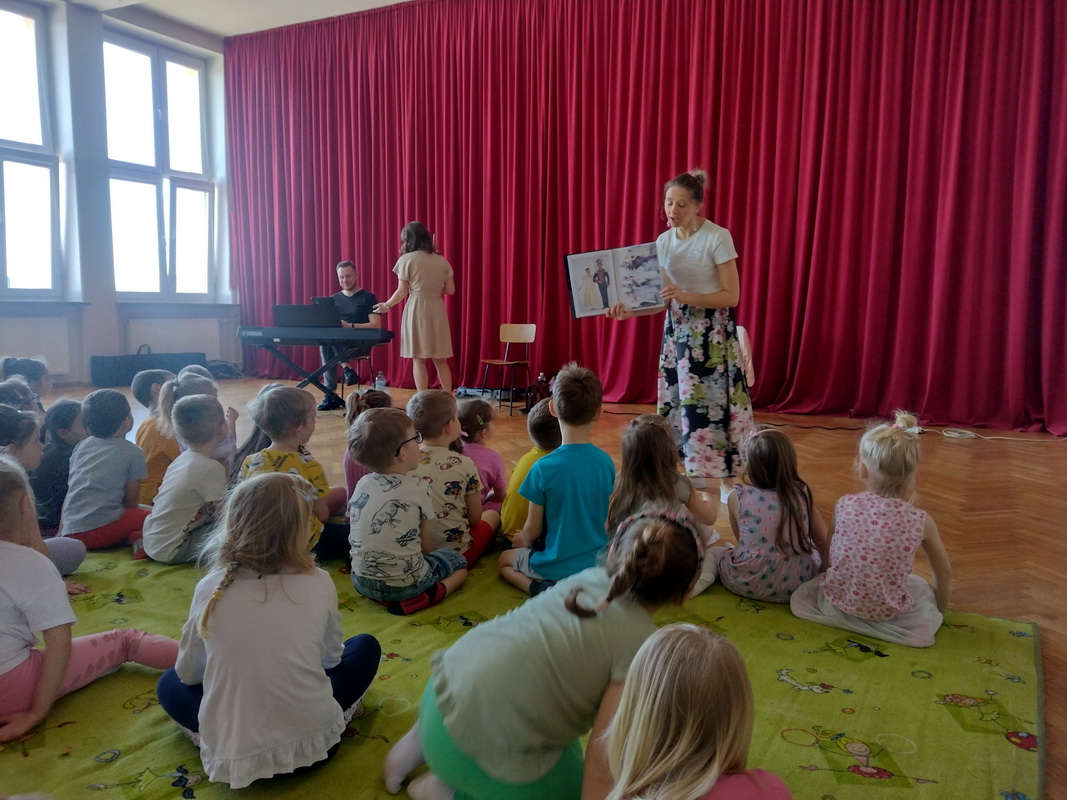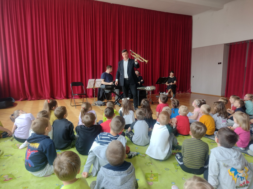 Na przełomie kwietnia i maja dwukrotnie gościliśmy muzyków z Filharmonii Podkarpackiej. Tytuł pierwszego spotkania brzmiał „Piękna nasza Polska cała – poznajemy tańce narodowe”. Podczas audycji dzieci dowiedziały się, jak ważną rolę w dziejach naszego narodu odgrywały tańce narodowe. Mowa tu o polonezie, mazurze, oberku, kujawiaku i krakowiaku. Wszystkie przedszkolaki z powagą, ale też z zaciekawieniem oglądały przygotowany występ.