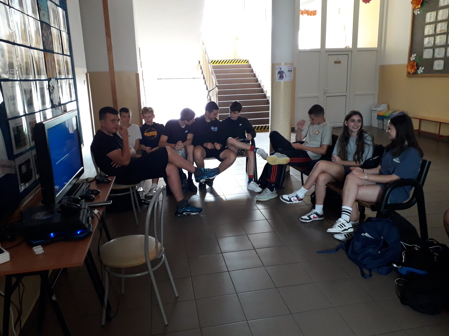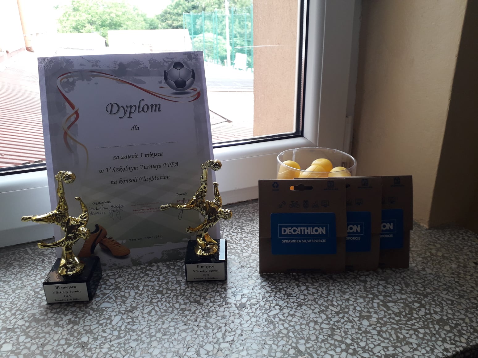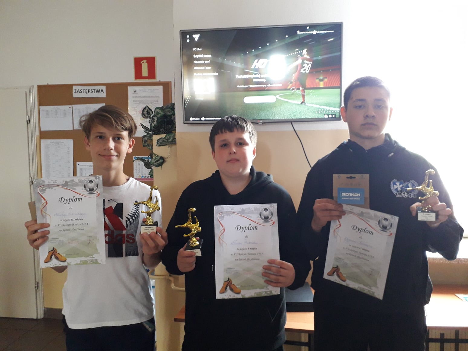 Emocje sportowe sięgały dziś zenitu! A to za sprawą V Szkolnego Turnieju FIFA, organizowanego przez Samorząd Uczniowski. Do rywalizacji zgłosiło się 18 uczniów i uczennic z klas 6-8. Gra w FIFĘ 2024 na konsoli PlayStation 4 trwała 4 godziny, przez cały ten czas graczom towarzyszył gorący doping. W finale turnieju zameldowali się: Miłosz Woźniak (kl. 7b) i Szymon Półchłopek (kl. 8a). Lepszy okazał się ten pierwszy, zwyciężając 6-1. W meczu o trzecie miejsce Mikołaj Woźnicki (kl. 7b) pokonał Szymona Domaradzkiego (kl. 8a). Zwycięzcy turnieju otrzymali dyplomy, statuetki i karty podarunkowe do zrealizowania w sklepie Decathlon.