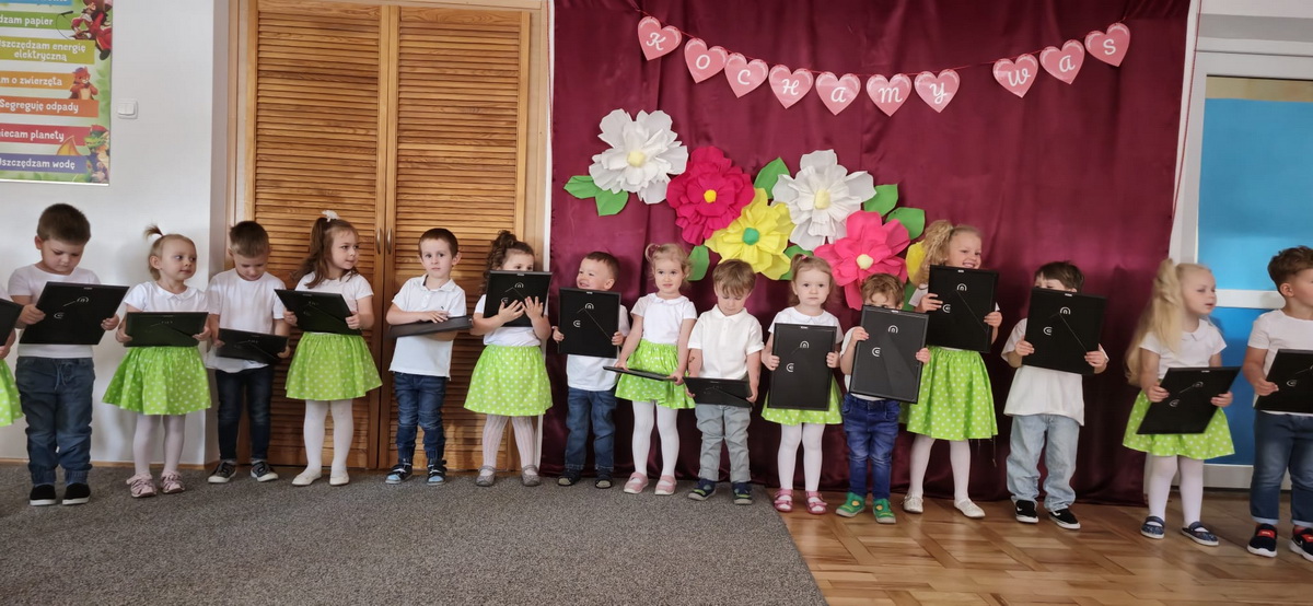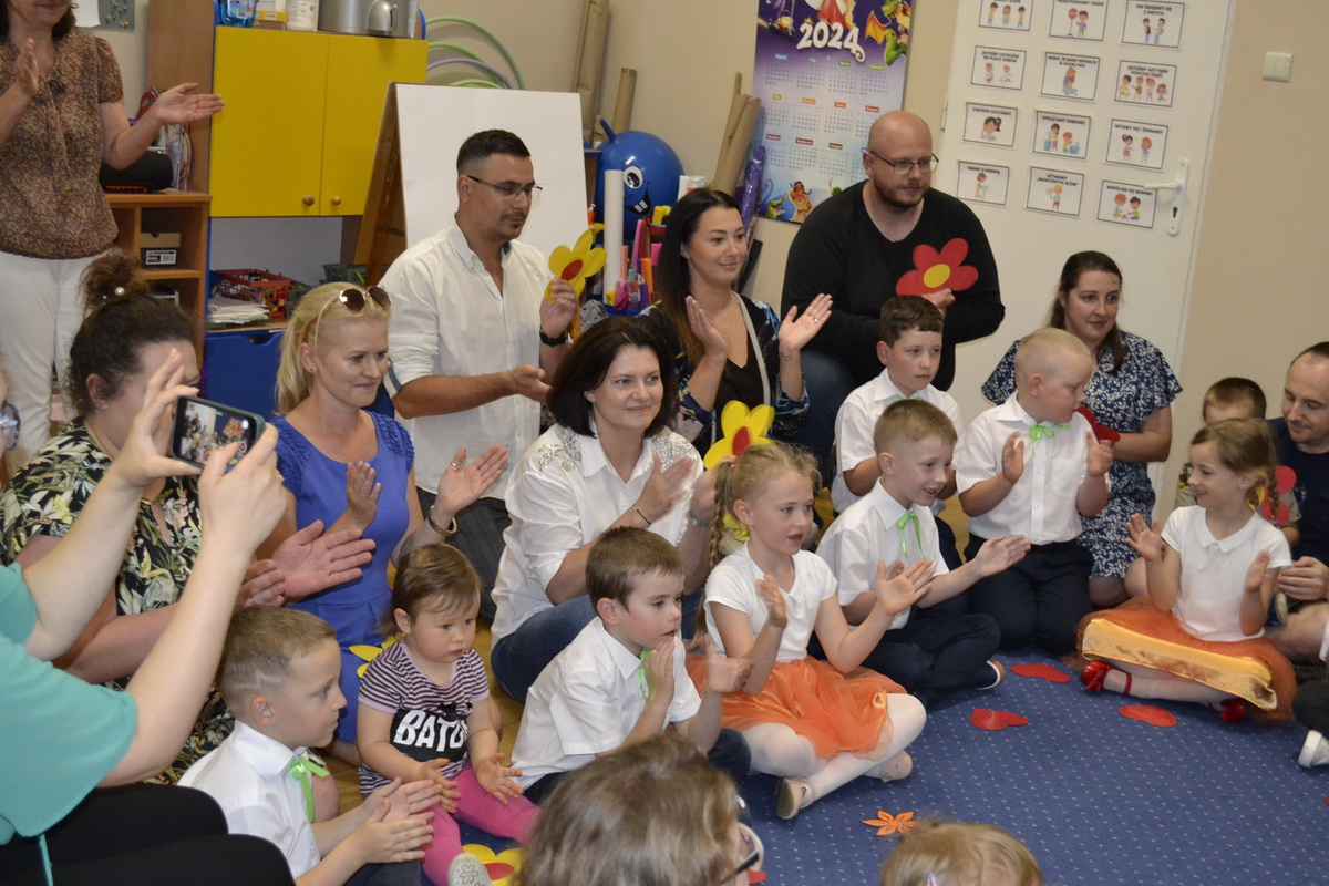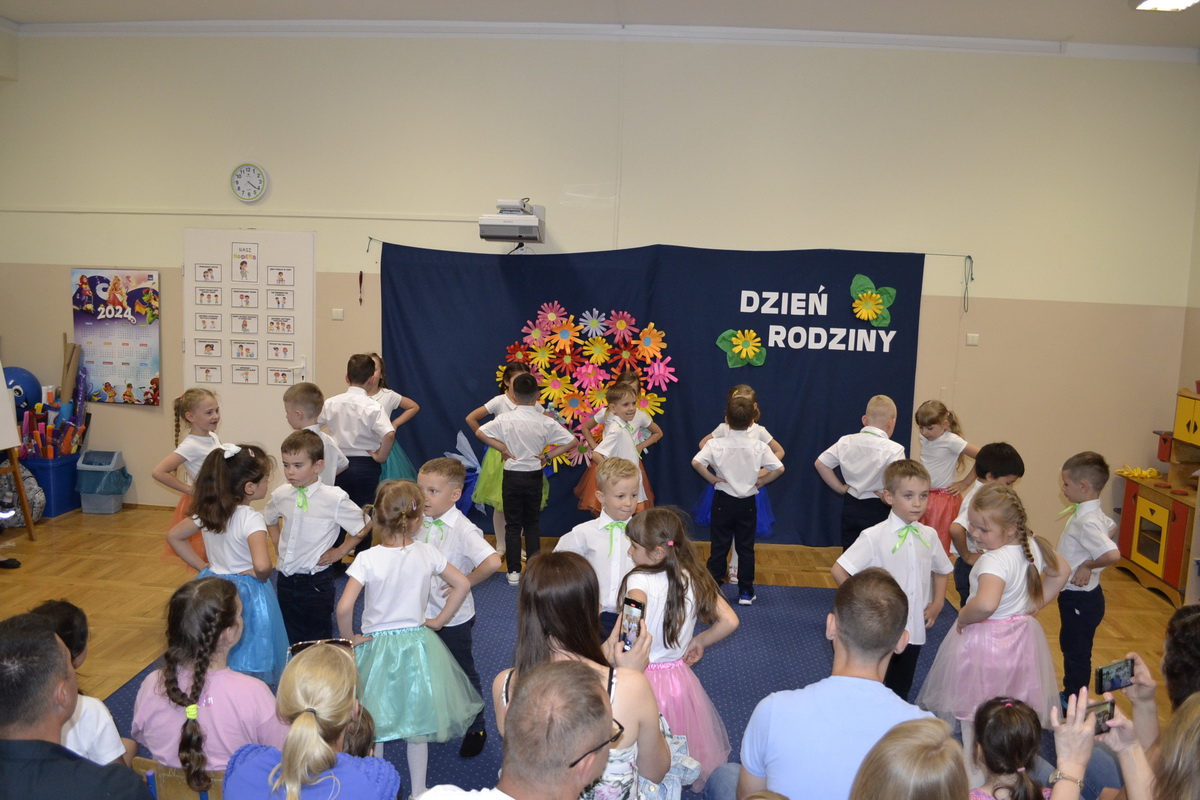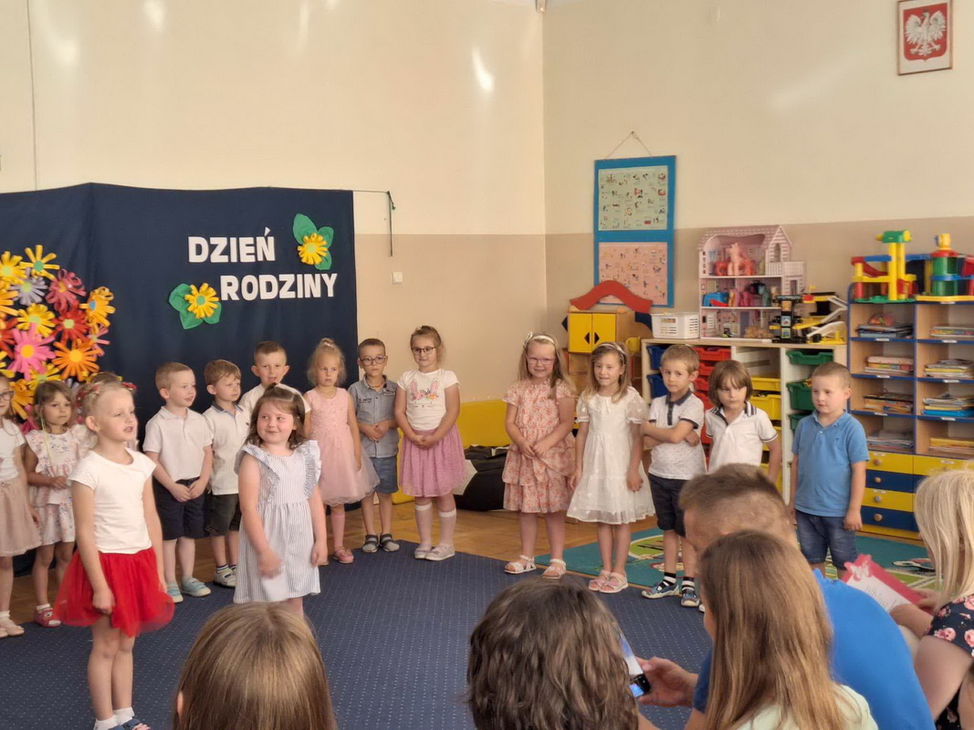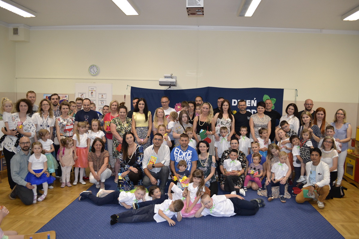 Mama i Tata to słowa, które każdemu dziecku kojarzą się z ciepłem, miłością i wszystkim, co dobre. W tym roku uroczystość z okazji Dnia Rodziców w przedszkolu odbywała się od 17 do 28 maja. Przedszkolaki od samego rana z niecierpliwością wyczekiwały zaproszonych gości, nie mogąc się doczekać, kiedy zapukają do drzwi przedszkola. Rodzice mieli okazję podziwiać swoje pociechy w specjalnie dla nich przygotowanych programach artystycznych. Dzieci ze wszystkich grup przedszkolnych zaprezentowały: wiersze, piosenki, tańce, zabawy integracyjne, a także piękne inscenizacje. Po części artystycznej w dowód miłości przedszkolaki wręczyły swoim rodzicom własnoręcznie wykonane upominki. Święto Rodziców to dzień niezwykły, pełen uśmiechów, wzruszeń, łez, radości i dumy. Szczęśliwe twarze oraz łezka w niejednym oku dały wyraz tego, jak ważne są takie spotkania i chwile spędzone w gronie rodziny.