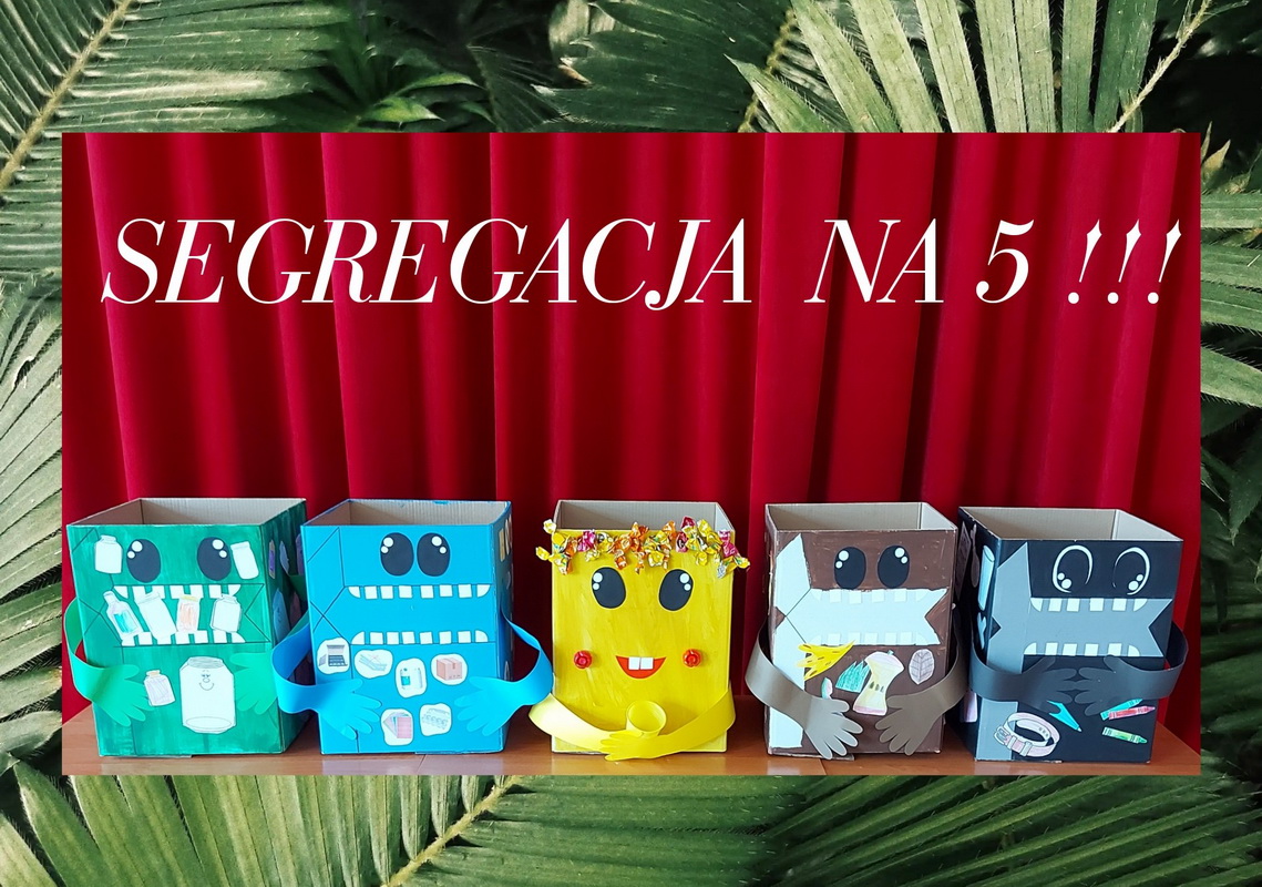 Już po raz drugi nasze przedszkole wzięło udział w konkursie plastyczno–ekologicznym „Segregacja na 5 – edycja IV”, zorganizowanym przez MPGK w Rzeszowie, we współpracy z organizacją Nowoczesna Edukacja. Cele konkursu to m.in.: budowanie poziomu wiedzy związanej z segregacją odpadów, wzbudzanie impulsów do działań związanych z segregacją, kreatywne uczestnictwo w wydarzeniach związanych z nauką segregacji odpadów oraz promowanie świadomości ekologicznej i działań prośrodowiskowych. Zadanie polegało na wykonaniu pojemników na segregację śmieci z dostarczonych przez organizatorów kartonów, dowolną techniką plastyczną. I tak oto przedszkolaki z grup: Misie, Żabki, Słoneczka, Biedronki i Tygryski stworzyły kolorowe „pożeracze śmieci”. Rozstrzygnięcie konkursu nastąpi pod koniec czerwca. Trzymamy kciuki!