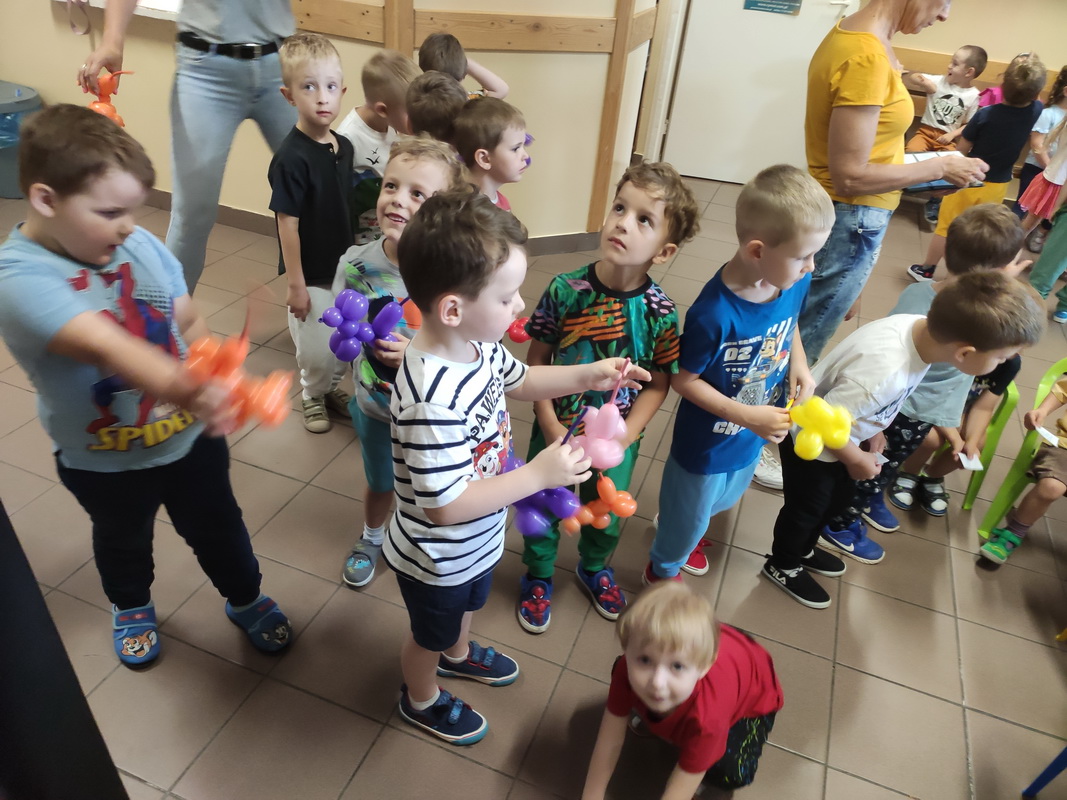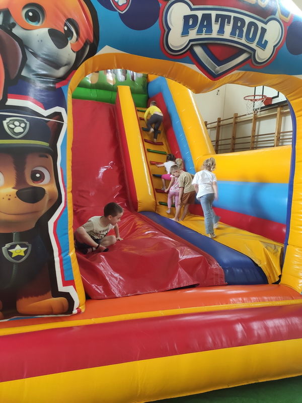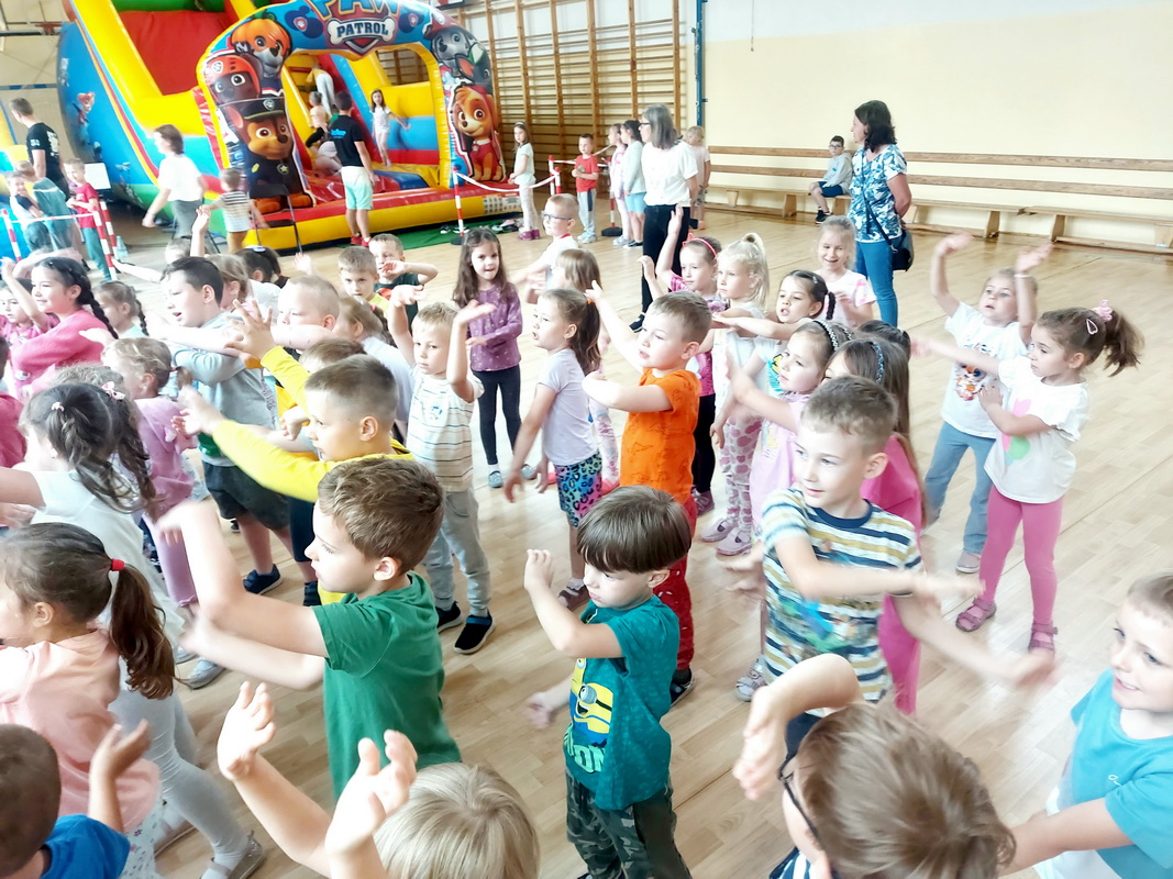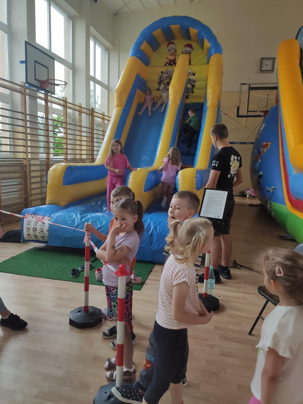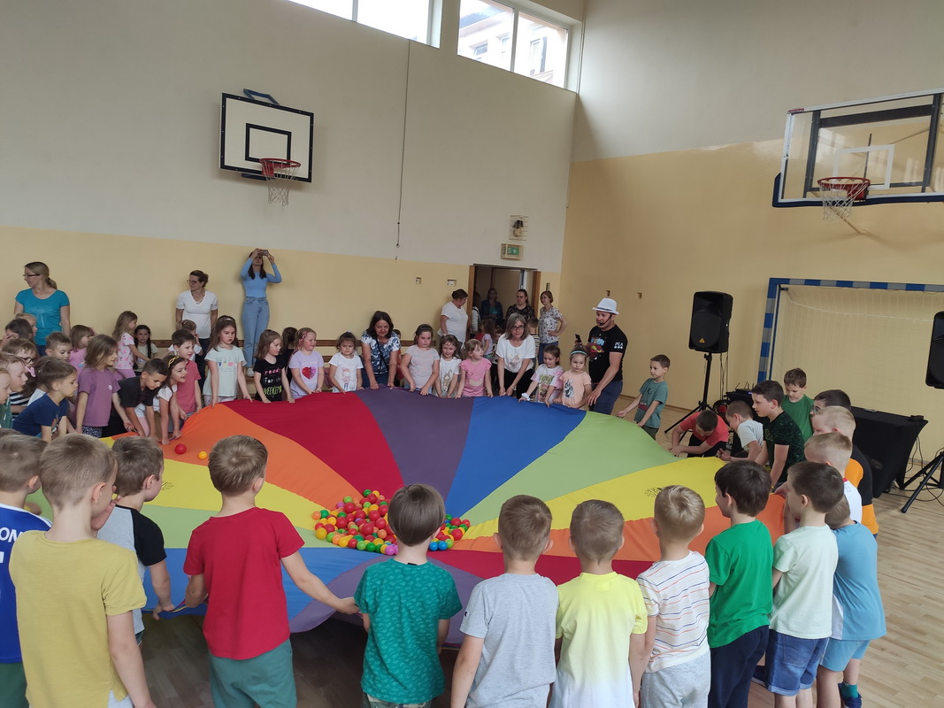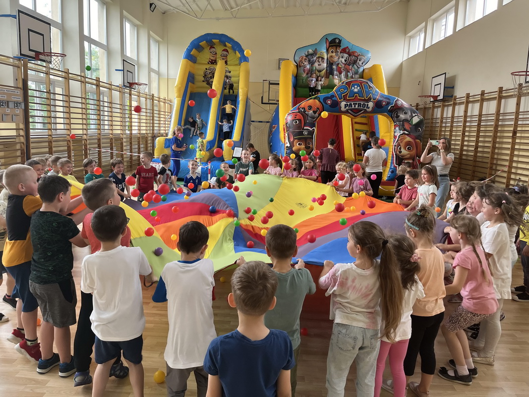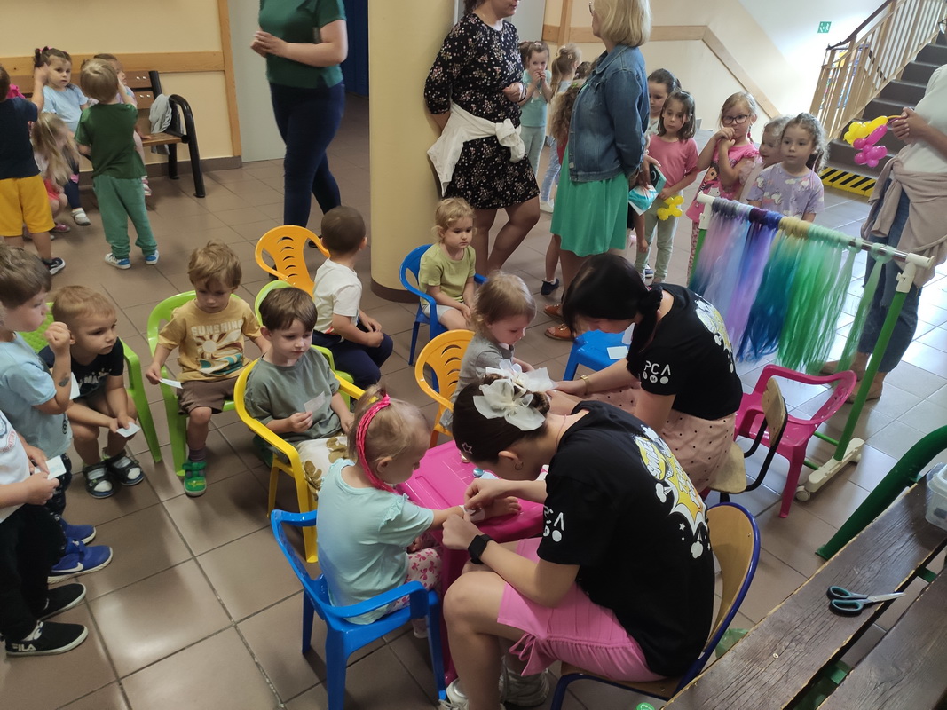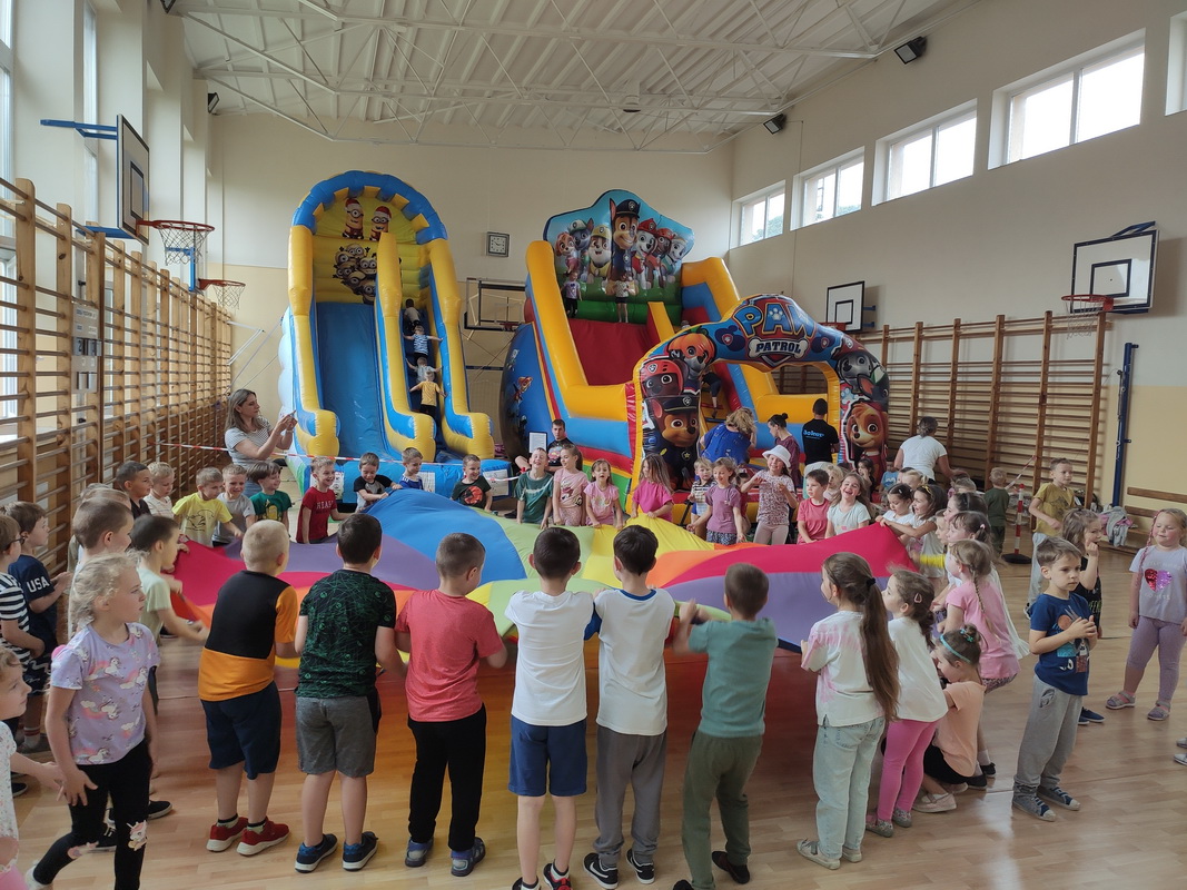 Dzień Dziecka to święto, które uwielbiają wszystkie dzieci. To dzień pełen uśmiechów, zabaw, radości i wielu niezapomnianych wrażeń. Tak też było i w tym roku. Pomimo kapryśnej pogody, w sali gimnastycznej na najmłodszych czekało wiele atrakcji: gry, zabawy, animacje i oczywiście dmuchańce. Przedszkolaki mogły podziwiać szczudlarza, który obdarowywał je zwierzątkami z baloników i czarował bańki mydlane. Nie zabrakło strefy beauty, w której chętne dzieci mogły sobie zrobić tatuaż lub zapleść we włosy kolorowy warkocz. To był wspaniały dzień, co można zobaczyć na zdjęciach poniżej. Dziękujemy rodzicom za słodką niespodziankę.