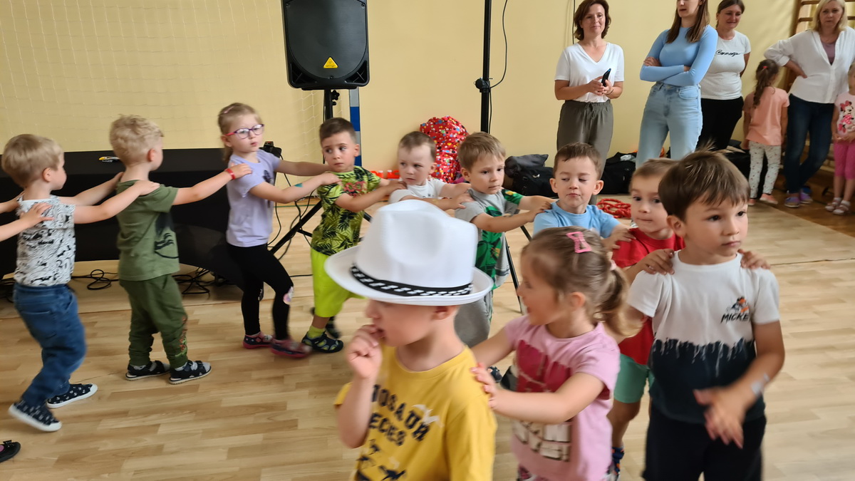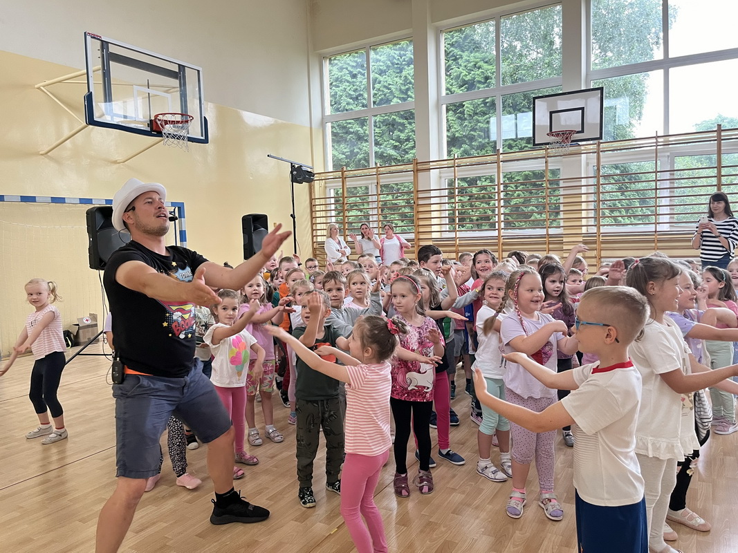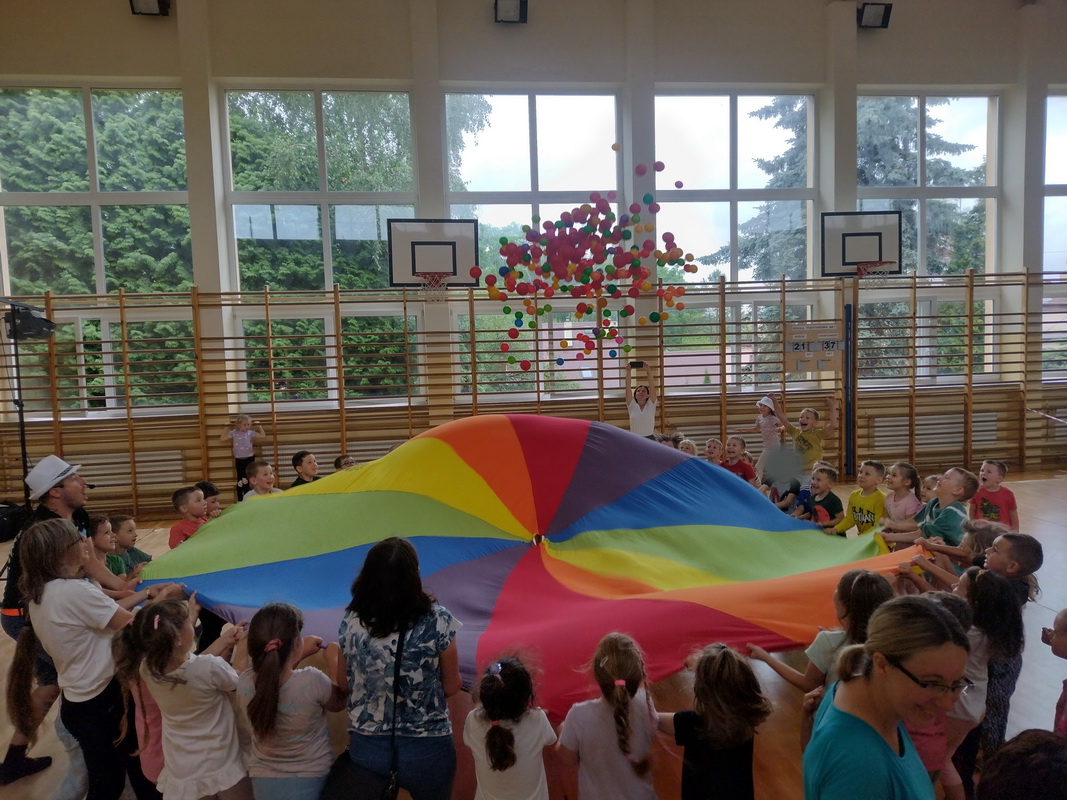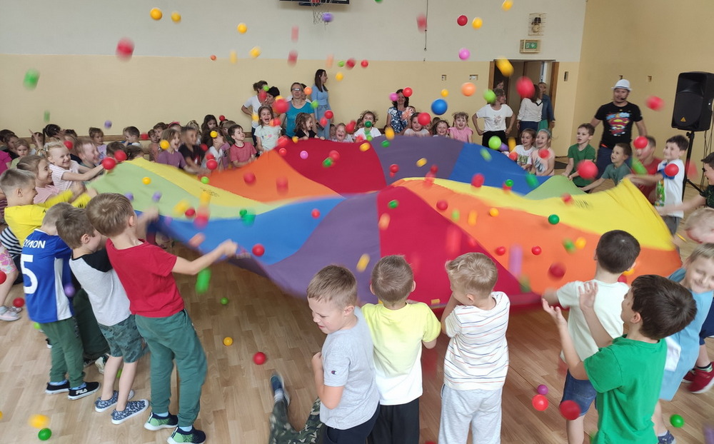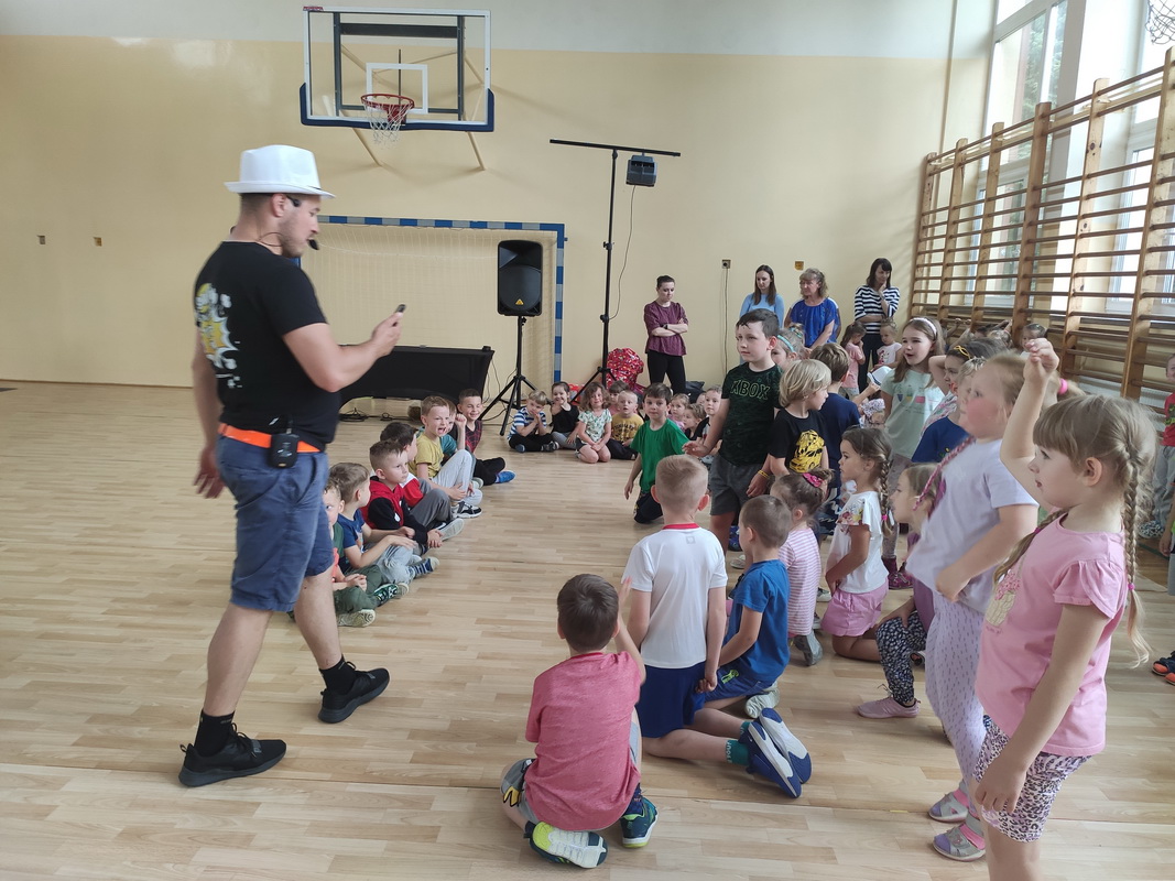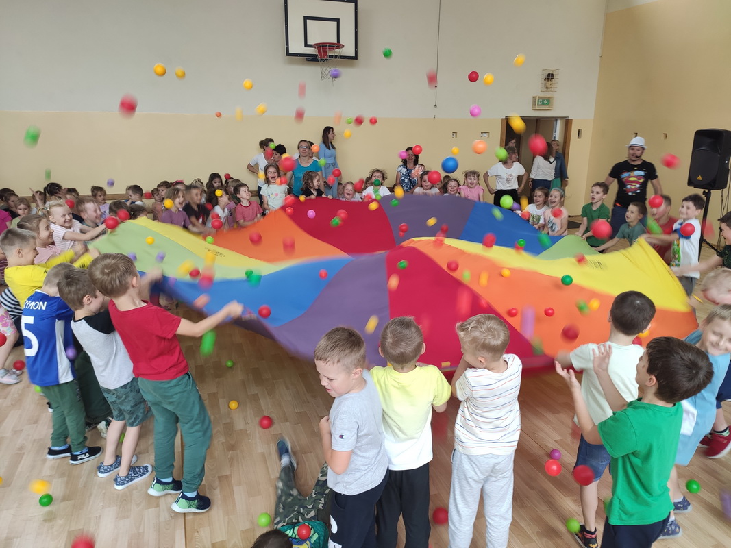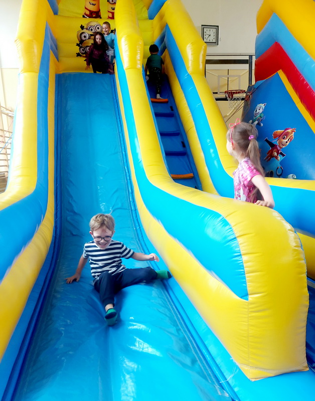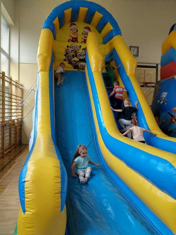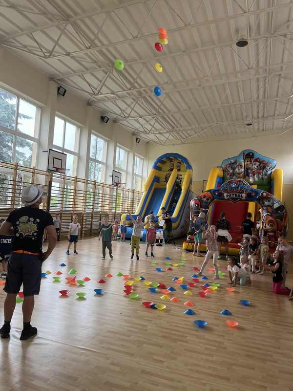Dzień Dziecka to święto, które uwielbiają wszystkie dzieci. To dzień pełen uśmiechów, zabaw, radości i wielu niezapomnianych wrażeń. Tak też było i w tym roku. Pomimo kapryśnej pogody, w sali gimnastycznej na najmłodszych czekało wiele atrakcji: gry, zabawy, animacje i oczywiście dmuchańce. Przedszkolaki mogły podziwiać szczudlarza, który obdarowywał je zwierzątkami z baloników i czarował bańki mydlane. Nie zabrakło strefy beauty, w której chętne dzieci mogły sobie zrobić tatuaż lub zapleść we włosy kolorowy warkocz. To był wspaniały dzień, co można zobaczyć na zdjęciach poniżej. Dziękujemy rodzicom za słodką niespodziankę.