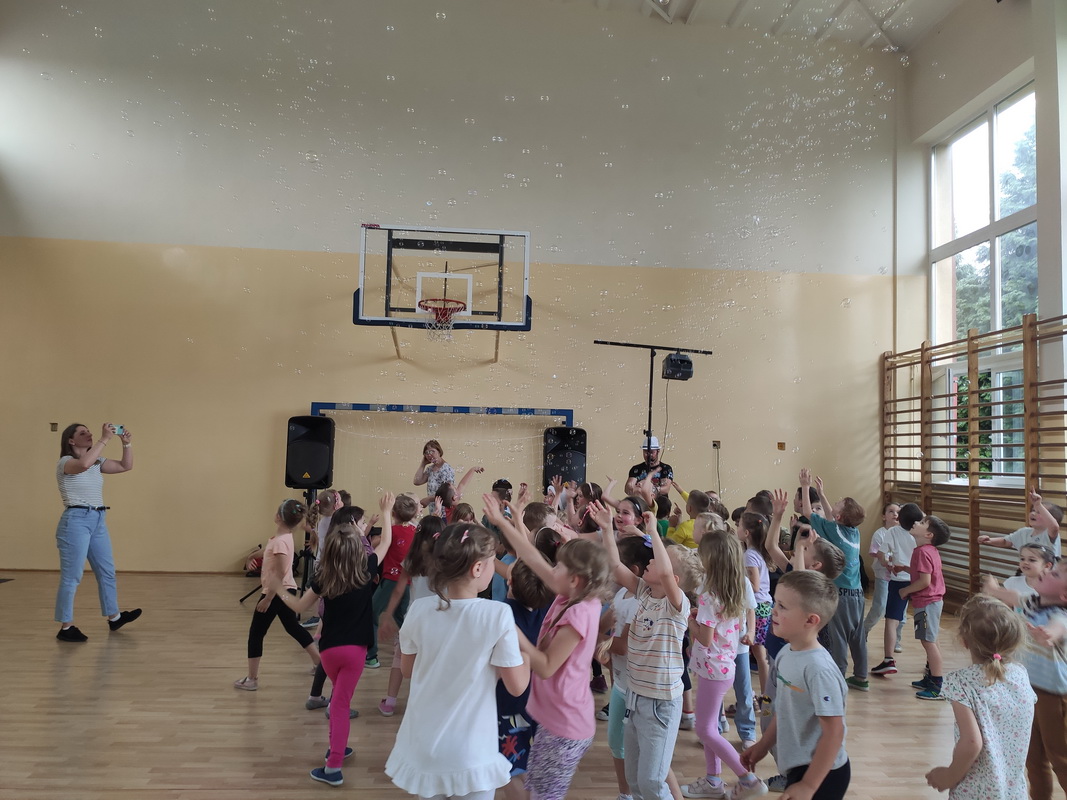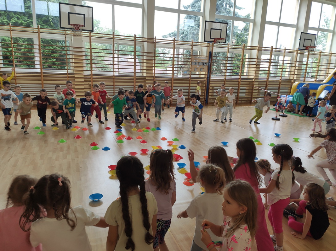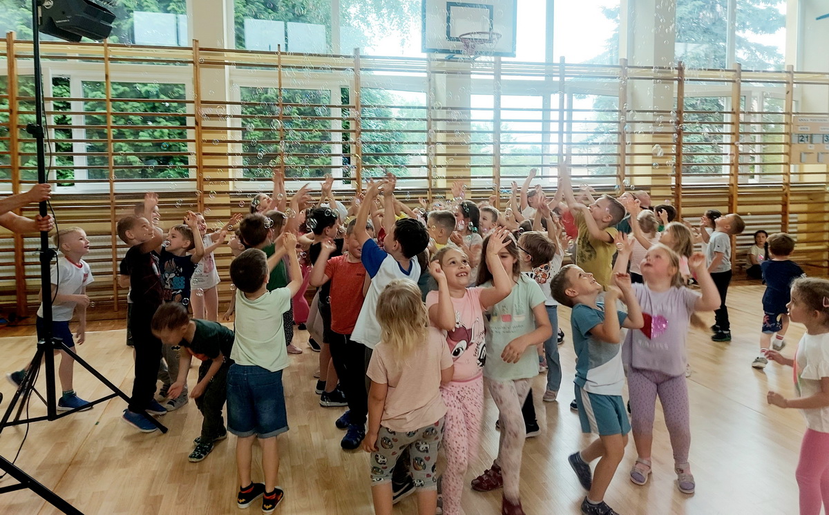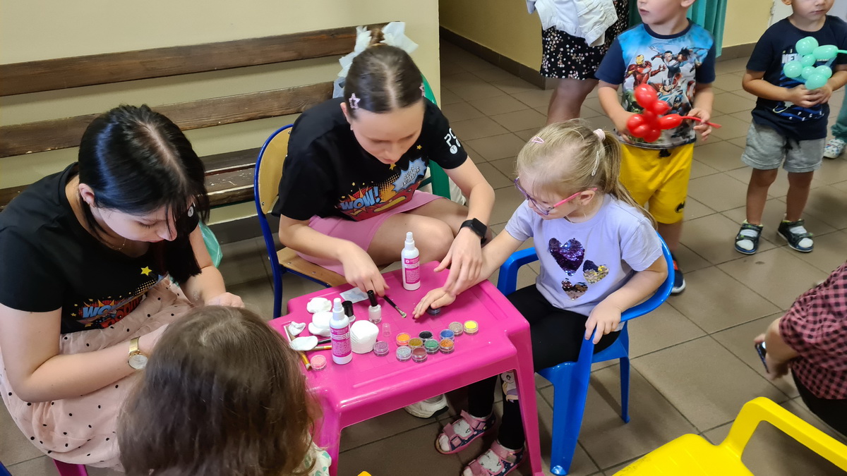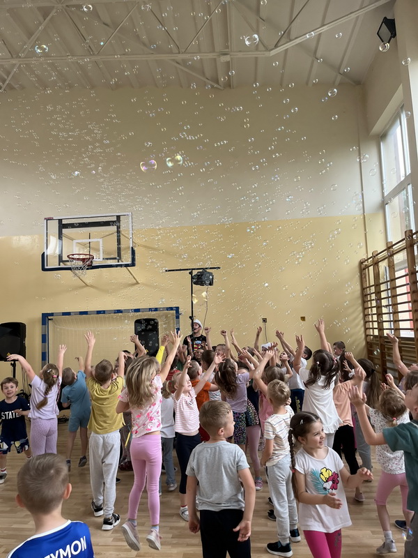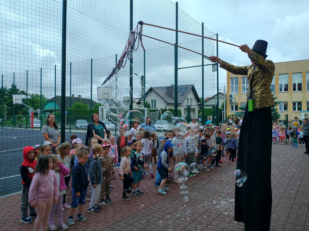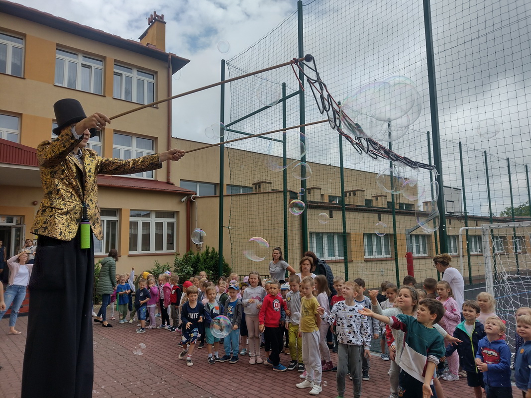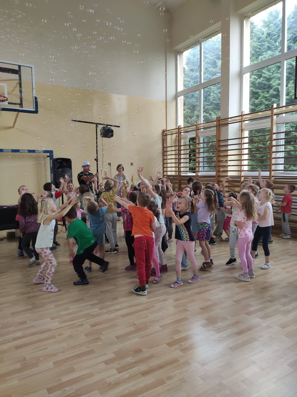Dzień Dziecka to święto, które uwielbiają wszystkie dzieci. To dzień pełen uśmiechów, zabaw, radości i wielu niezapomnianych wrażeń. Tak też było i w tym roku. Pomimo kapryśnej pogody, w sali gimnastycznej na najmłodszych czekało wiele atrakcji: gry, zabawy, animacje i oczywiście dmuchańce. Przedszkolaki mogły podziwiać szczudlarza, który obdarowywał je zwierzątkami z baloników i czarował bańki mydlane. Nie zabrakło strefy beauty, w której chętne dzieci mogły sobie zrobić tatuaż lub zapleść we włosy kolorowy warkocz. To był wspaniały dzień, co można zobaczyć na zdjęciach poniżej. Dziękujemy rodzicom za słodką niespodziankę.