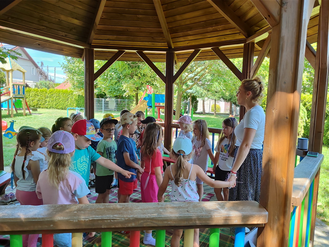 7 czerwca obchodziliśmy po raz pierwszy w naszym przedszkolu Dzień Pustej Klasy. Dzień spędzony na dworze, w ogrodzie przedszkolnym to prawdziwy przedsmak wakacji, na które dzieci nie mogą się już doczekać. Niespodzianką dla przedszkolaków były zajęcia z j. angielskiego, które zostały przeprowadzone przez panią Agatkę w altance. Międzynarodowa inicjatywa Pustej Klasy bardzo spodobała się naszym dzieciakom, które chętnie uczyły się na świeżym powietrzu. Dużym zainteresowaniem cieszyła się praca plastyczna „Motylek” wykonana również w ogrodzie przedszkolnym oraz malowanie na foli streczowej. Tego dnia przełamaliśmy rutynę i wprowadziliśmy zmiany, które pozwoliły spojrzeć inaczej na przedszkole zarówno dzieciom, jak i nauczycielom.