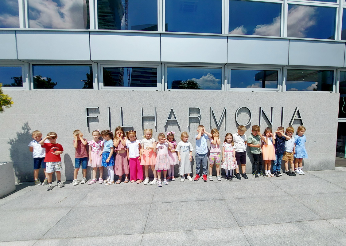 W połowie czerwca przedszkolaki z grupy Misie i Słoneczka wybrały się do Filharmonii Podkarpackiej z okazji zakończenia roku przedszkolnego. Koncert nosił tytuł „Muzyczne podróże małe i duże” i dostarczył wielu niezapomnianych wrażeń. Muzycy zaprosili dzieci w magiczną podróż przy dźwiękach największych przebojów pochodzących z różnych gatunków muzycznych. Atmosfera była wyjątkowa. Nie zabrakło takich hitów jak „Dzień Dziecka”, „Góry do góry”, „Krecik” czy „Siema”, które wprawiły małych widzów w doskonały nastrój. Przed koncertem przedszkolaki miały okazję także „ochłodzić się” przy fontannie multimedialnej i zrobić sobie pamiątkowe zdjęcia z wycieczki.