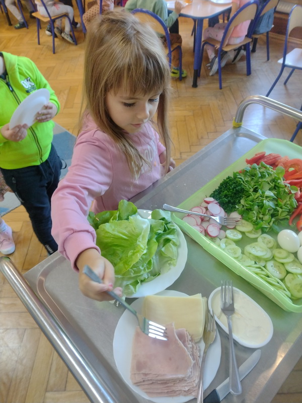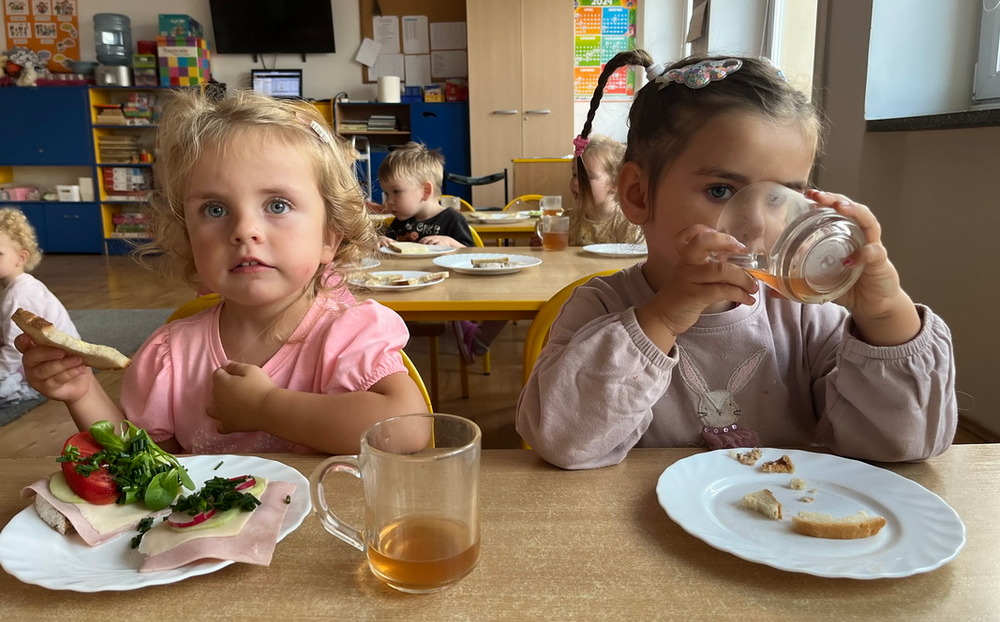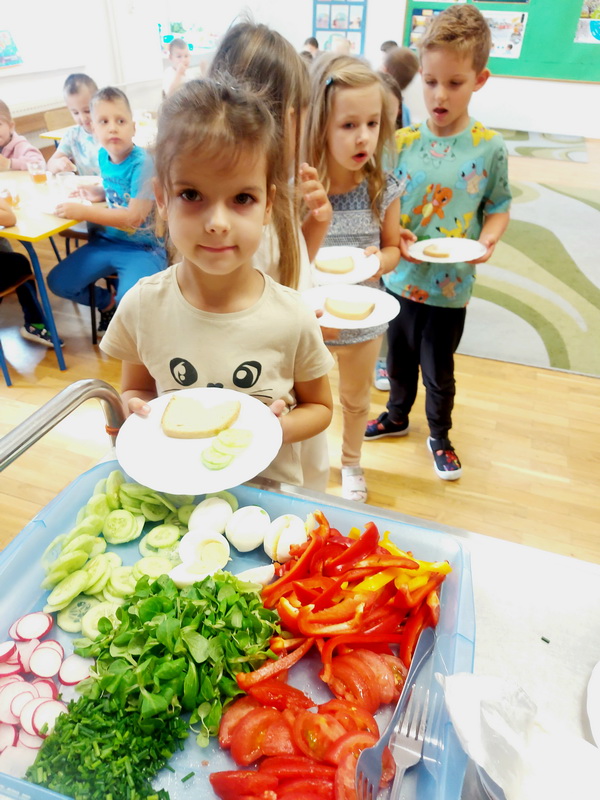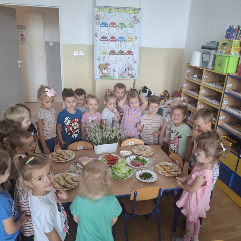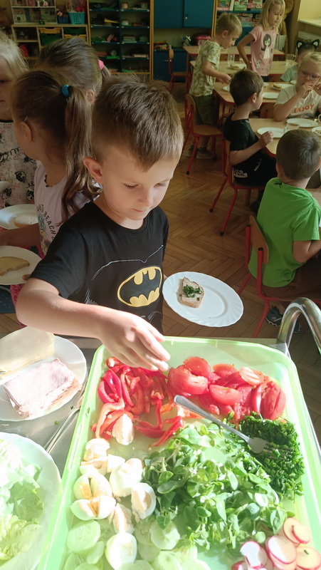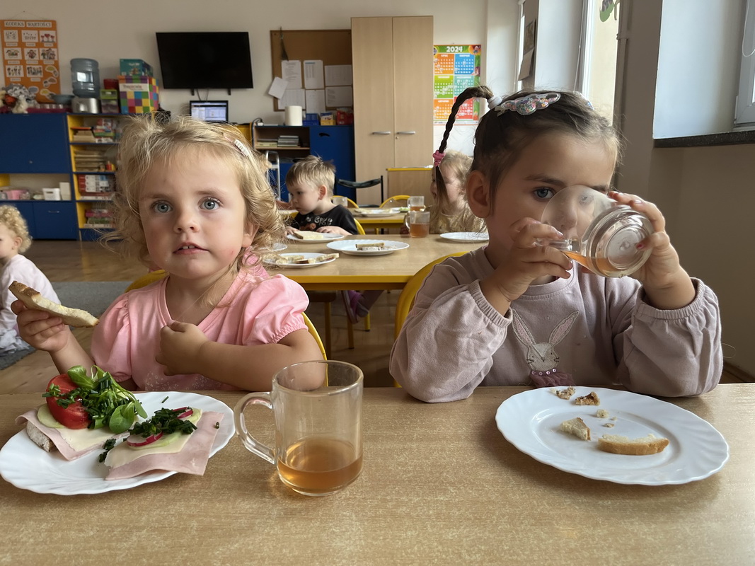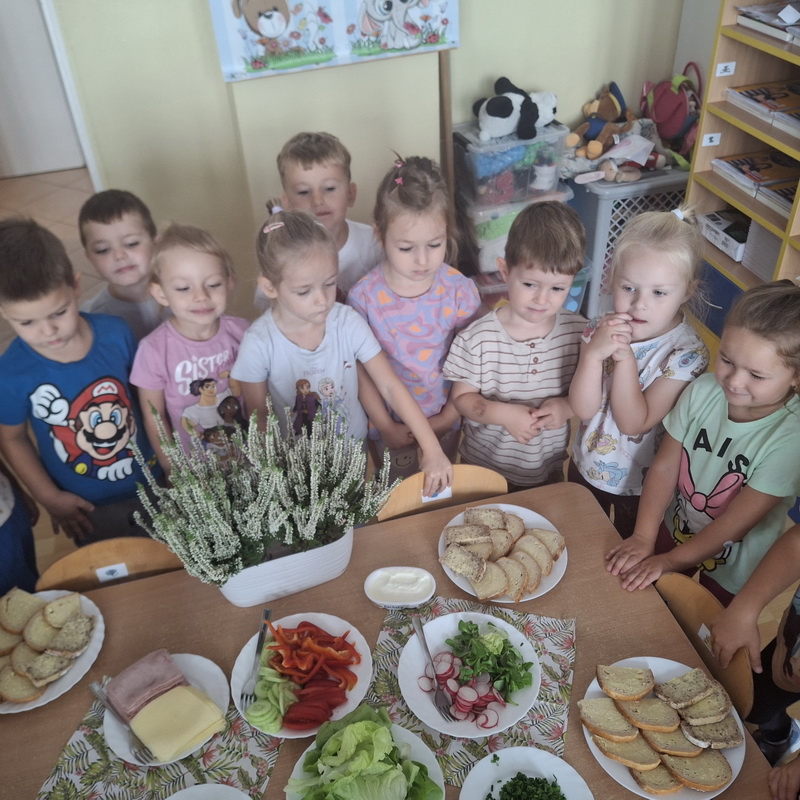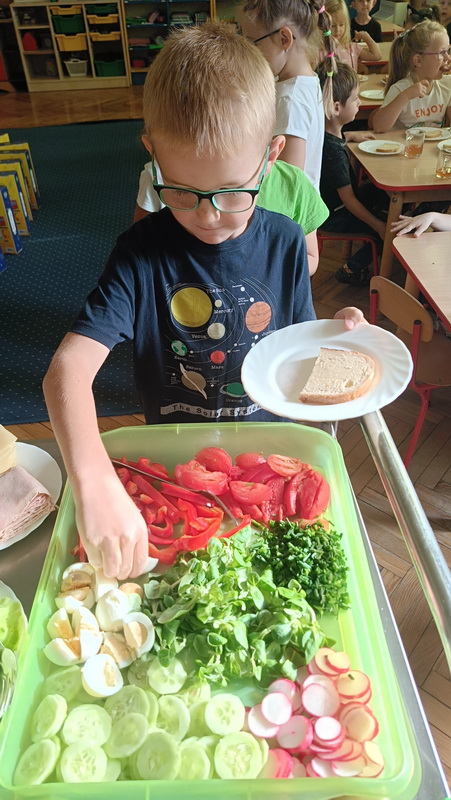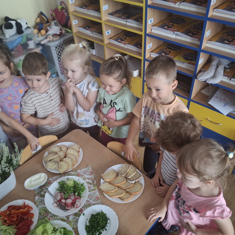 W naszym przedszkolu dbamy o zdrowe nawyki żywieniowe i rozwój samodzielności dzieci, dlatego śniadania serwujemy w formie szwedzkiego stołu! Dzięki temu przedszkolaki uczą się podejmować decyzje i poznają różnorodne smaki. Sezonowe warzywa, takie jak marchewka, papryka czy ogórek, sprzyjają budowaniu odporności. Do tego soczyste owoce, pełne witamin, a także pełnoziarniste pieczywo, sery i inne, zdrowe przekąski. Dzieci mogą również kreatywnie ozdobić swoje talerze, tworząc kolorowe i smaczne kompozycje z wybranych produktów.